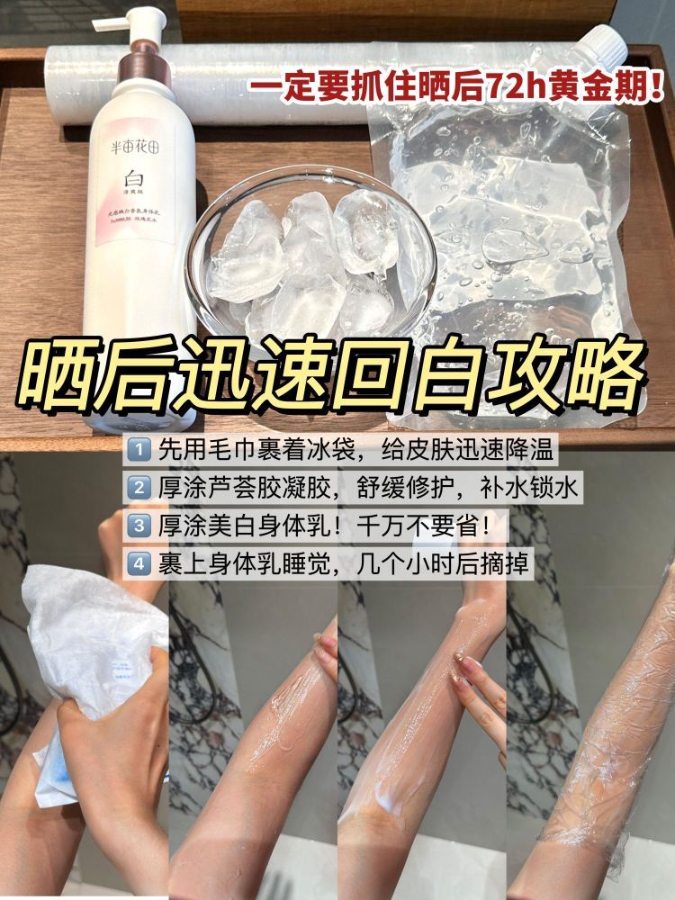 真心建议每个去东南亚旅游的姐妹做好防晒! 热带的阳光比我们歹毒10000倍啊啊啊! city walk一时爽,回酒店发现直接干出 色差熊猫臂,黑了3个度! 旅游拍照都没心情了,哭s…… - 还好扒到了🍠上一个姐妹的教程 立马跟学自救!真的白回来了!! 我坚持了一周!身上就看不到分界线了! 晒黑晒红咱别怕,这套急救大法包白的! - 1️⃣先用毛巾包着冰袋给晒伤皮肤冷敷降温! 2️⃣厚厚涂一层芦荟胶,...