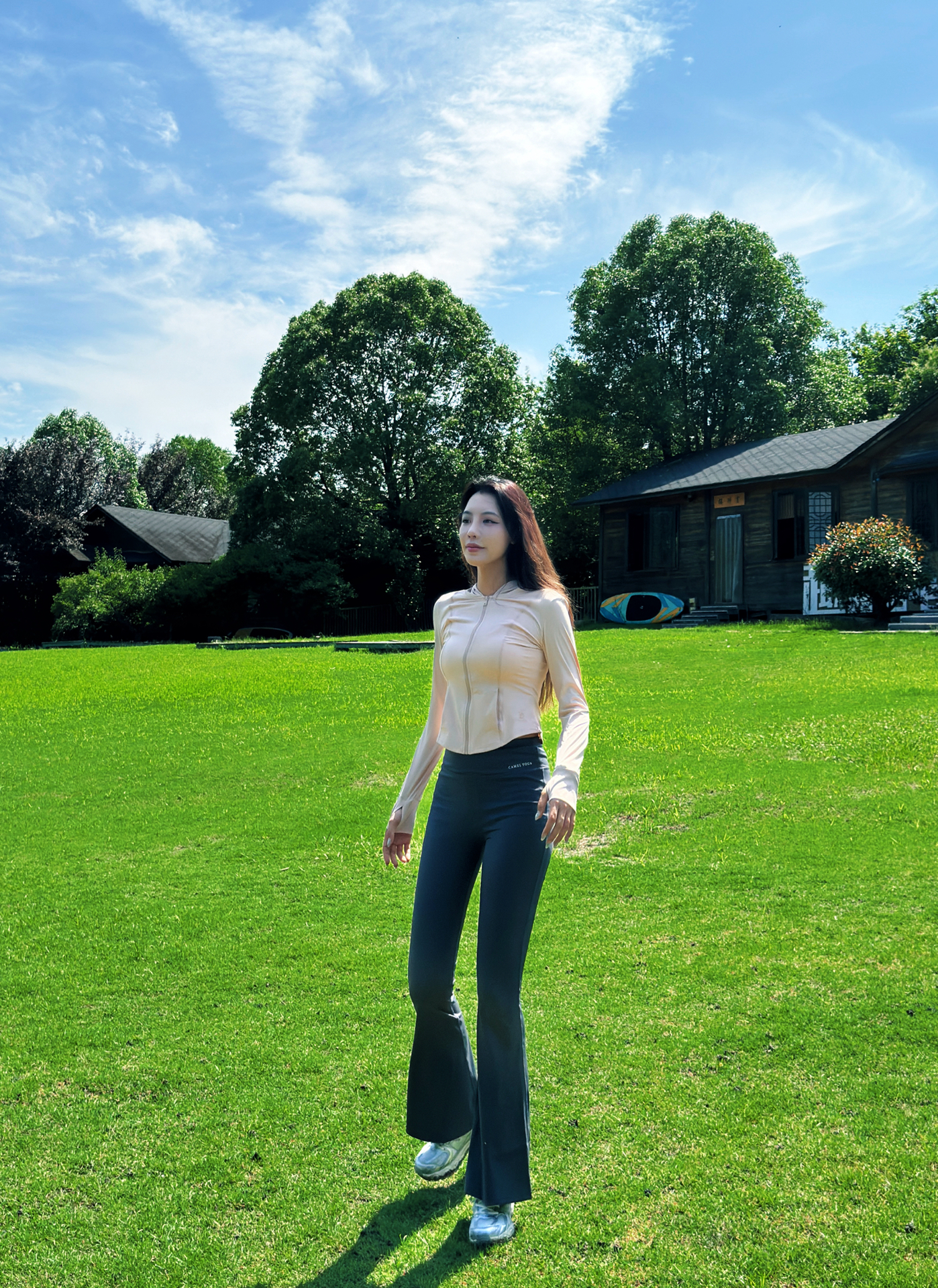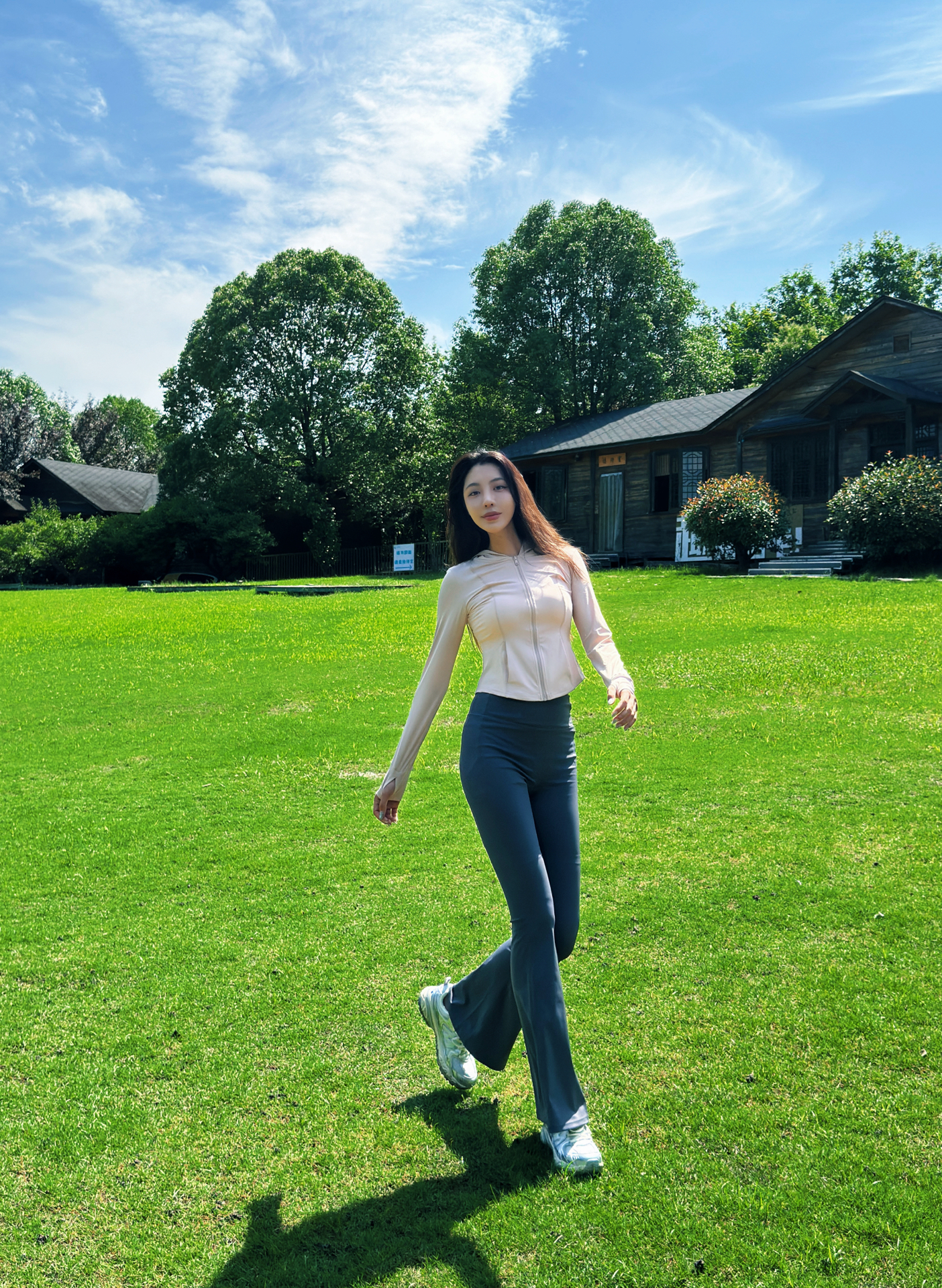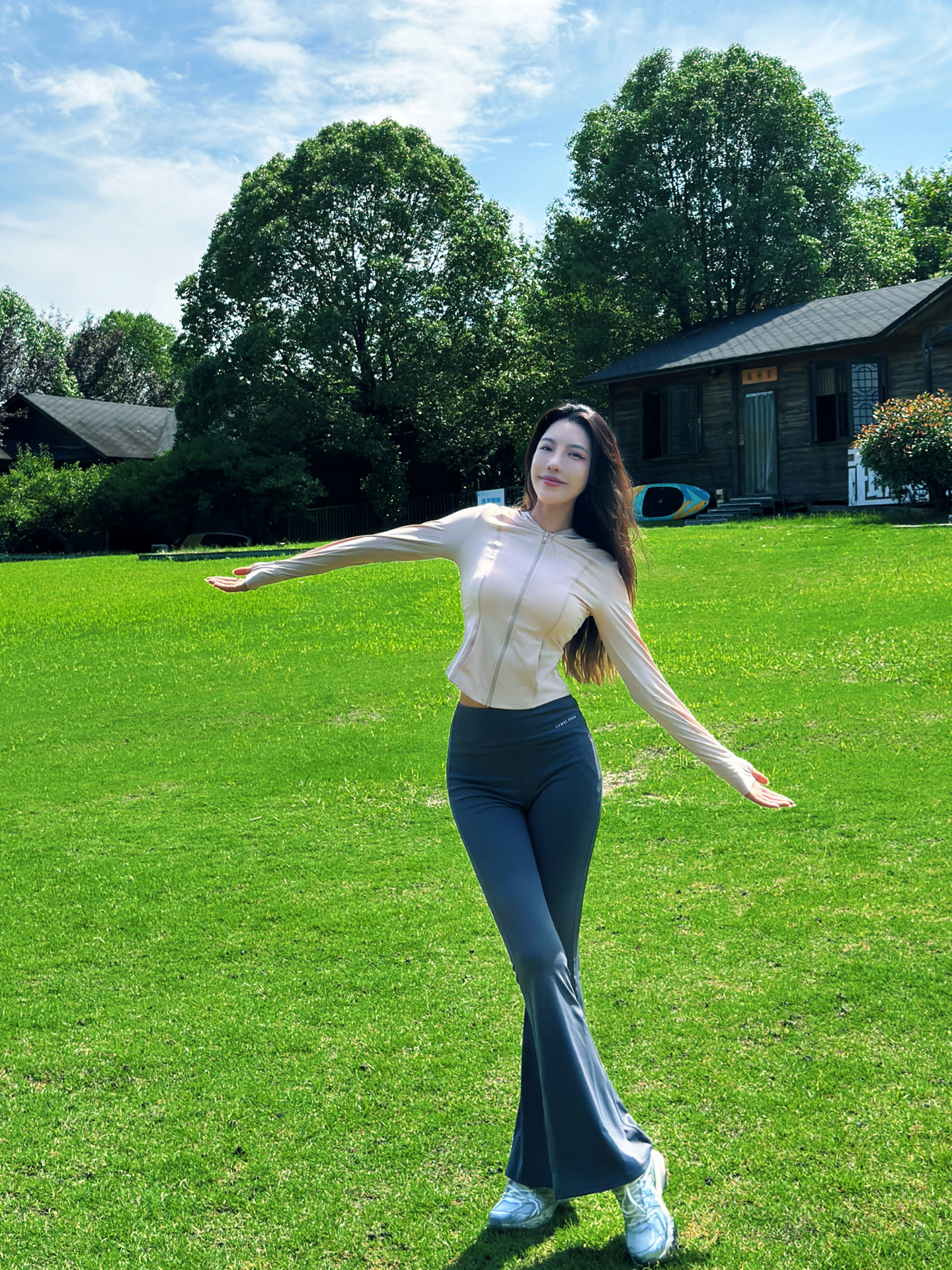 当然是多和大自然🍃多亲密~ 杭州好不容易晴天了☀️ 今天就是去湘湖吸氧的一天~ootd一定是秀身材的完美选择 ~ 上衣选了一个淡粉色系的紧身防晒瑜伽服~ 能更好的展现身材曲线的同时还能防晒~不怕晒黑🧴就选这个防晒服清爽透气不闷汗~ 裤子选了灰色的喇叭裤 想要穿出🍷腿的效果就直接闭眼搭配这个裤子 它面料很舒服 外穿运动都可以选它~ #骆驼防晒服 #硬核防晒穿搭 #初夏清冷感穿搭 #不费力的...