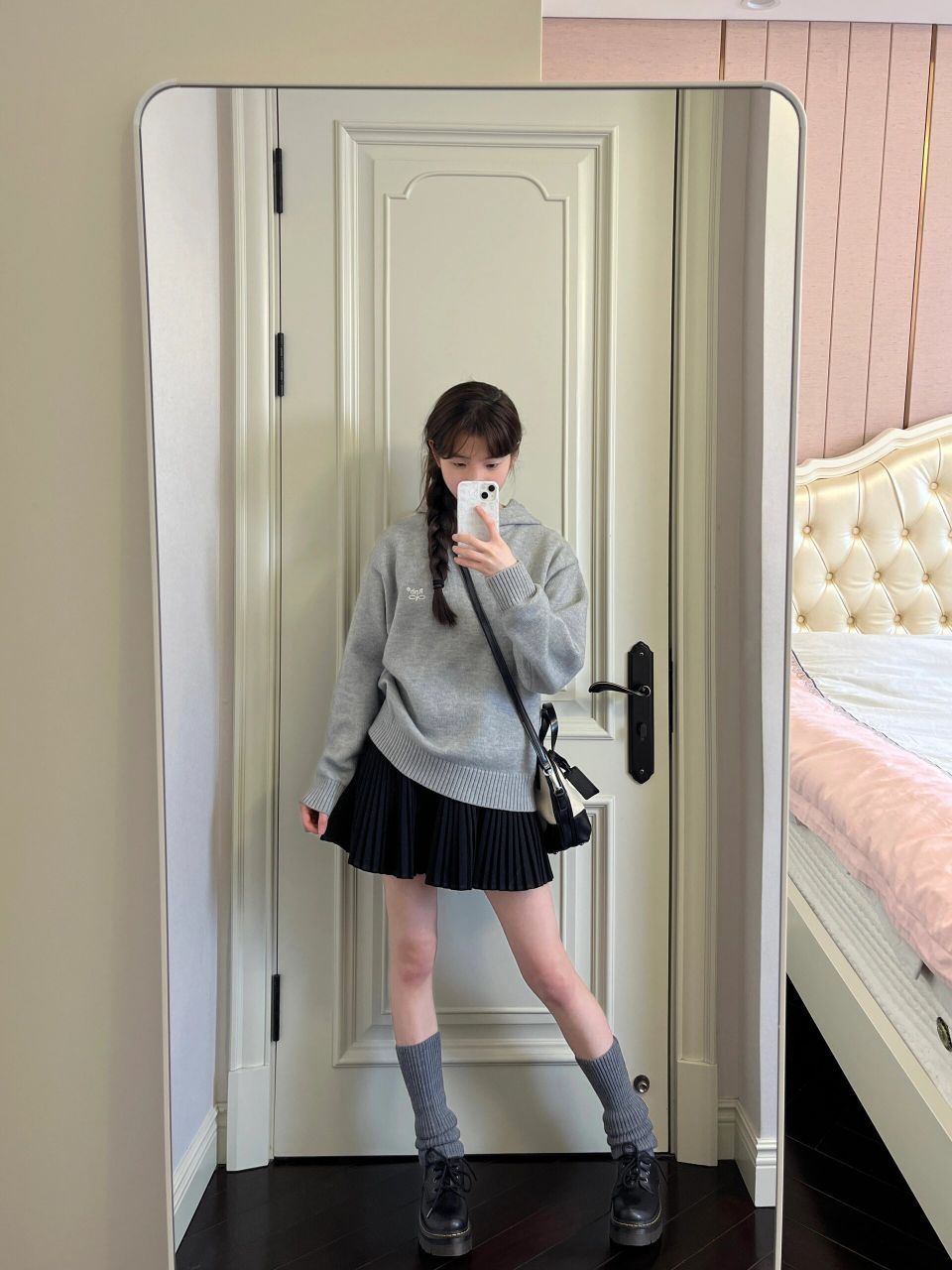· 黄金分割剪裁:水手服前短后长设计,视觉拉高腰线,搭配高腰百褶裙,腿长比例提升20%