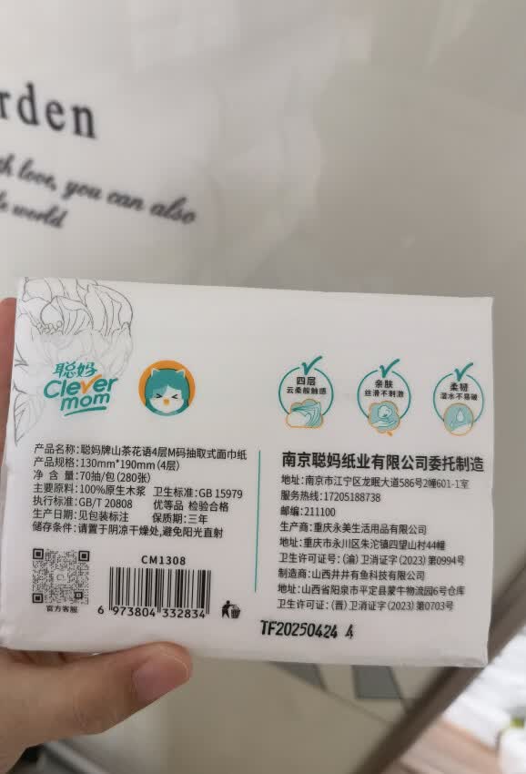 本篇笔记关联了Clever mom/聪妈 山茶花语系列 自然无香 4层 面巾纸抽纸 M码 130mm*190mm 加厚原生木浆实惠装 280张/包等商品,为用户提供真实的使用体验和购买参考。