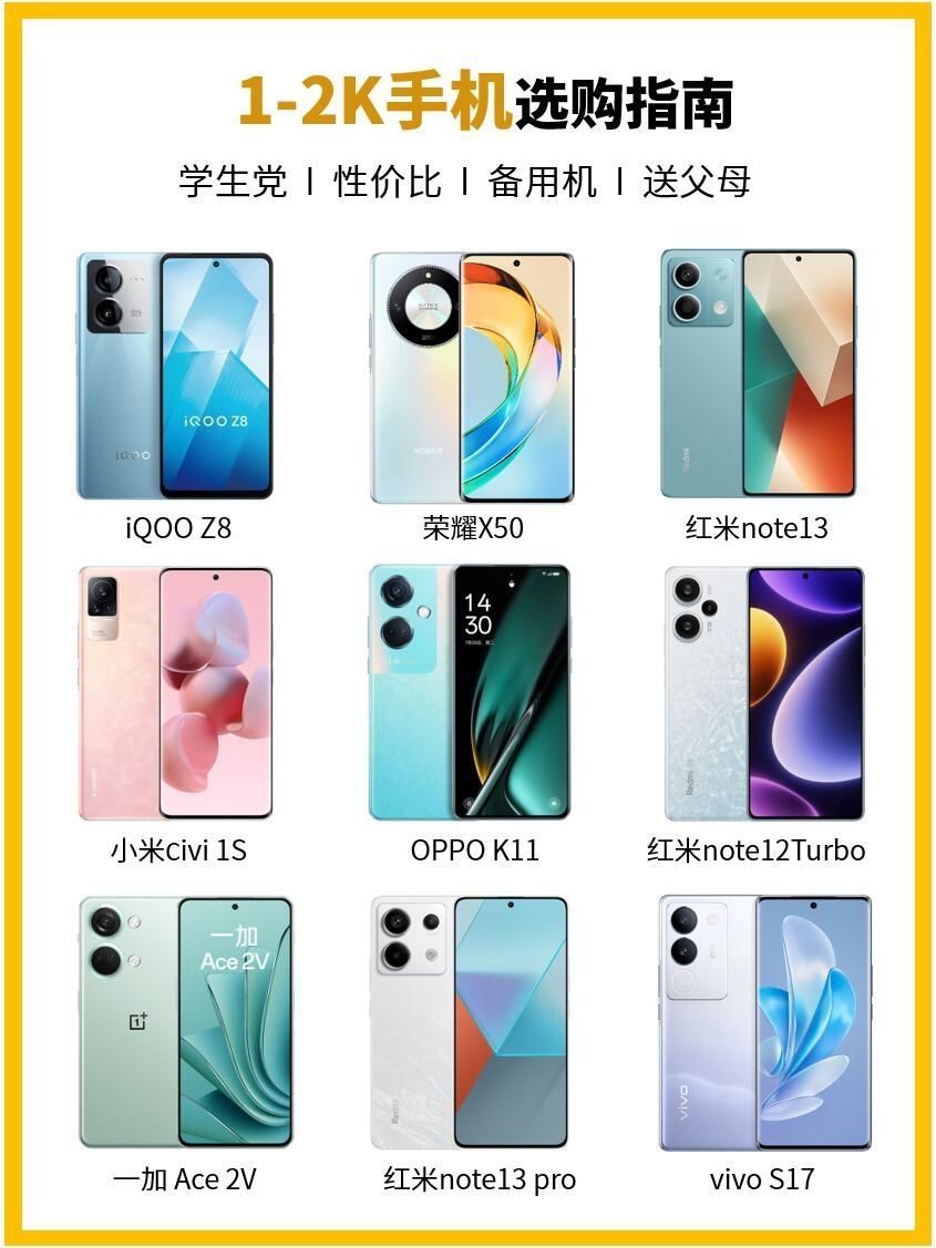 618期间,各大手机厂商为了促进销量也是纷纷降价,加上国补,手机价格直接直线下降!优惠力度最大的当属2k价位的机型! 今天博主来推荐四款1.5k左右性价比极高的安卓千元机,不论是预算不足的学生党,还是想要买来当作备用机的工作党,亦或是买来送长辈都是完全没问题的。 1⃣️iqooz10turbopro 7000mAh的大电池➕120w快充,妥妥的一天续航!从此告别续航焦虑 6.78英寸大屏幕,简直就...