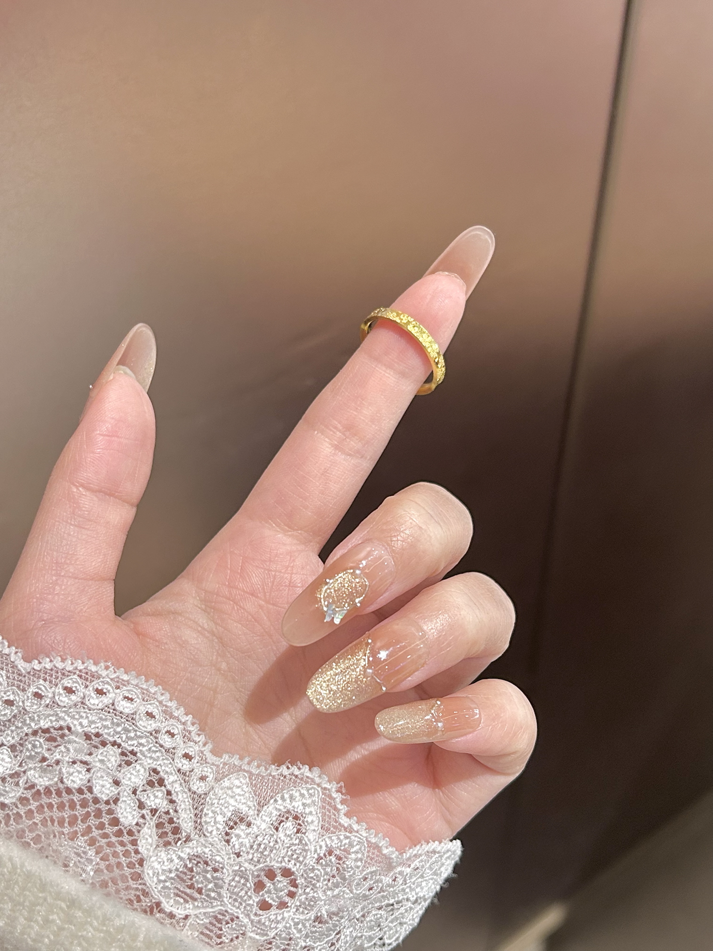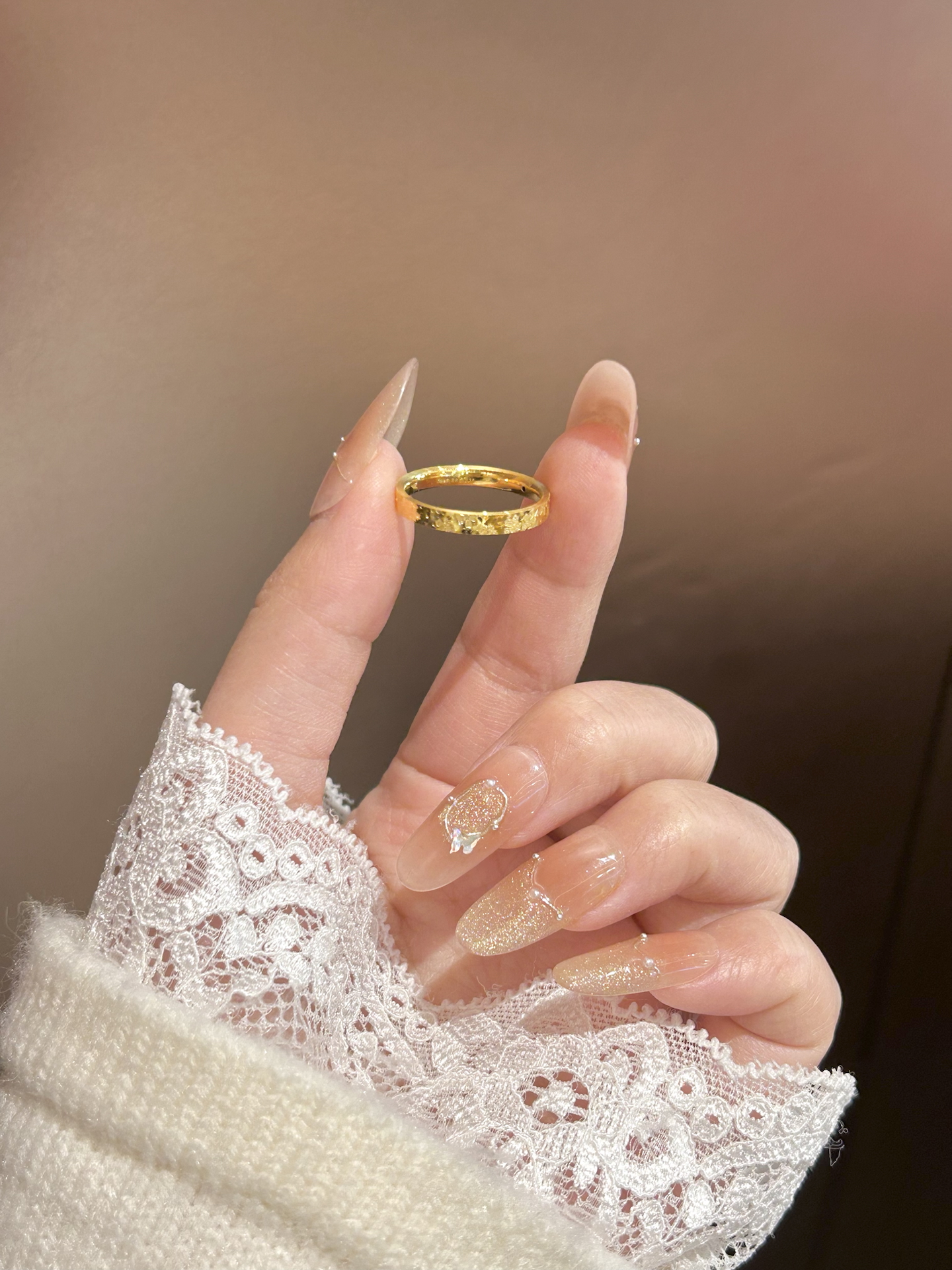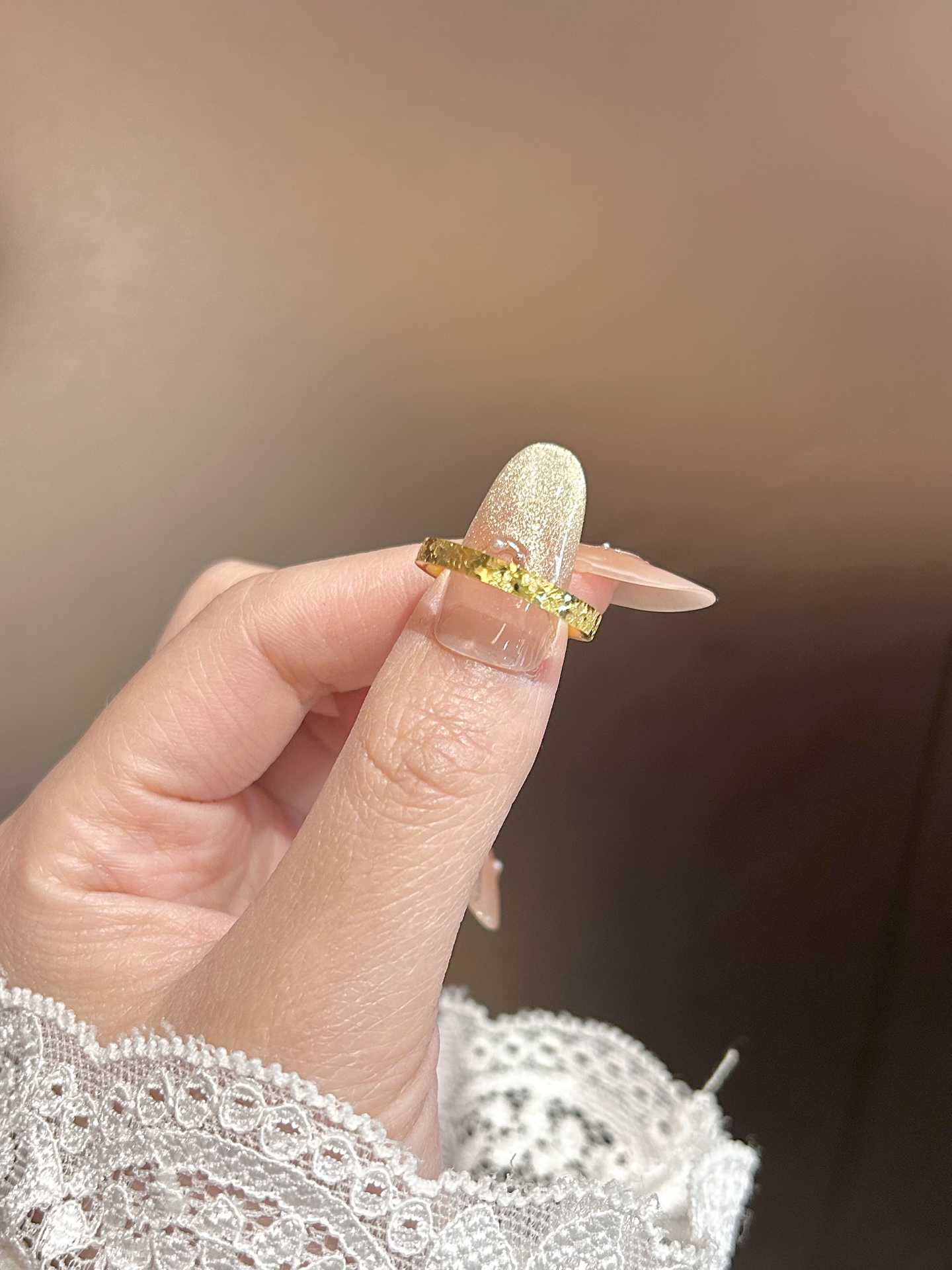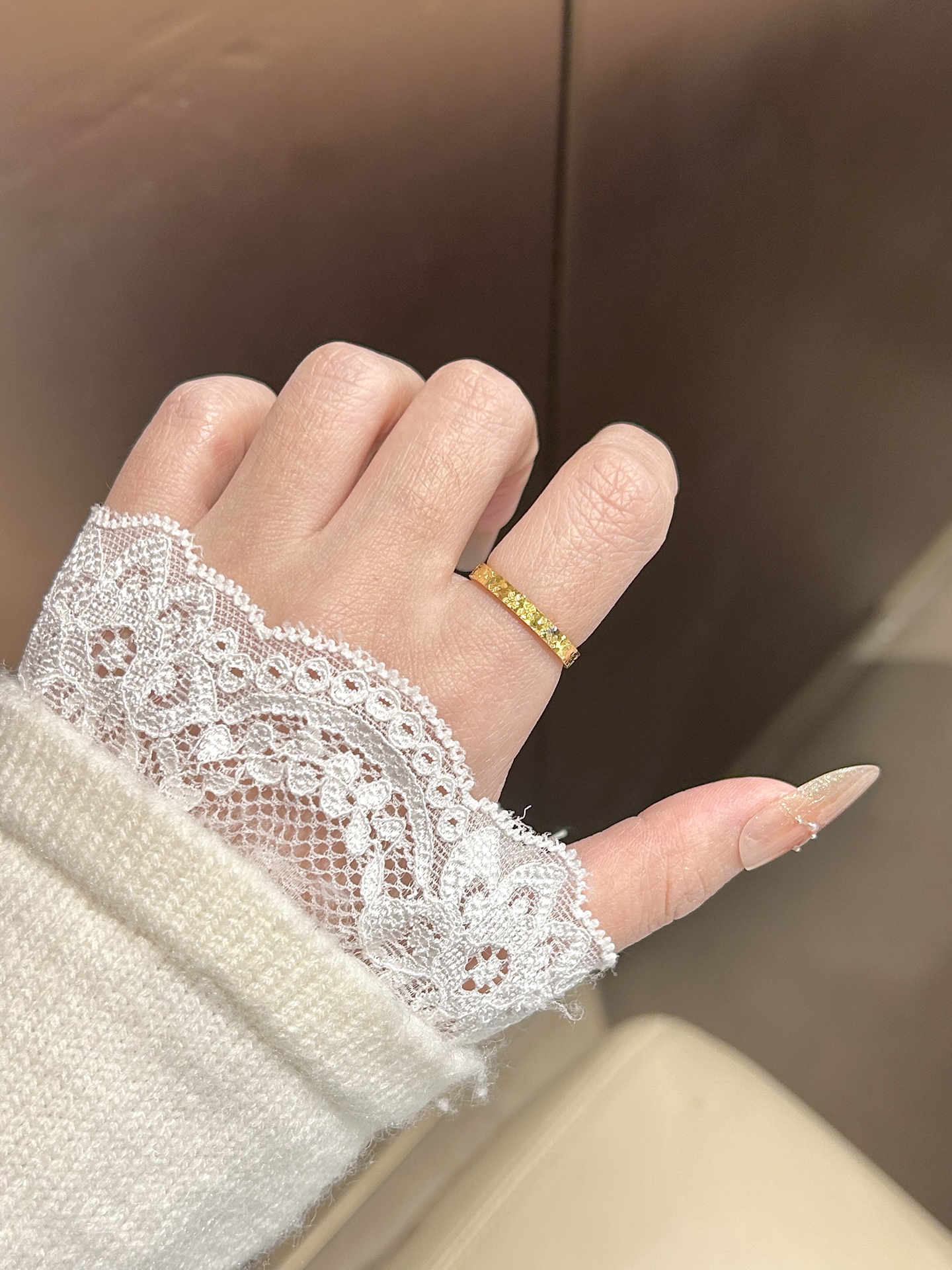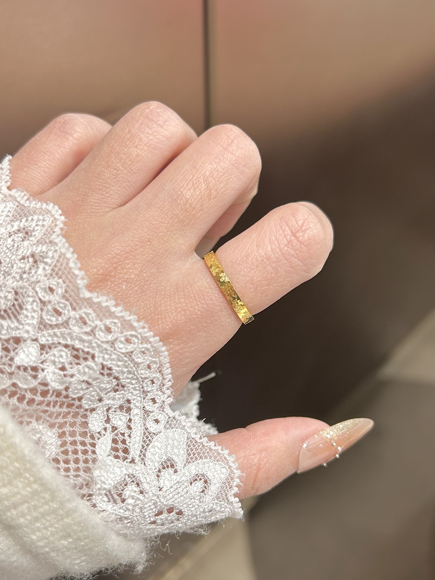 这个碎碎金戒指谁看了不说一句绝了啊! 碎碎金设计bling bling滴 戴在手上敲好看显白 款式独特 怎么戴都不腻哦 而且还是大品牌中国黄金滴 戴在手上稳稳的很安心~