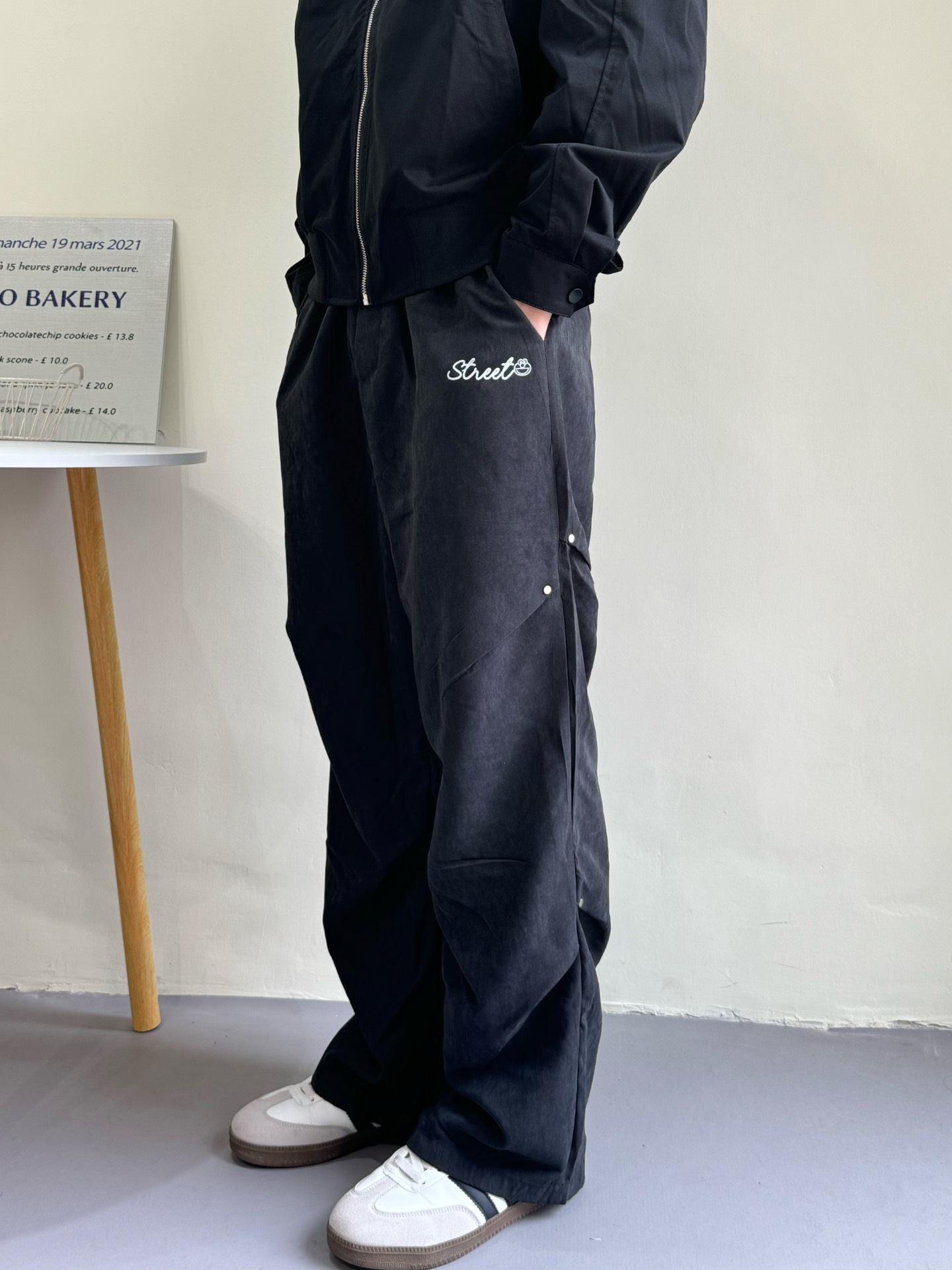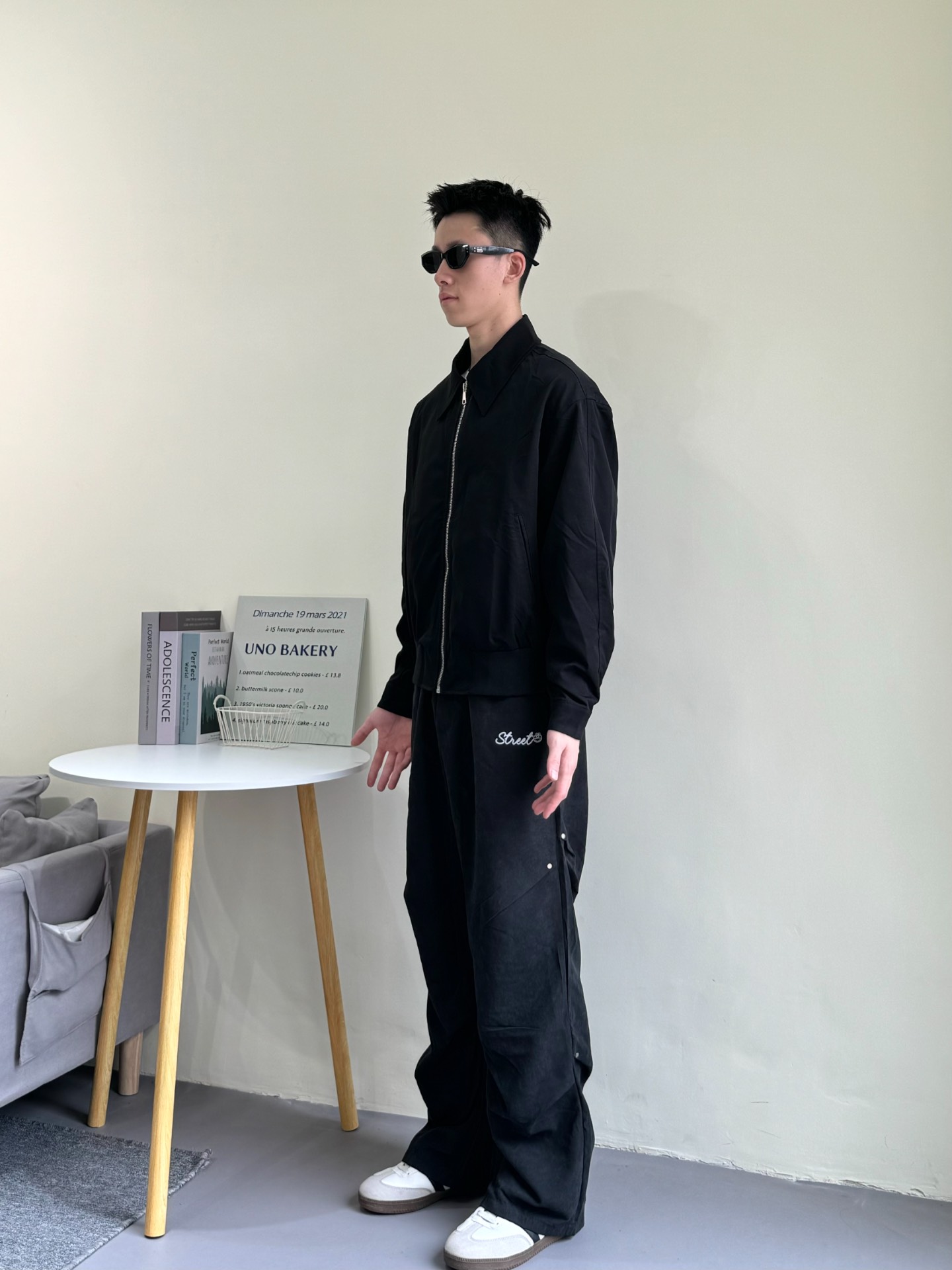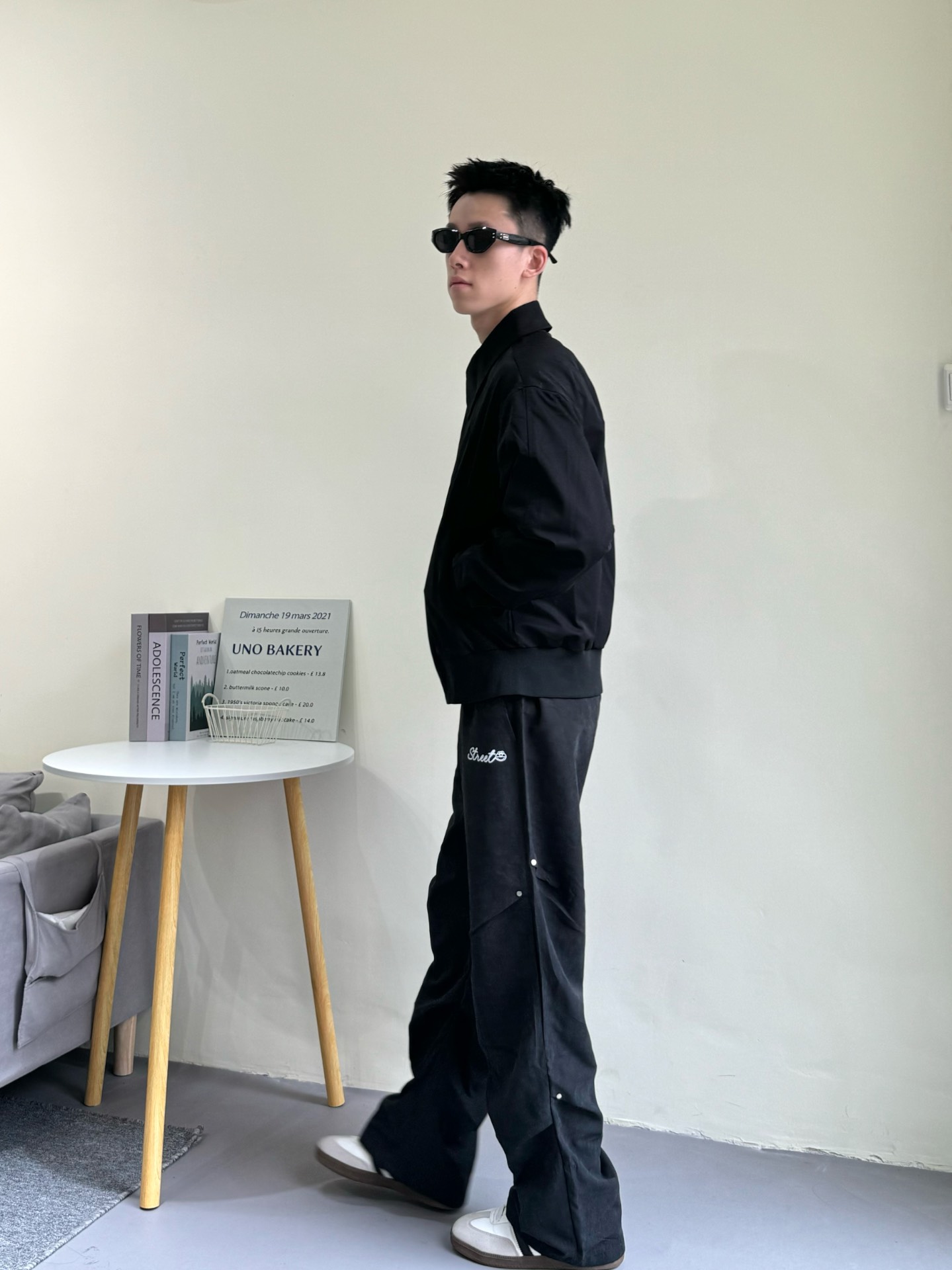 🌞今日穿搭一身黑色 上身教练夹克 下身芝麻街垂感宽松长裤 这条裤子穿上第一感觉就是很显腿长 宽松的版型有垂感搭配板鞋效果不错 个人推荐上面穿个短款夹克更显身材 图源网络侵删