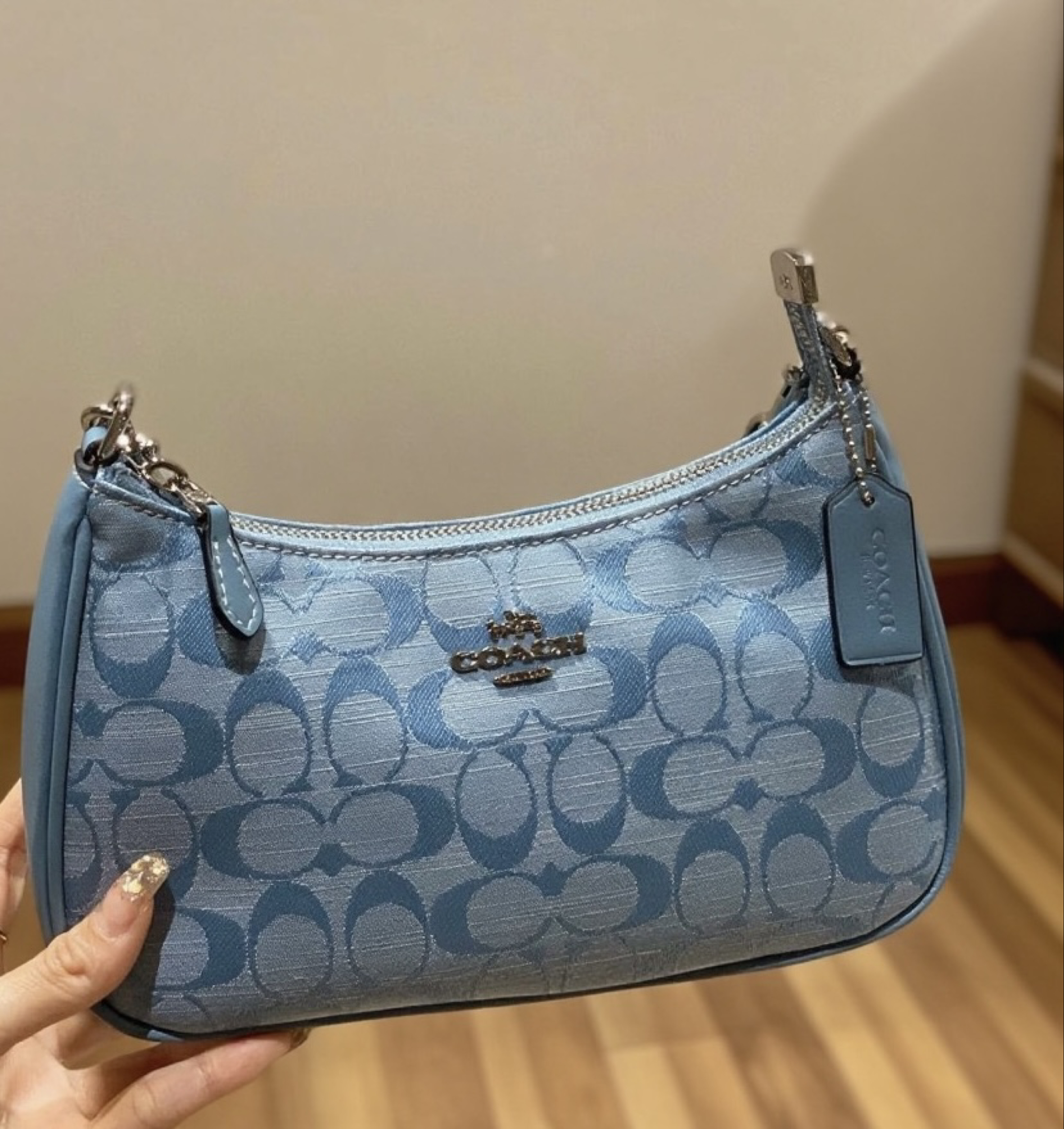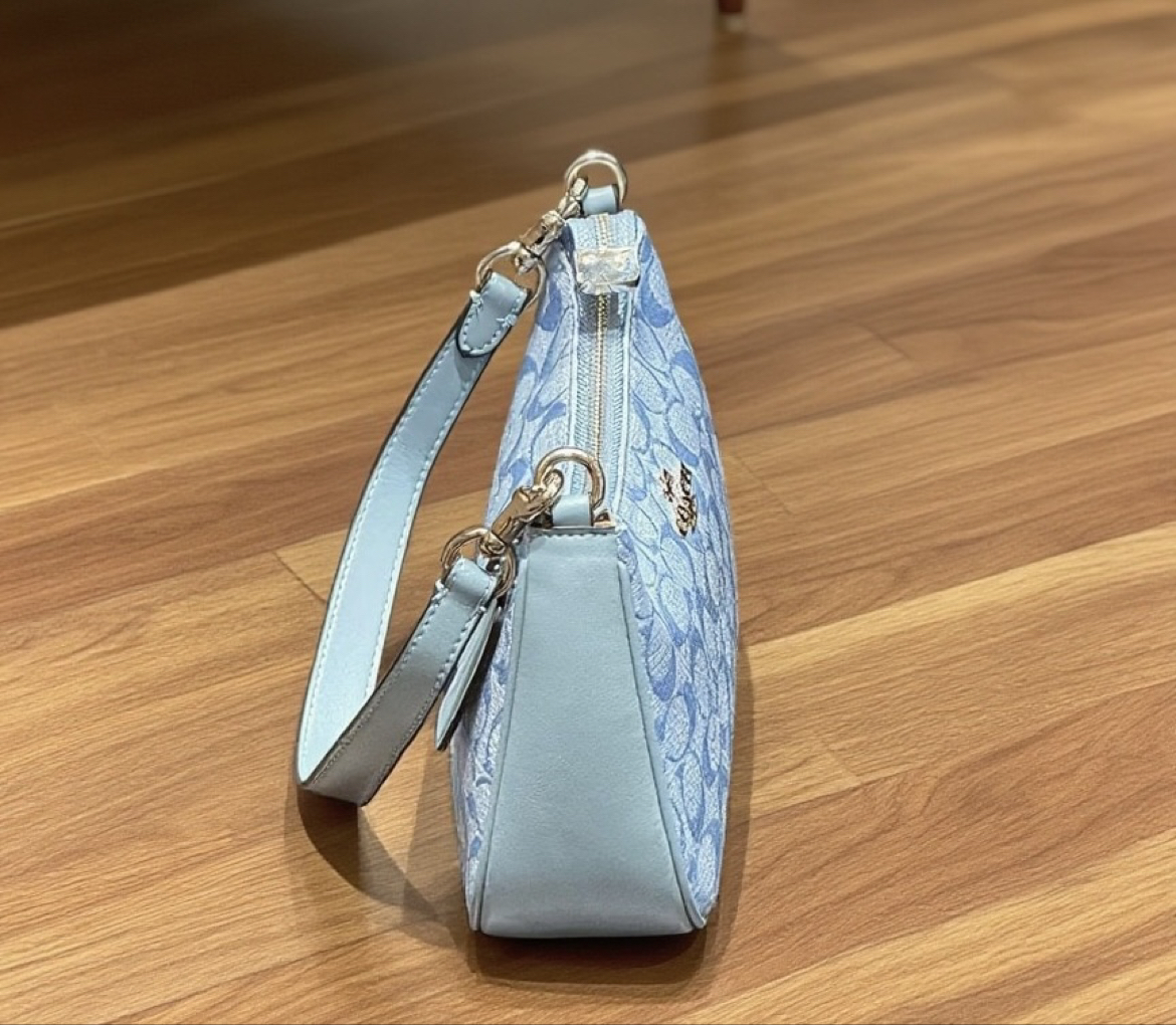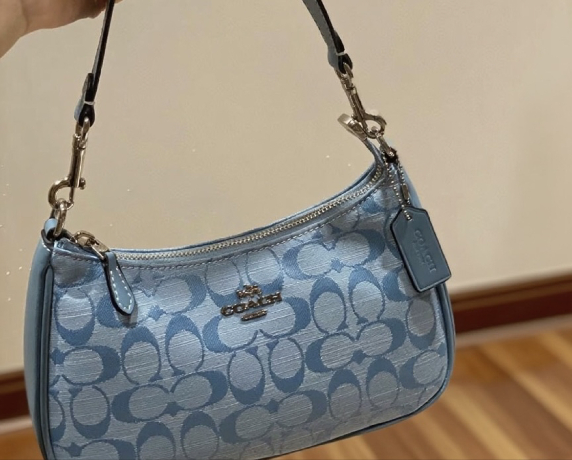 本篇笔记关联了Coach Teri 25 大号 经典老花提花织物香布蕾牛皮革拉链开合腋下包手提单肩包 淡蓝色等商品,为用户提供真实的使用体验和购买参考。