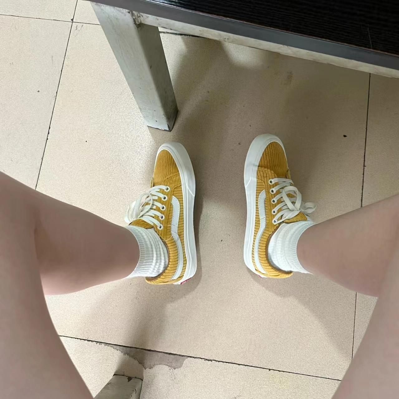 准确来说是“姜黄色”!!直接一整个爱住 百搭的小黄~哈哈哈哈,开心 脚感也舒服的哇~