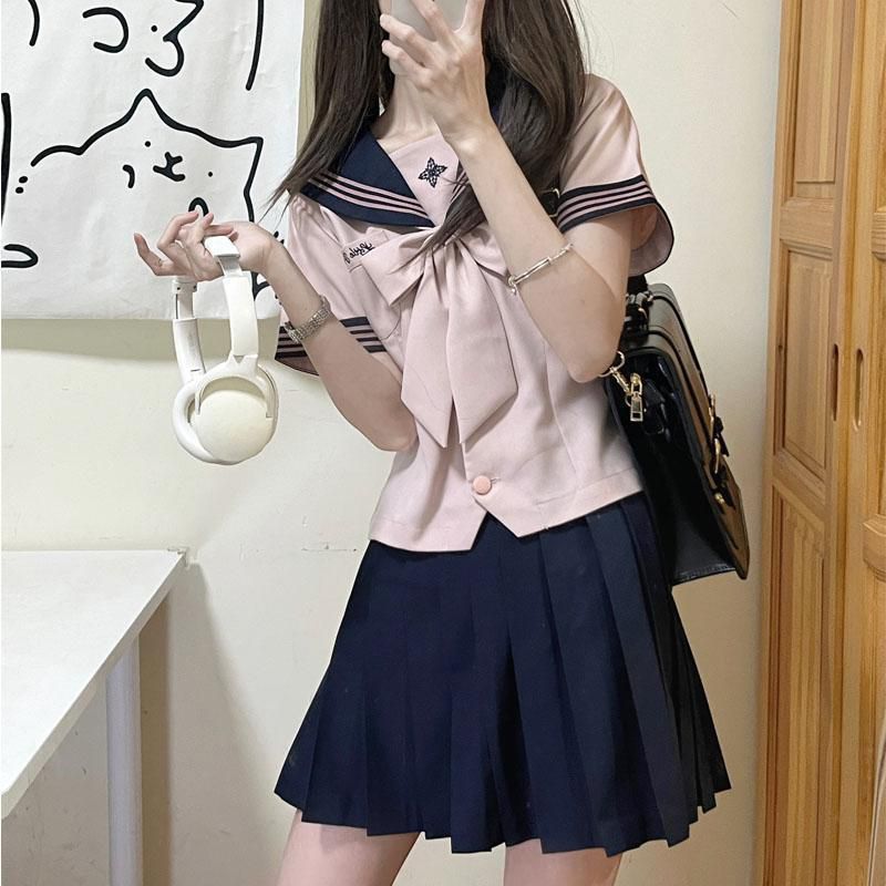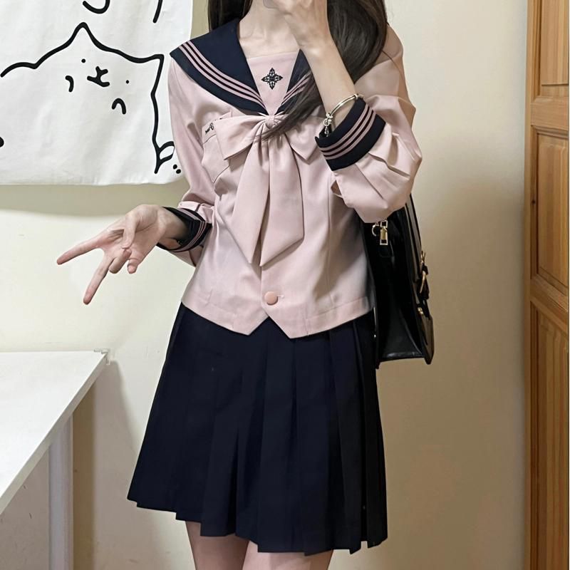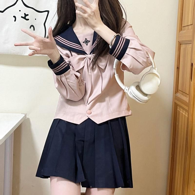 水手服单穿配格裙=正统JK;外搭针织开衫=温柔学姐;脱下领结换T恤=美式校园风;甚至把格裙当半裙配卫衣=甜酷辣妹!一套解锁「上课/约会/探店/拍照」四种场景,闺蜜聚会时一人一套换着穿都能搭出不同风格~