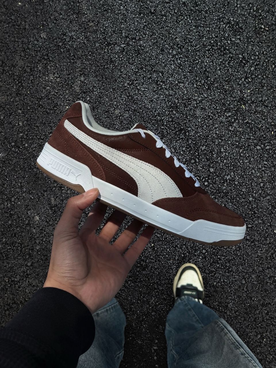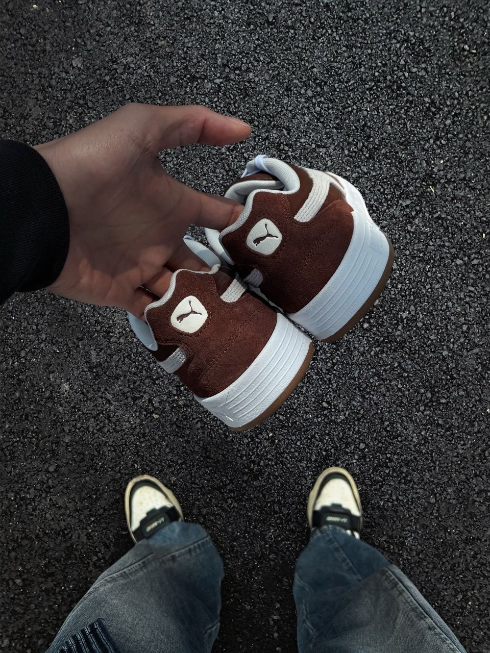 当街头文化遇见复古美学,PUMA C-Skate用棕白配方调出90年代滑板场的怀旧滤镜!低帮设计+流畅鞋身,像一杯焦糖玛奇朵——甜而不腻,慵懒有型☕。 ❇材质&配色:鞋面采用头层磨砂皮革+麂皮拼接,配色棕白渐变过渡自然,侧身烫金PUMA跑道标🏃♂、后跟立体浮雕Logo,连鞋带孔都镀上金属光泽✨棕白调不挑肤色,黄皮显白💡,白皮更高级,闭眼冲!