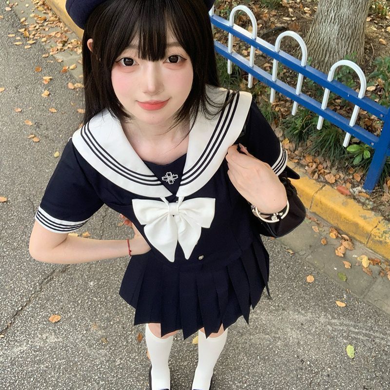 原创水手服【小时夏】日系JK收腰款水手服学院风制服套装女夏短袖 夏衣穿搭