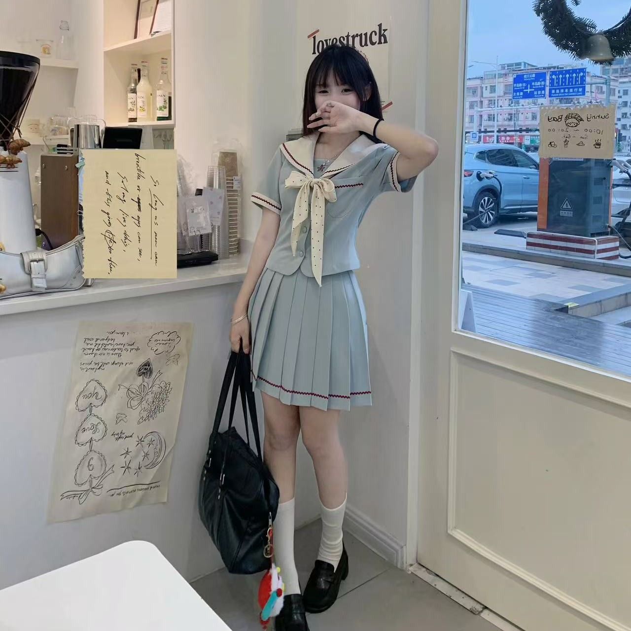 空栗鼠丸【青木梨】日系学院风水手服收腰jk制服校供百褶裙套装女 夏衣穿搭