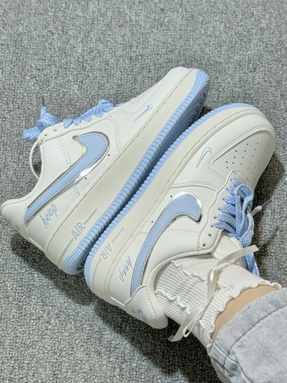 本篇笔记关联了Nike Air Force 1 空军一号 板鞋 轻便舒适百搭耐磨防滑 白色/冰蓝/金属扣、Nike Air Force 1 空军一号 板鞋 轻便舒适百搭耐磨防滑 白色/湖水蓝等商品,为用户提供真实的使用体验和购买参考。