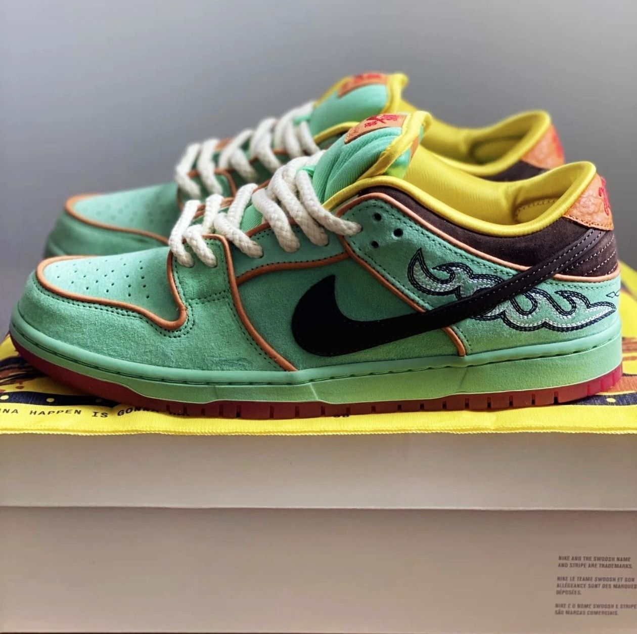 Nike SB Dunk这双鞋,薄荷绿主调超清新,黄、棕等配色点缀,像把活力夏日穿在脚上。独特的粗鞋带设计,让街头感拉满,不管是搭配潮服炸街,还是日常出街,都能成为足下亮点,唤醒穿搭的无限可能,踩上它,去奔赴属于自己的酷飒日常~