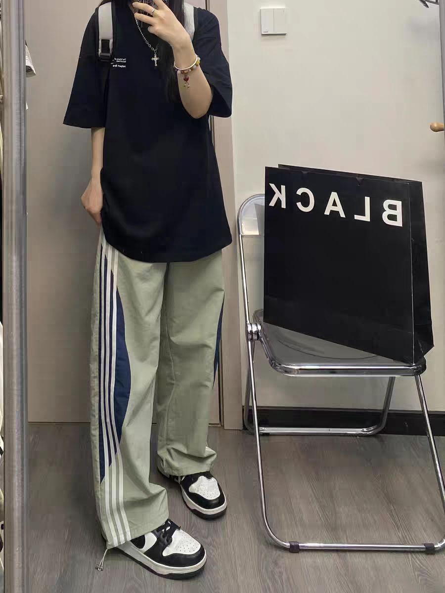 💫 面料是那种轻薄透气的,夏天穿完全不闷,垂坠感绝绝子,走路带风,瞬间拉长高挑比例~ 💙 侧边蓝白拼色条纹,复古又街头,和黑色短T锁死🔒 慵懒随性,日常出街、逛吃都超适配,随手一拍就是韩里韩气的松弛感,搭运动鞋、板鞋都巨好看! 胯宽腿粗姐妹闭眼入👀 阔腿版型藏肉一流,把“显瘦显高”狠狠拿捏,本梨形身材直接锁死🔒 谁穿谁爱上,跪求别停产! #阔腿裤推荐 #夏季穿搭 #梨形身材 #穿搭分享 #显瘦神...