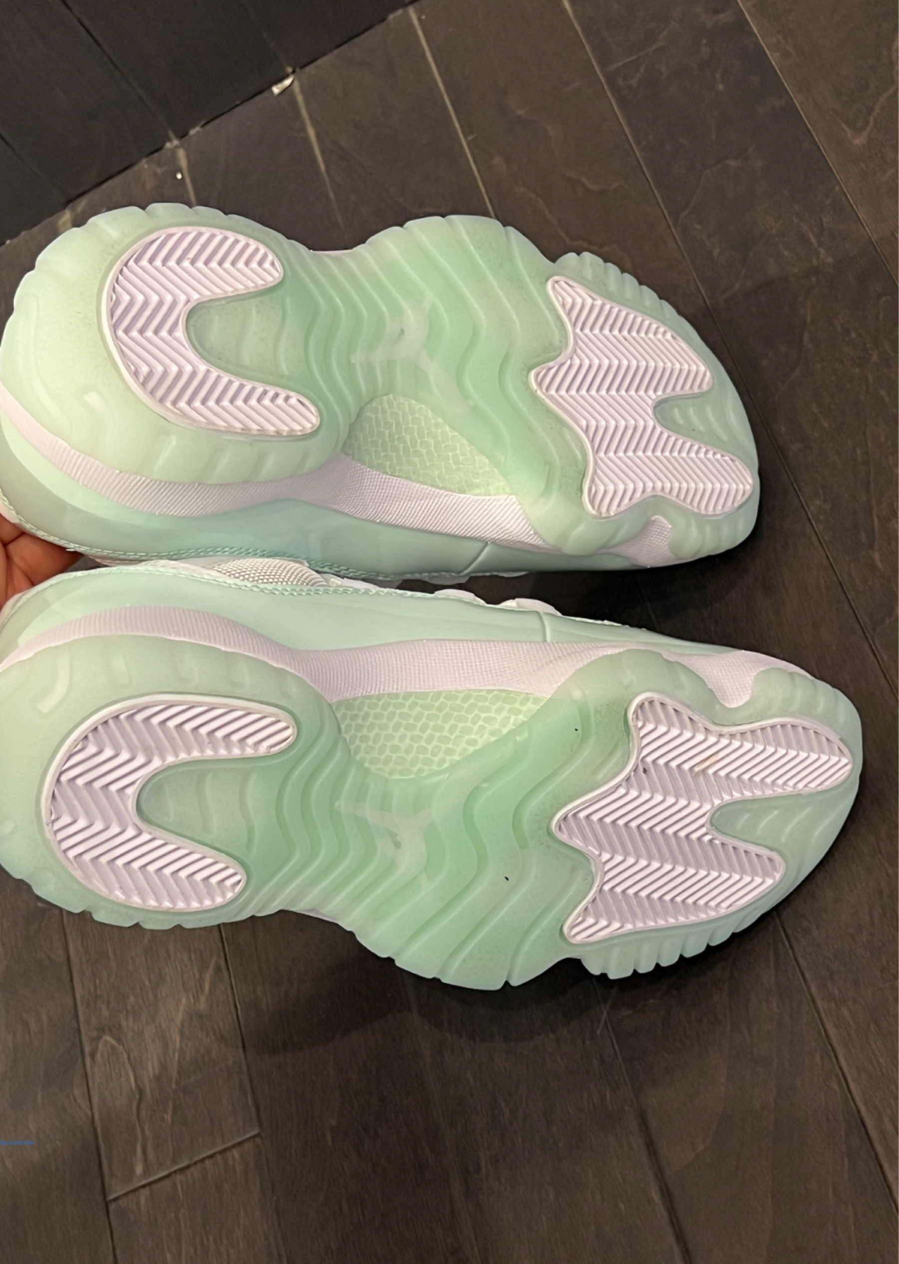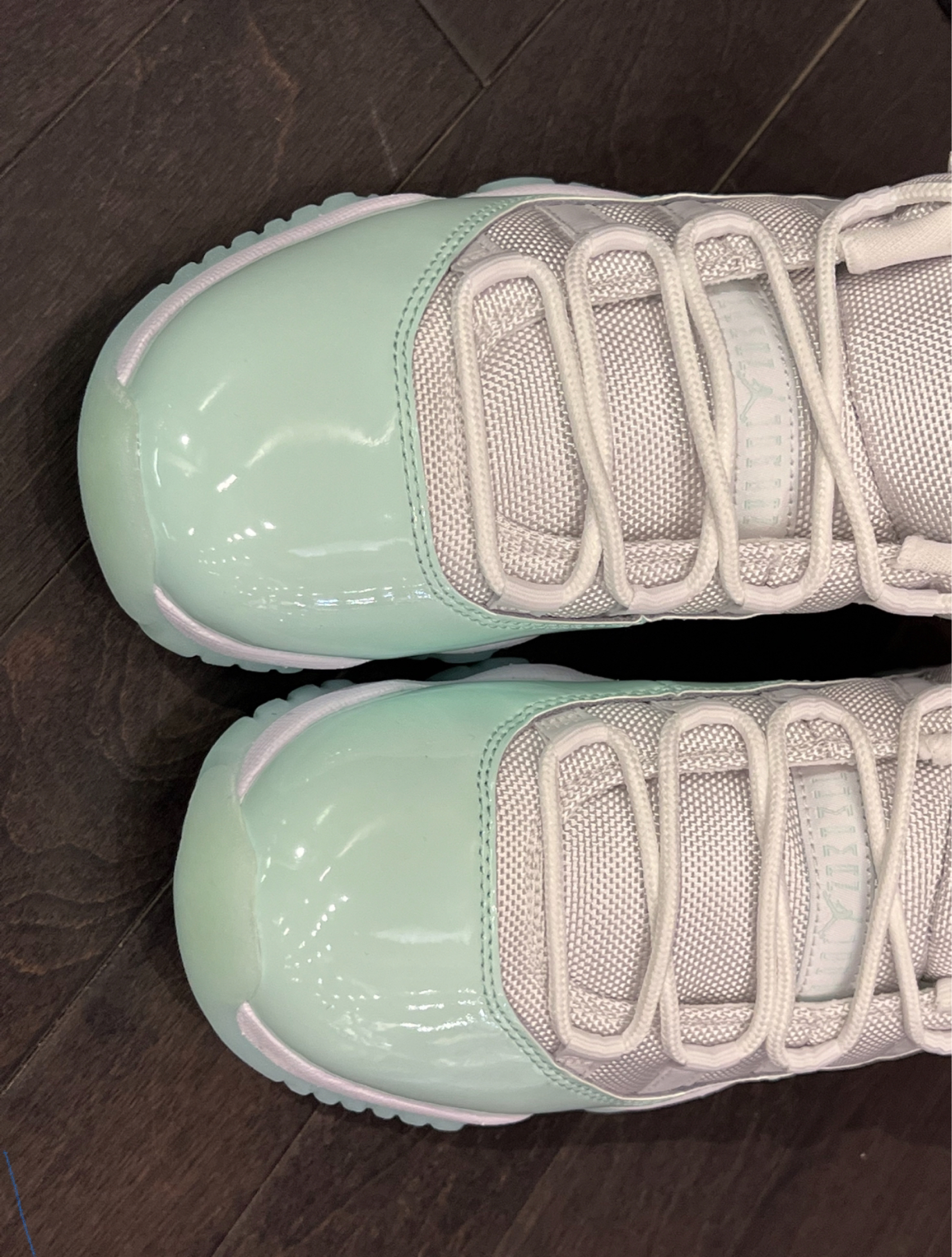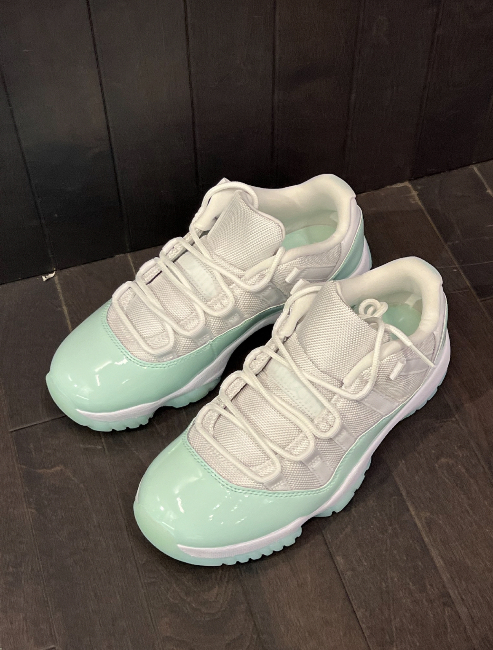 今天分享近期上脚的AJ11 Low薄荷绿配色,整个鞋子果冻感十足,给人一种清新又少女。 经典的漆皮➕尼龙鞋身,低帮设计没有卡脚后跟。水晶大底,踩开了会有缓震感。 建议可以买大半码,鞋头偏小。日常通勤,外出游玩都可以穿。这个配色在夏天就是一眼清爽的感觉。