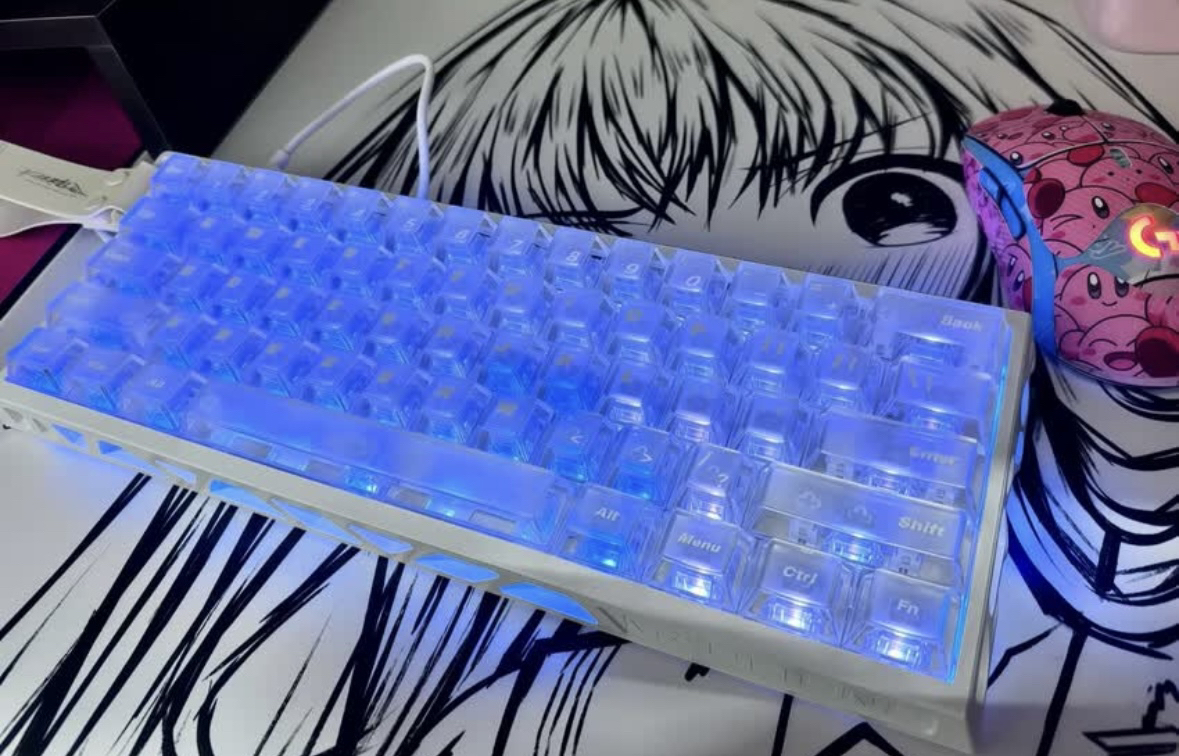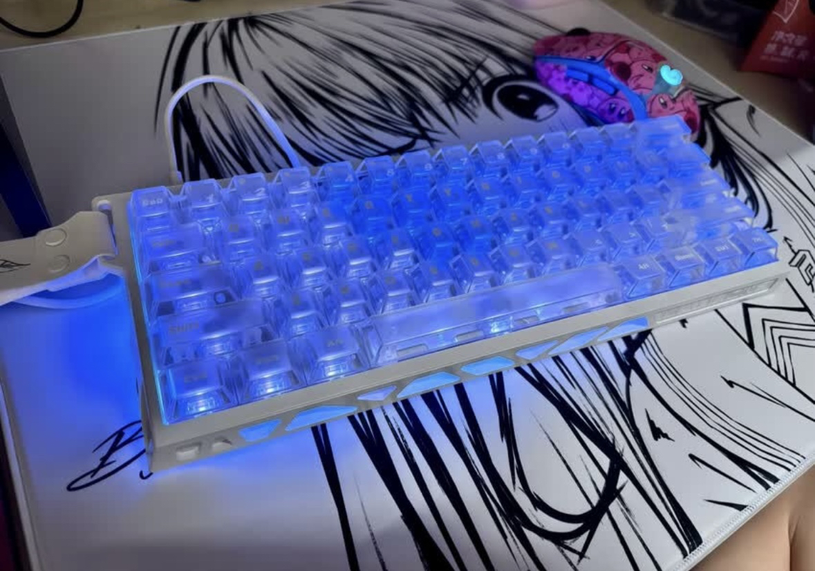 非常帅的键盘,美加狮重出江湖,搭配幻诺的天启磁轴,性能拉满有8k回报率0.01tr精度,四面透光呢铝壳加上底部的水波纹匀光背板,真的帅的没边