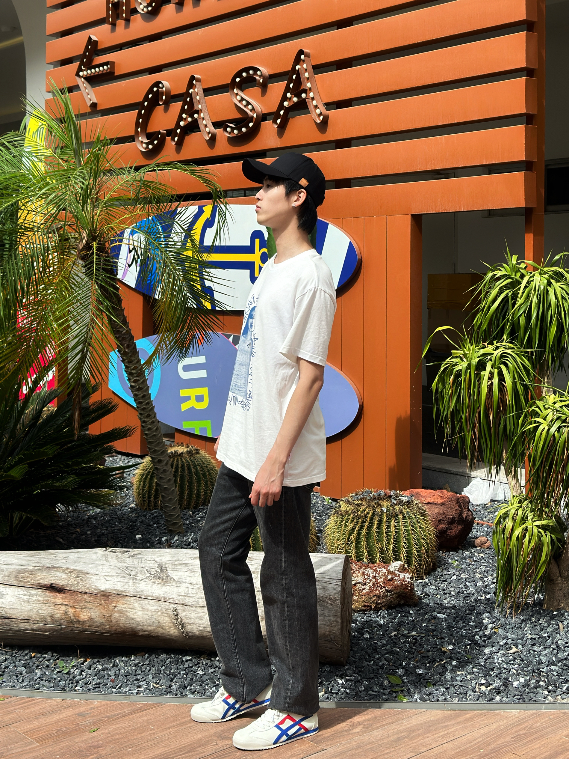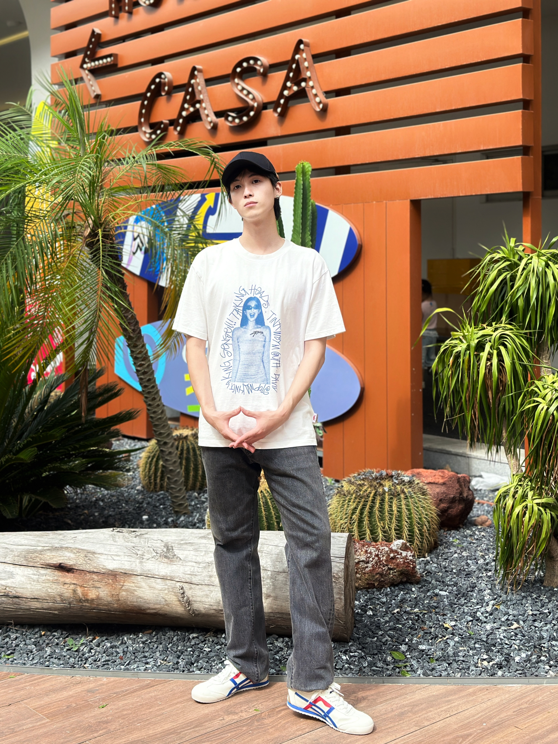 男生夏季清爽穿搭必不可少的单品就是白t啦~ 鸭舌帽也是我这种懒人必备的单品,头发睡乱了也不怕,帽子一戴时尚感拉满✅ 🧢简单黑色查尔斯桃心品牌皮标鸭舌帽(经典百搭款) 👕白色t恤 🩳直筒黑色牛仔裤 👟鬼冢虎帆布小白鞋