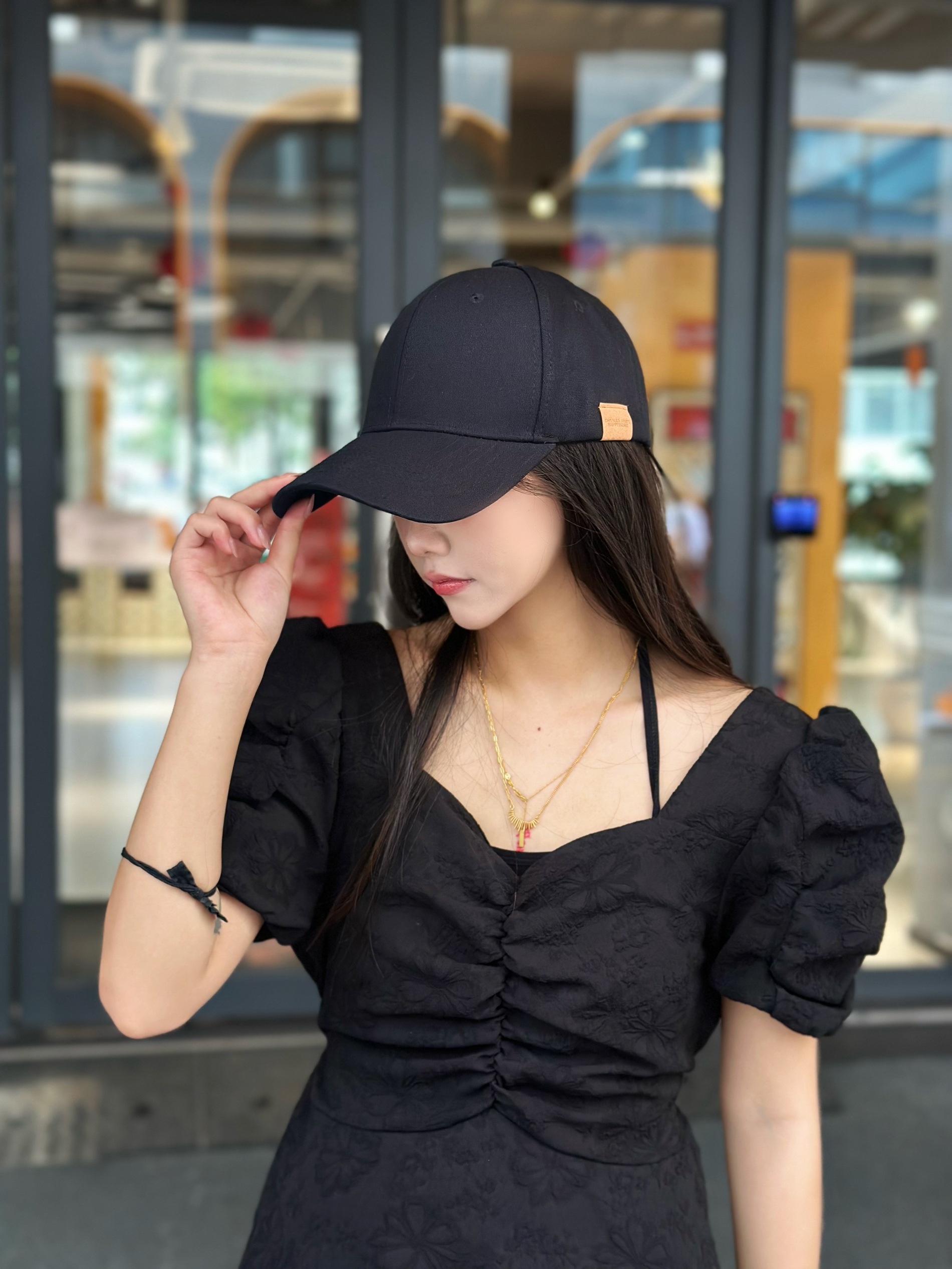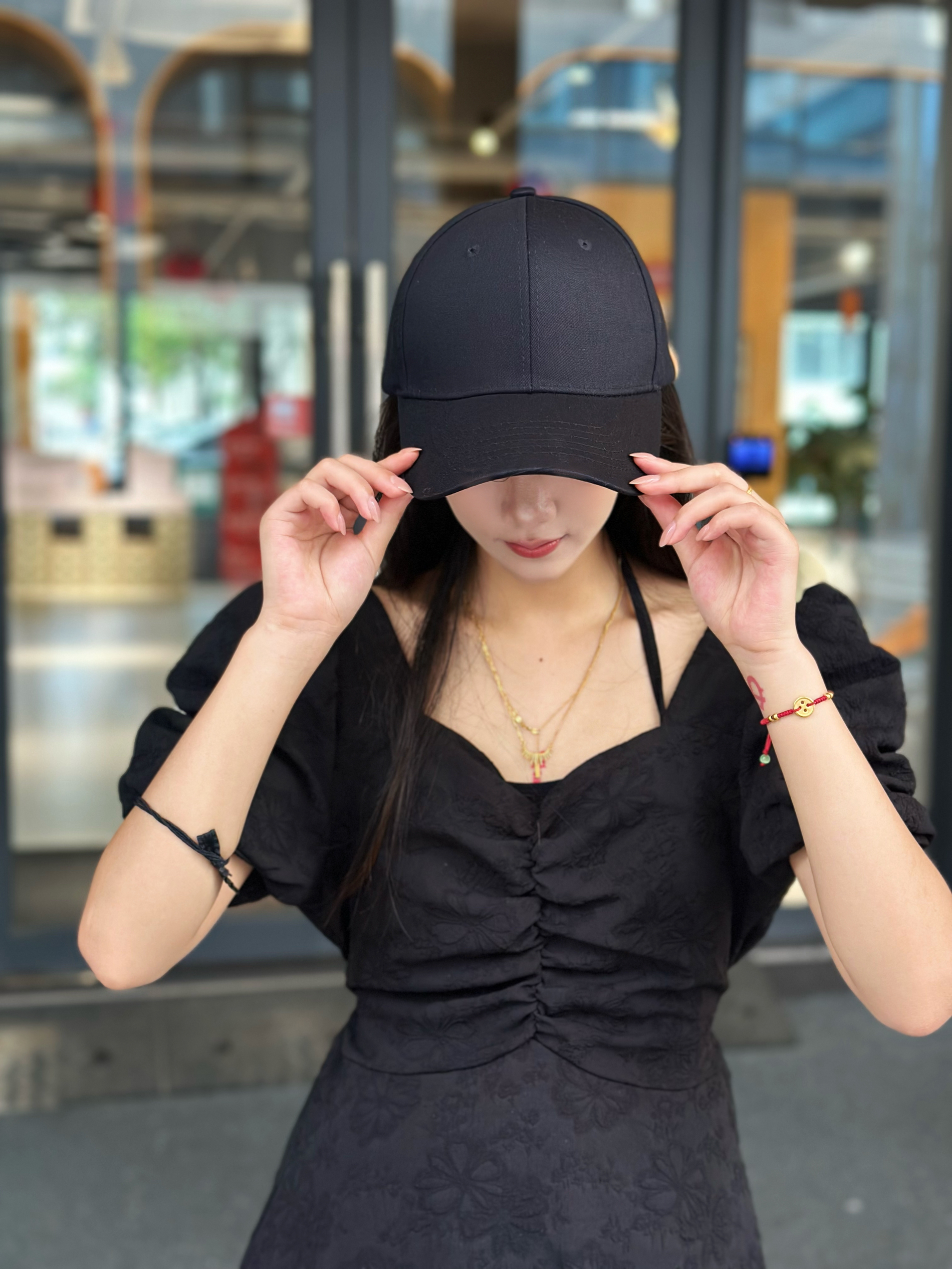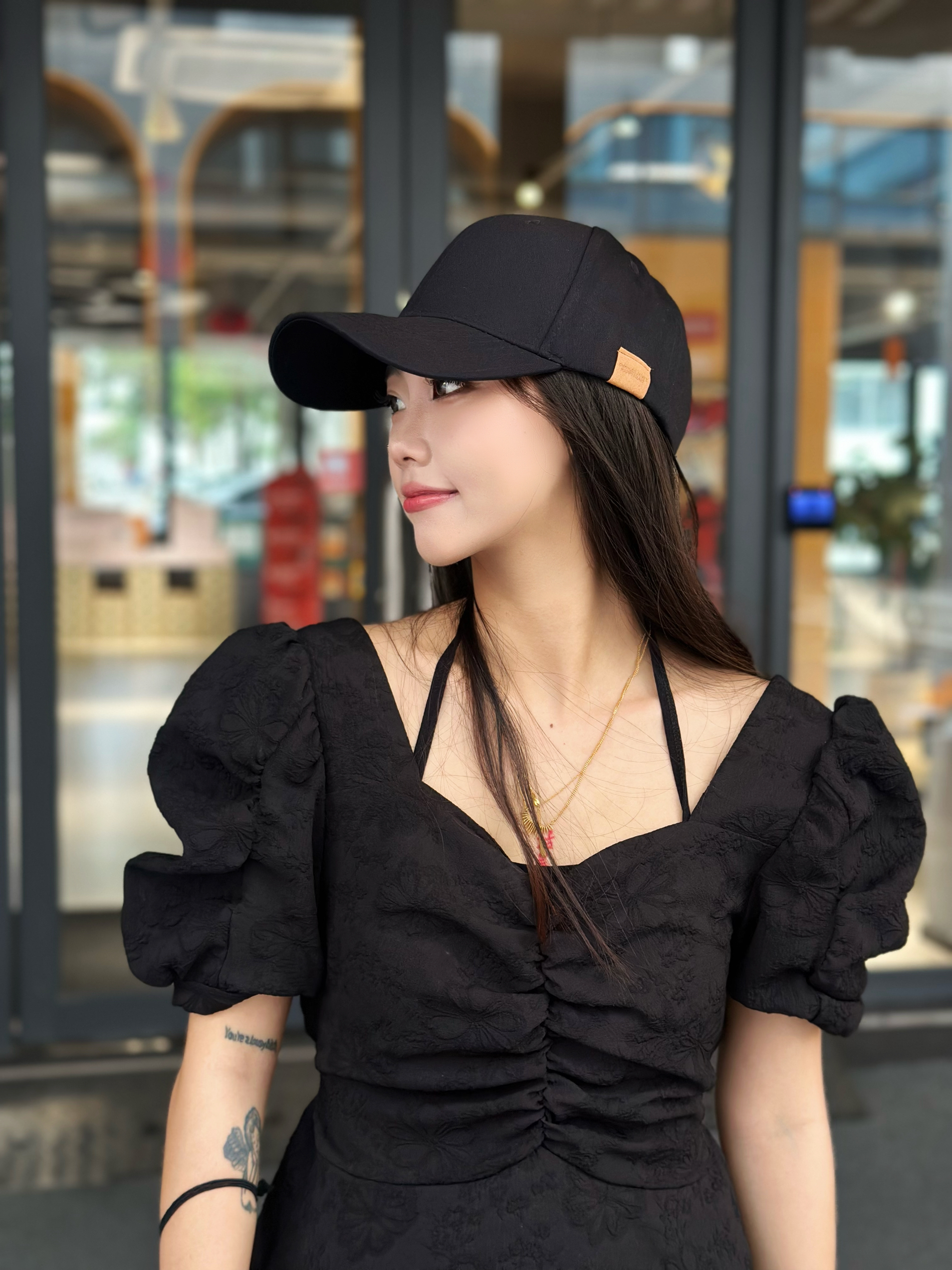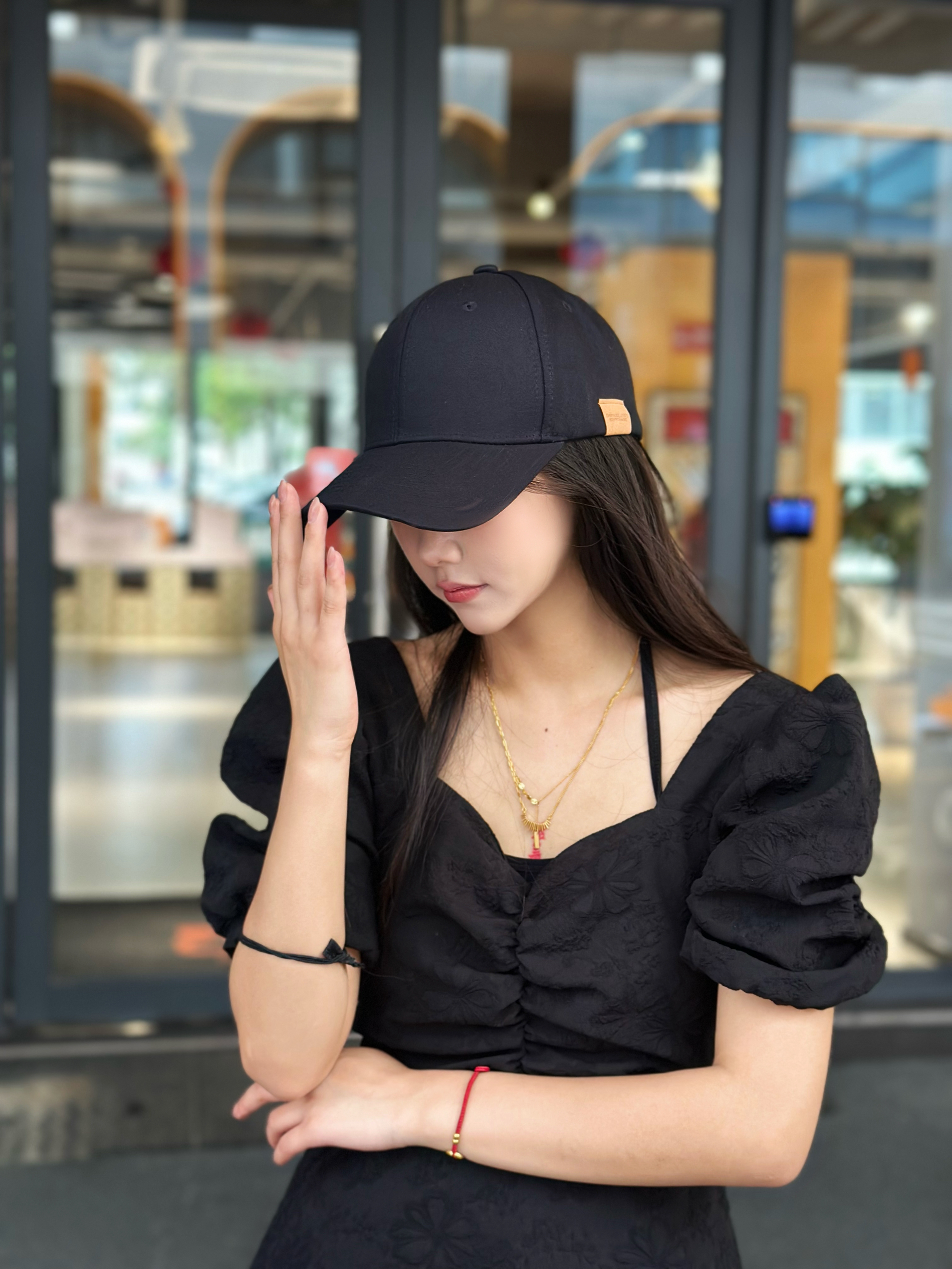 同款鸭舌帽🧢~我买的黑色滴🔗~不想化妆出门/平常拿快递带都好看!(我出门逛街吃饭也经常带~) 帽子版型挺不错不会很紧,显脸小👌🏻(帽型感觉是包头效果挺好的)大/小头围可以放心!后面调节是够的