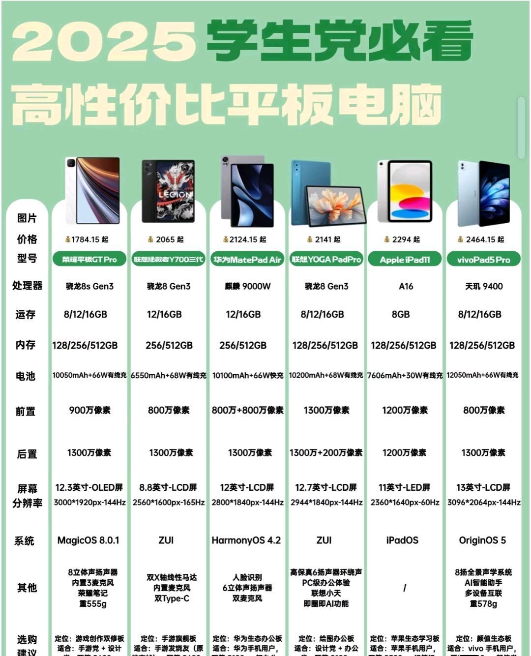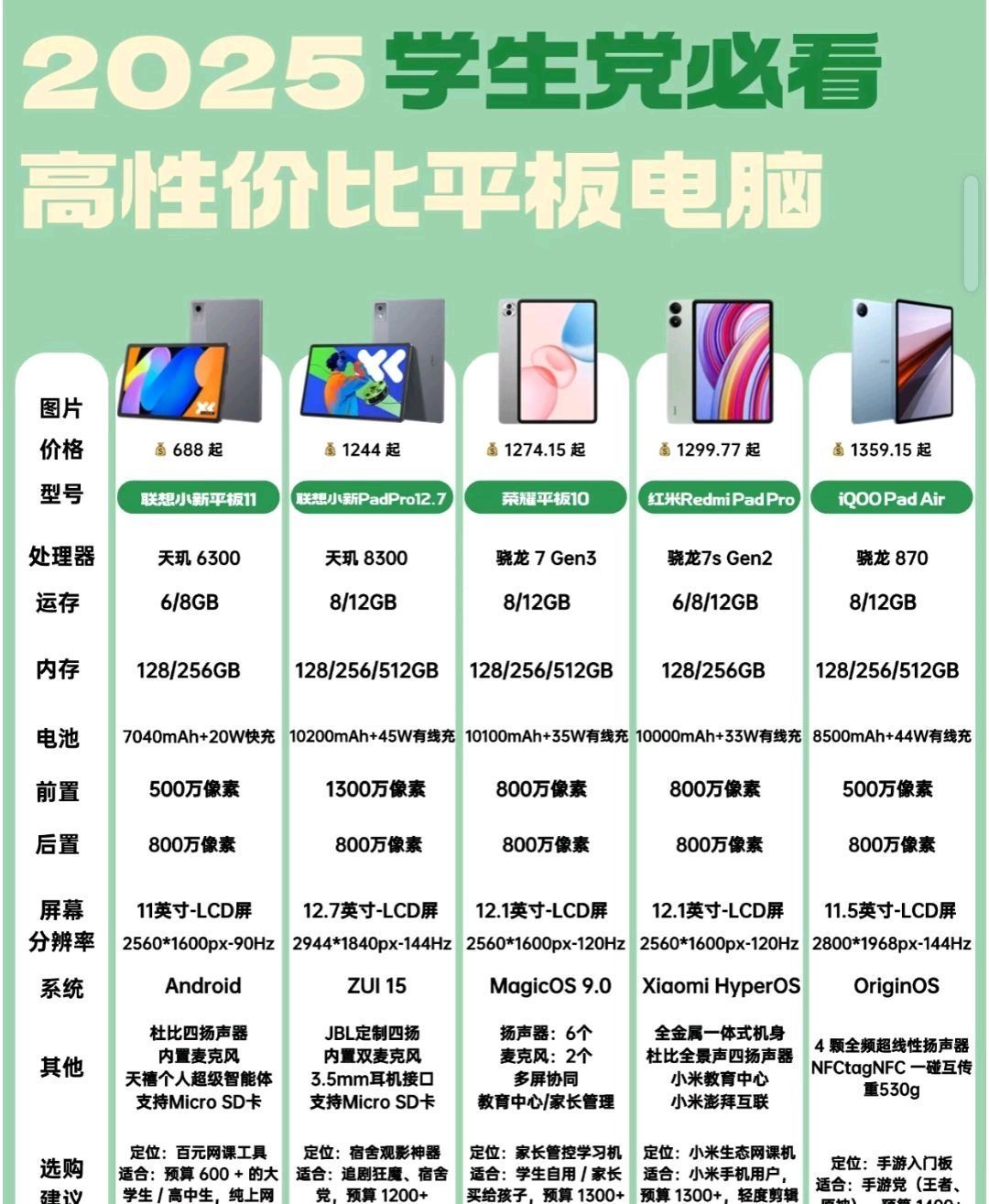 学生党选平板别再瞎逛!整理了2025超全高性价比平板清单🔥 从几百到几千价位都有,处理器、内存、屏幕参数明明白白💻 不管是上网课、追剧,还是轻度办公、做笔记,都能找到适配的! 预算有限又想性能稳?直接照着选,少踩坑省时间,学生党钱包友好版平板攻略,速码!