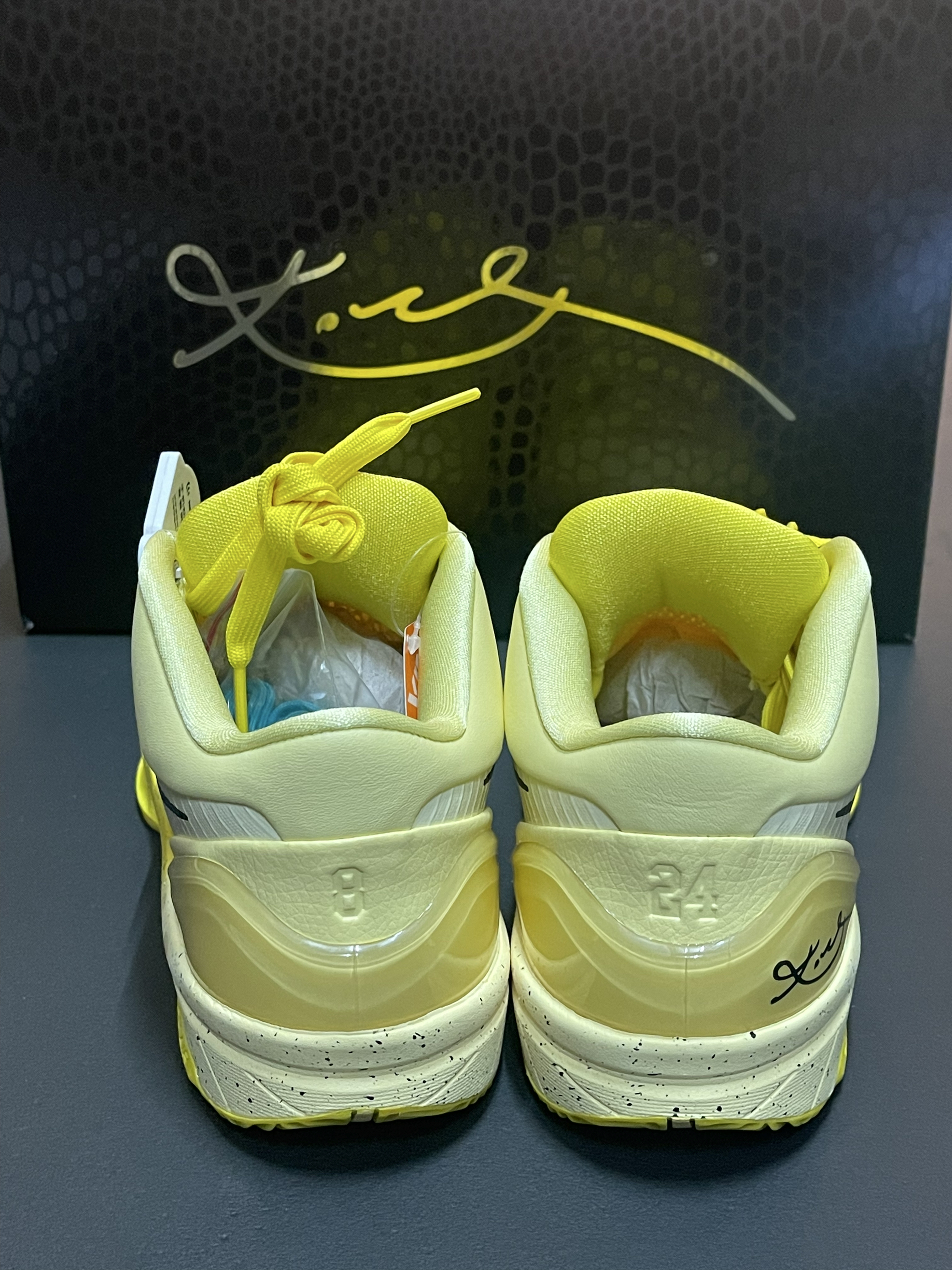 聚光灯下致敬传奇!科比主题新配色登场整双鞋以醒目的明黄色作为主调,设计灵感源自聚焦球场的聚光灯,视觉冲击力极强。鞋侧 Nike Swoosh Logo 以简约形态呈现,大气而不失细节巧思。后跟区域采用渐变工艺,从明黄自然过渡至暖白色,增添层次美感。中底则饰以泼墨点缀,丰富整体视觉效果。鞋身融入科比亲笔签名及标志性的“8”与“24”背号元素,直指设计主题,向传奇巨星科比•布莱恩特致以崇高敬意。值得玩...