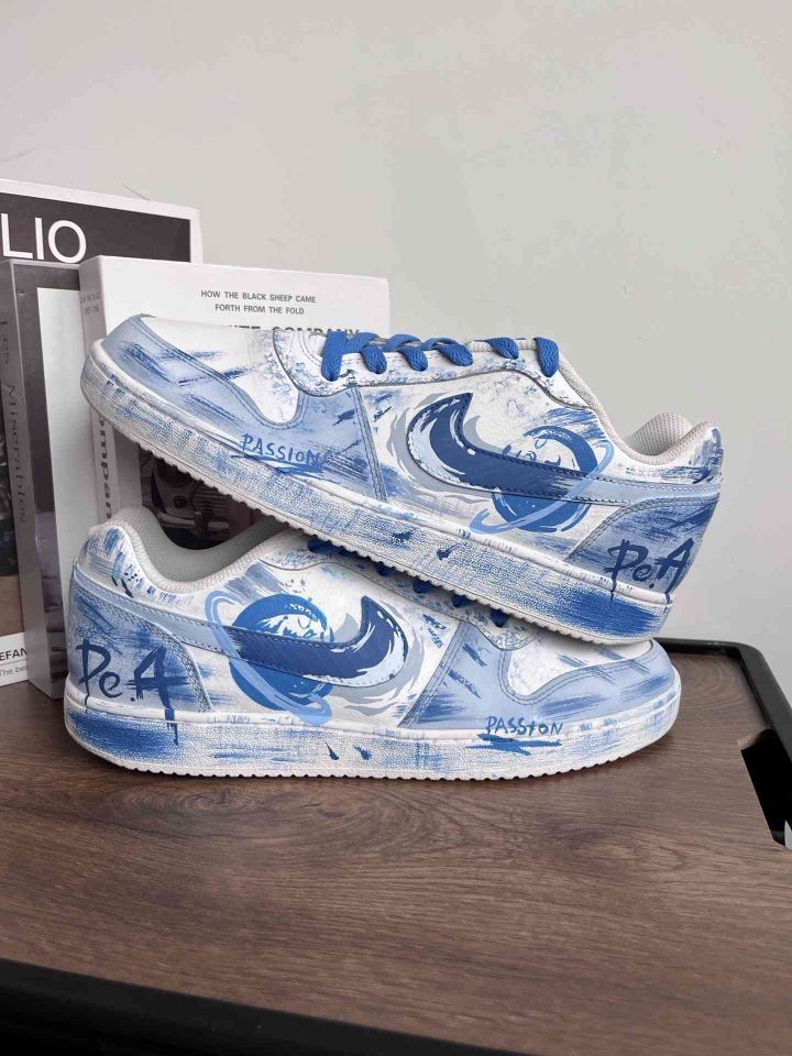 👟鞋名称:耐克定制球鞋 🔍分享理由:除了跑鞋还要有板儿鞋 这是我最近刷到的最好看的一个鞋子了 百搭牛仔裤或者白色长裤 🤔整体感受:炫酷配色 感受星空之美 绘画艺术乱而不糟 ,牛奶一般的颜料 没有板儿鞋的兄弟们赶紧收下入手