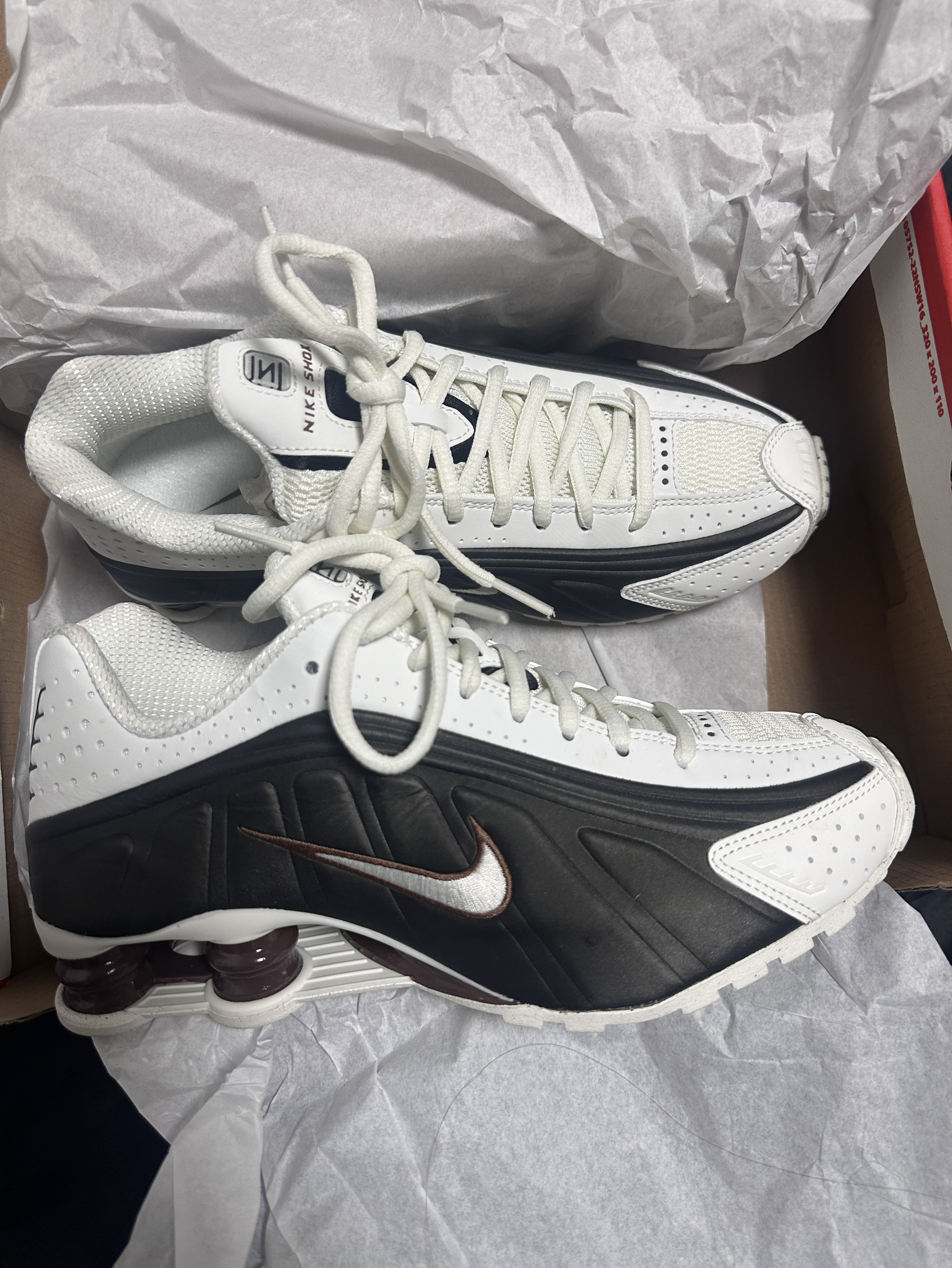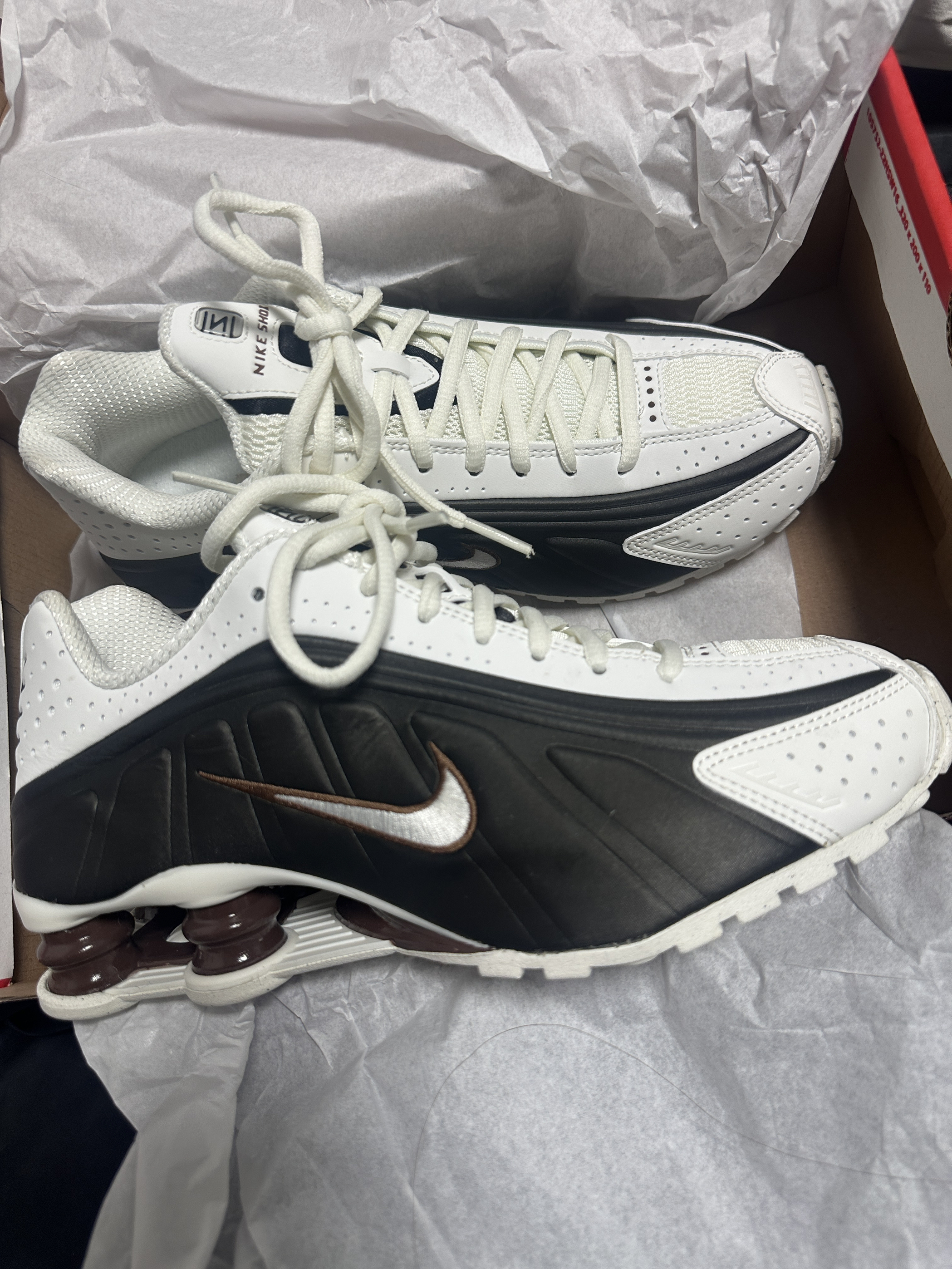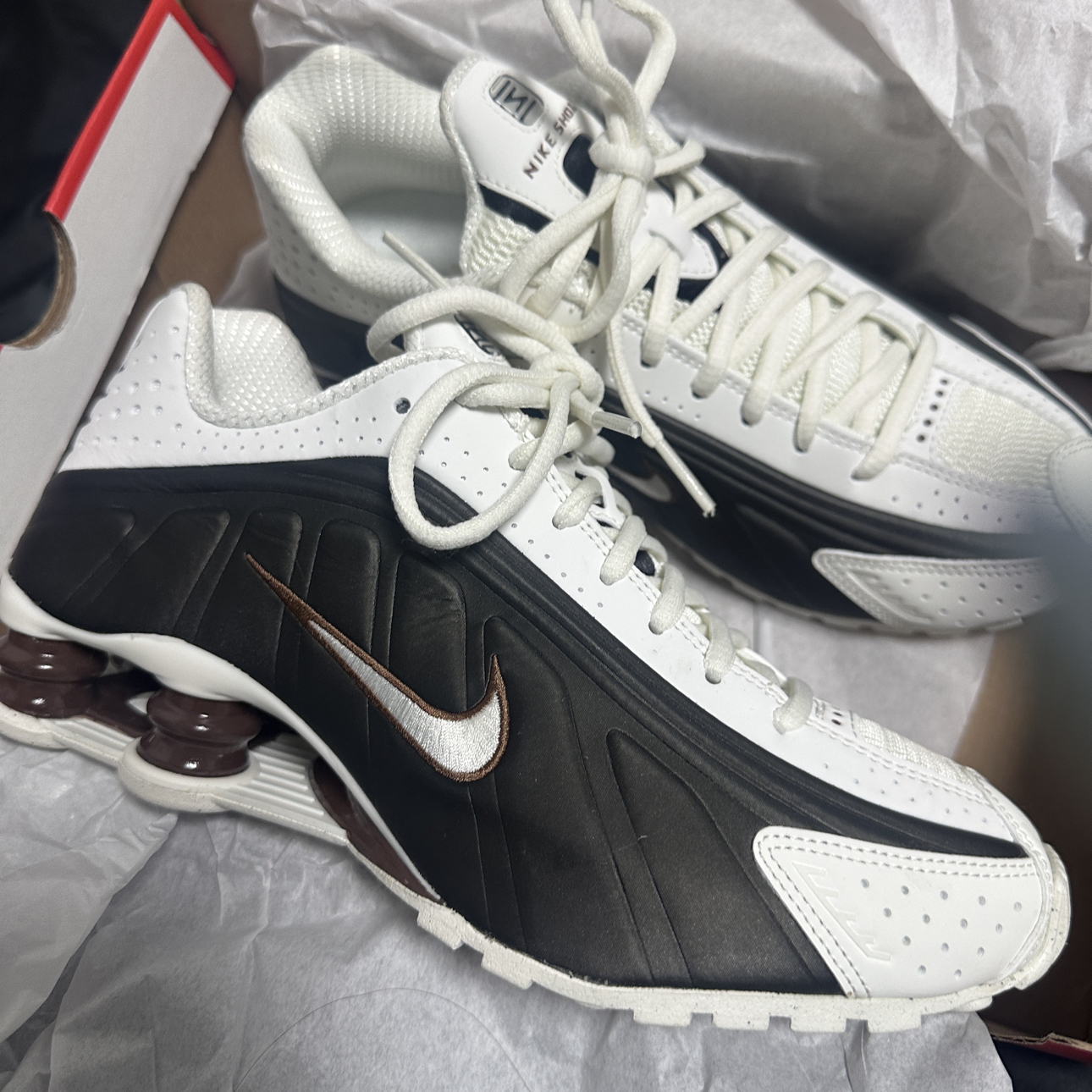 🛒好物名称:Nike Shox R4 🤔推荐理由:就是独特的颜色组合 有白色、灰黑、巧克力色三种颜色组合,像极了巧克力奶咖一样,脚感很舒服,值得买👍