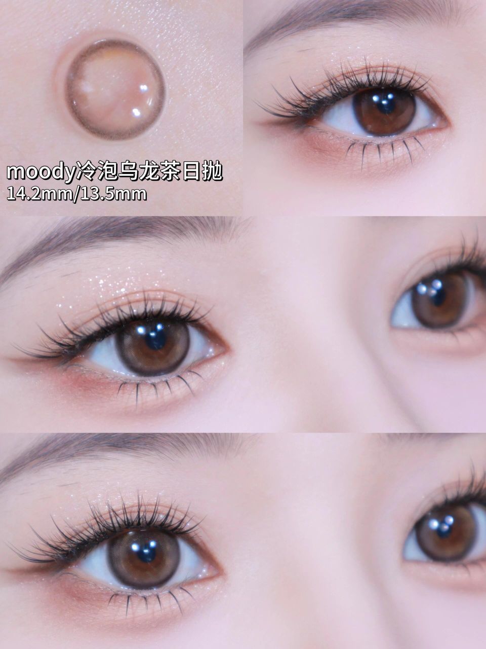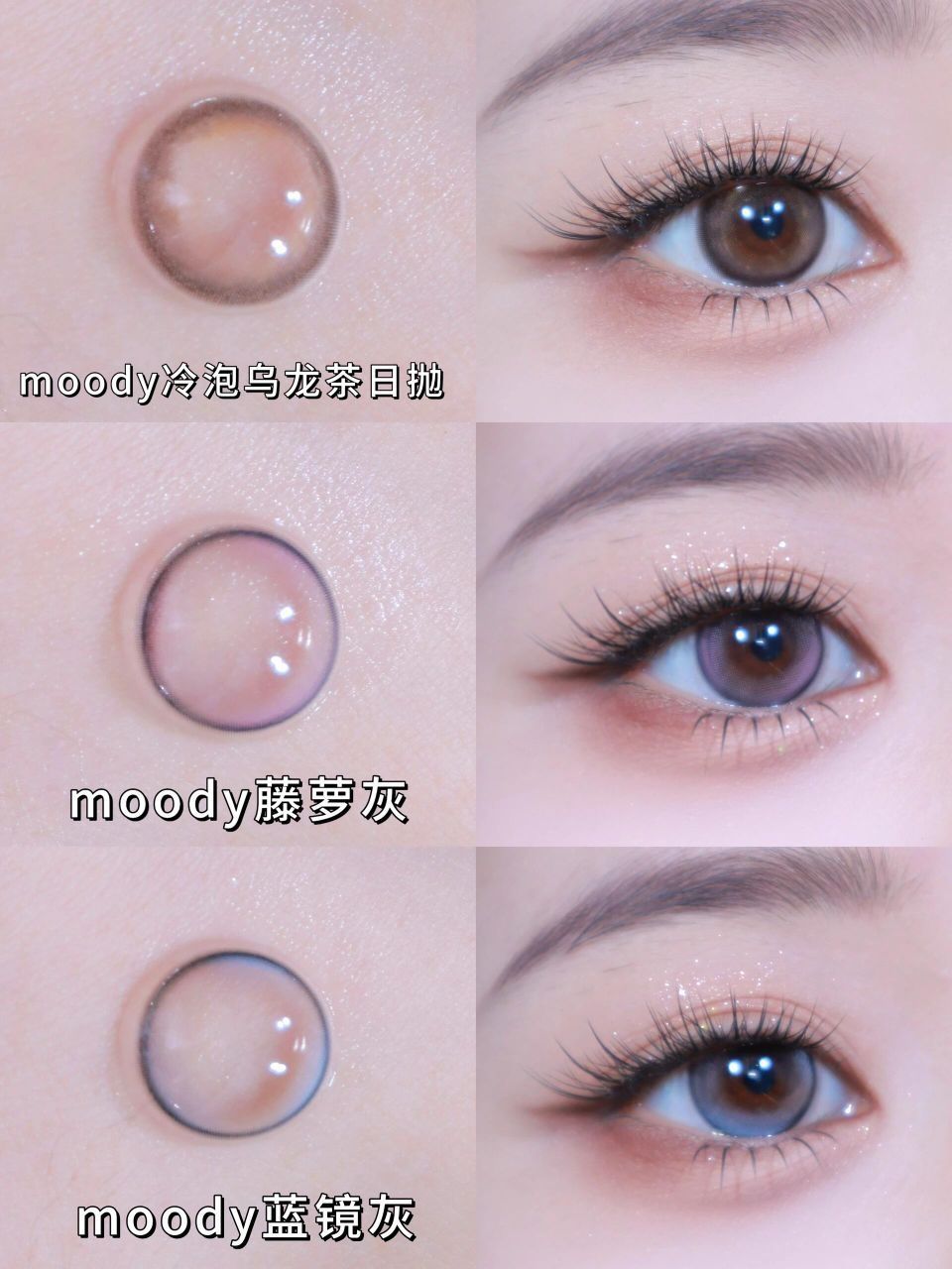 鞠姐这个眼妆太贵气了吧,浅浅来学一下!(ps:仿妆不仿人)用棕色打底,深棕色加深眼睑下至,再衔接眼尾!叠加香槟金珠光在眼中,眼线再微微上扬!整个眼妆清透又贵气! 因为我裸眼特别无神,这次三款高光眼🐷🐷用的是 moody蓝镜灰,柔和黑色锁边+低饱和蓝灰色水波高光,上眼有点布偶猫水光感眼睛的感觉,尊嘟好可爱啊~ moody冷泡乌龙茶日抛,冷调茶棕锁边+内圈漩涡状高光,亮眼又有扩瞳感!日常又上镜! mo...