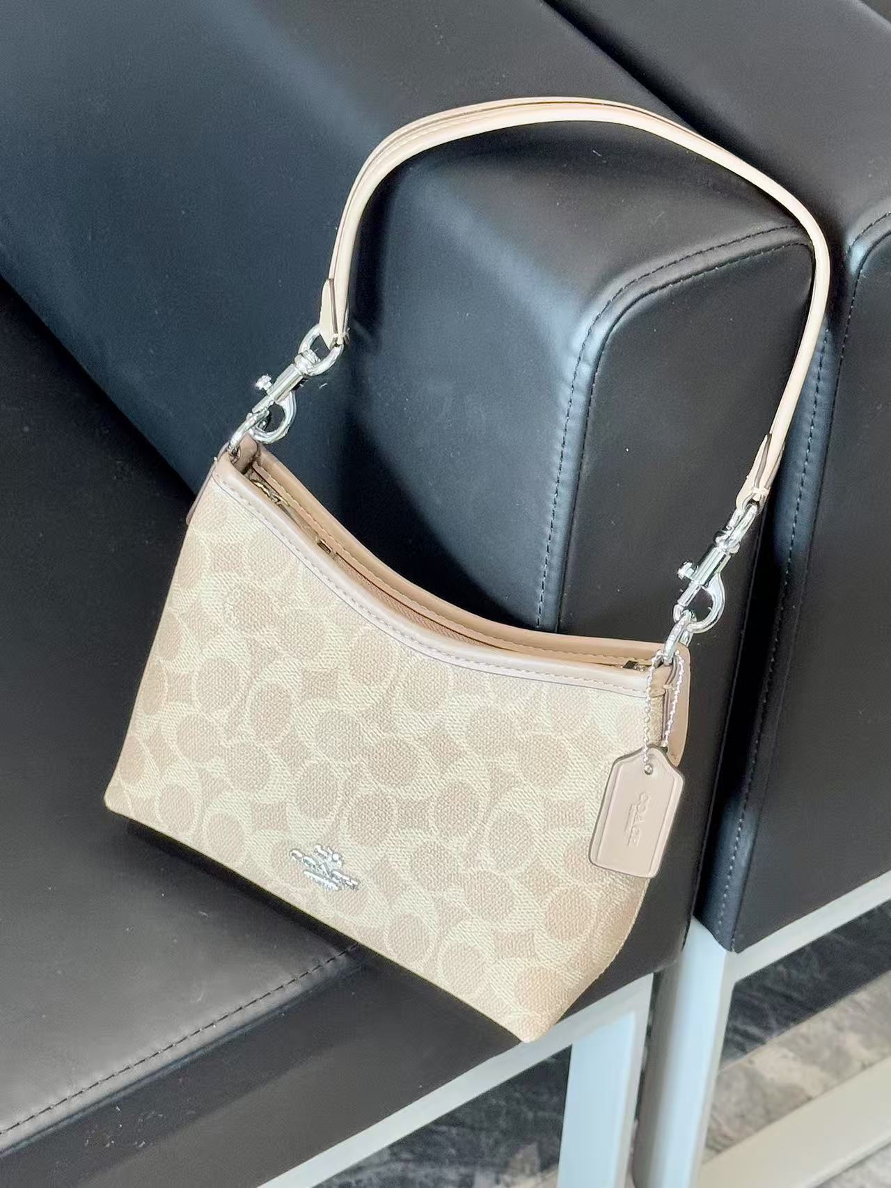 还在纠结日常该背什么包?Coach LAUREL 19小号包来解救选择困难症啦😎!它以帆布为基底,搭配闪耀银色金属硬件,碰撞出别样的时髦感,简约中透着高级。手提时,是优雅精致的OL范儿;挂上肩带斜挎,瞬间化身街头潮流达人,单肩背又尽显随性慵懒,多种背法无缝适配通勤、逛街、聚会等场合🎈。别看它身材小巧,内里空间合理规划,手机、粉饼、口红等小物都能妥善安置。