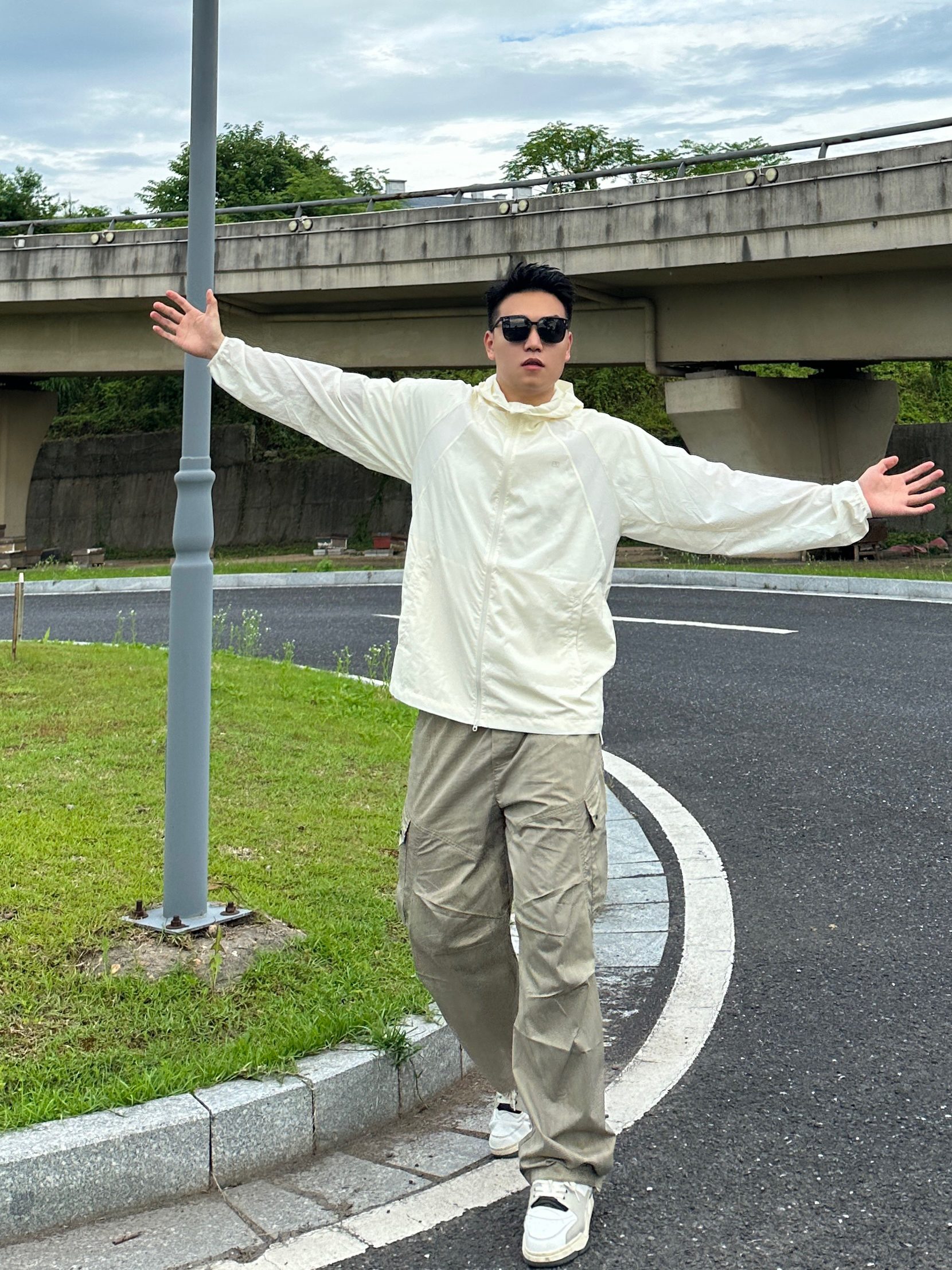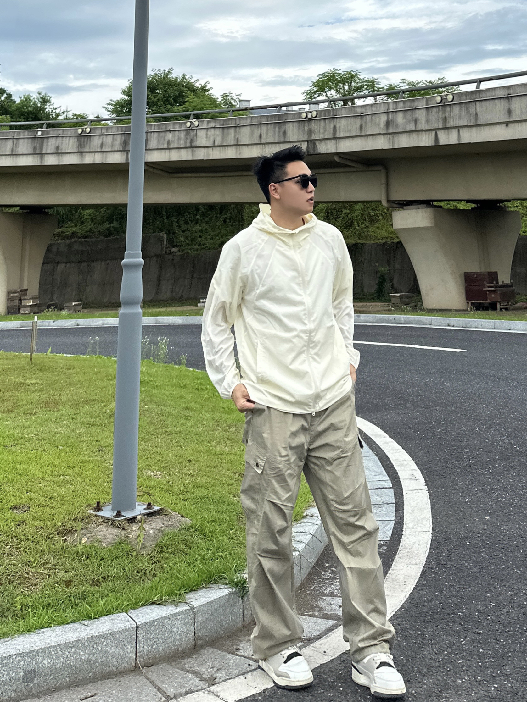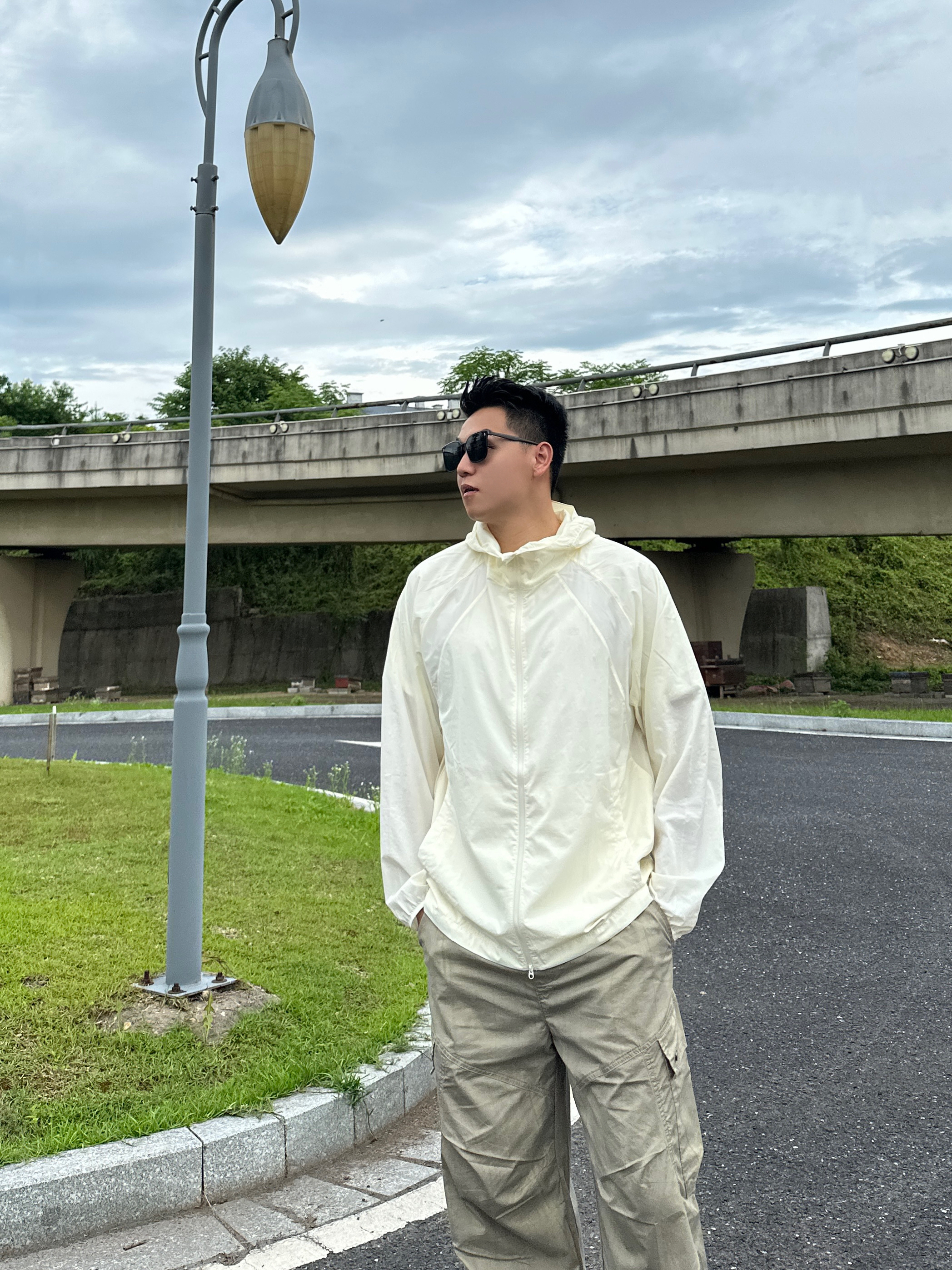 顶着大太阳出门 没有防晒衣是真的吃不消 这件蕉内Bananain凉感防晒衣就很不错 我选的米白色 清爽干净又时尚 专业的UPF100+防晒 夏天出门更安心 面料轻薄透气还带有凉感 舒适度百分百 出门一件防晒衣 夏天基本晒不黑 不穿的时候往包里塞 轻便不占空间 男生也要好好爱自己的皮肤 搭配卡其色工装裤 户外休闲帅的很轻松