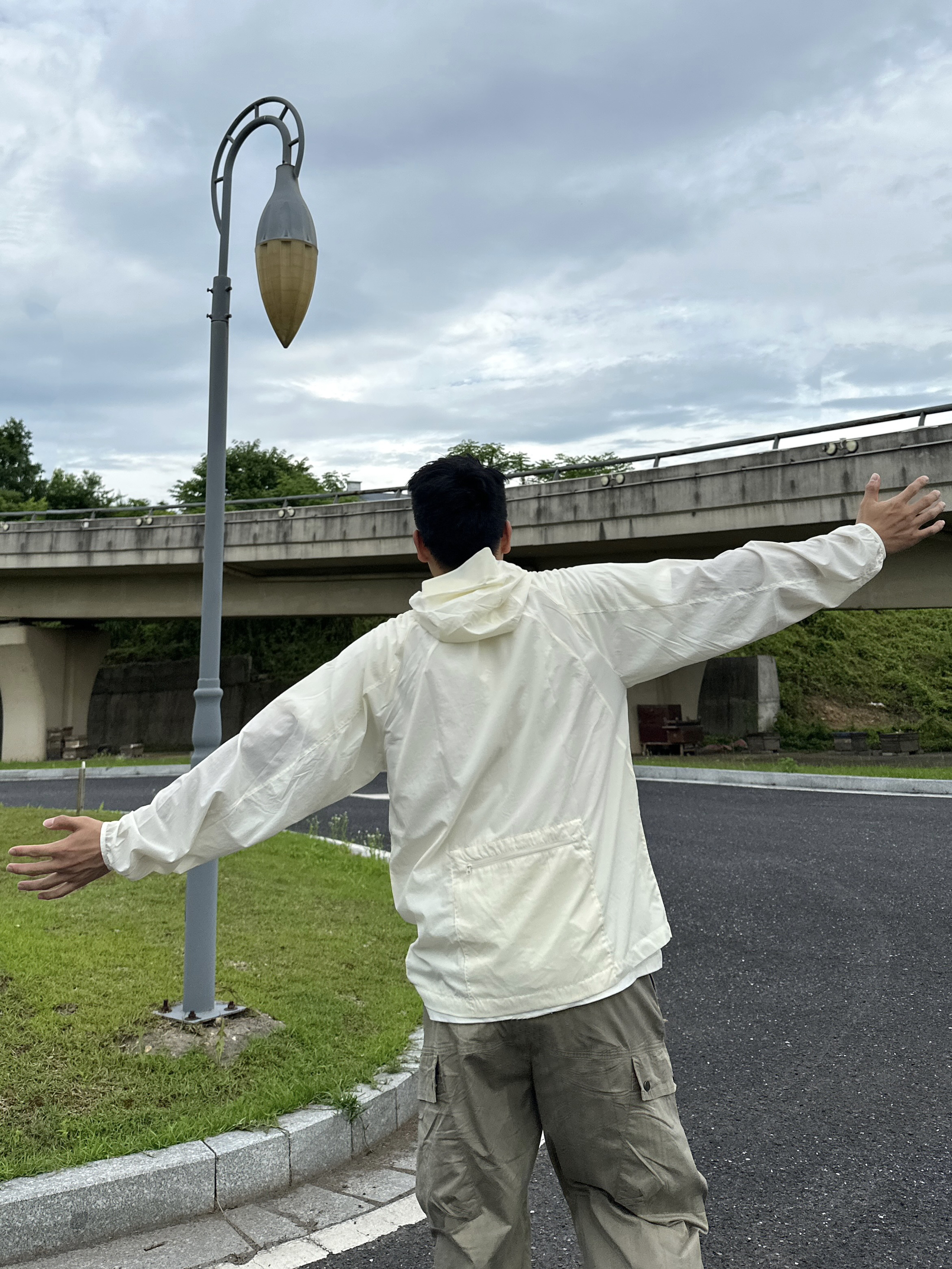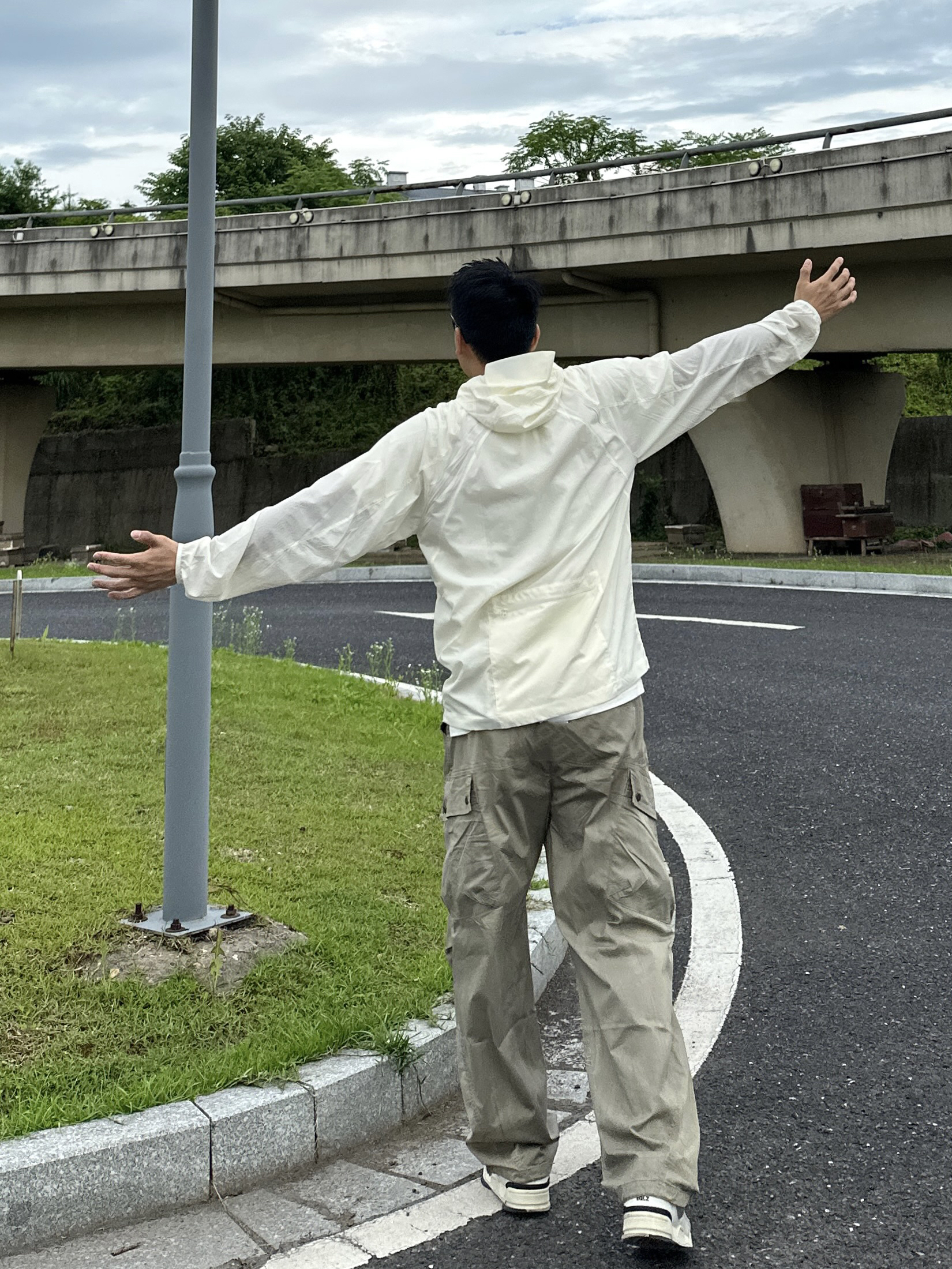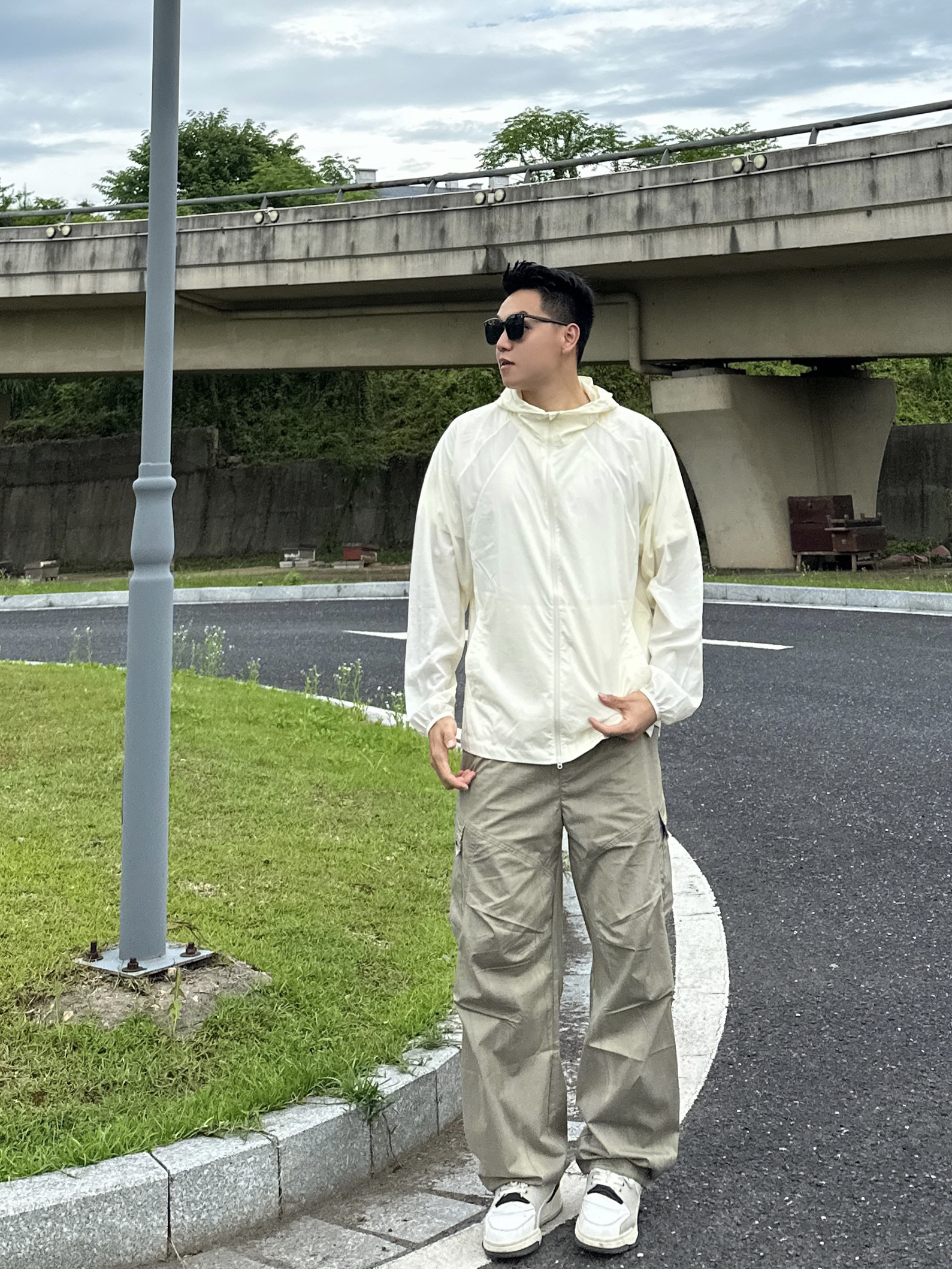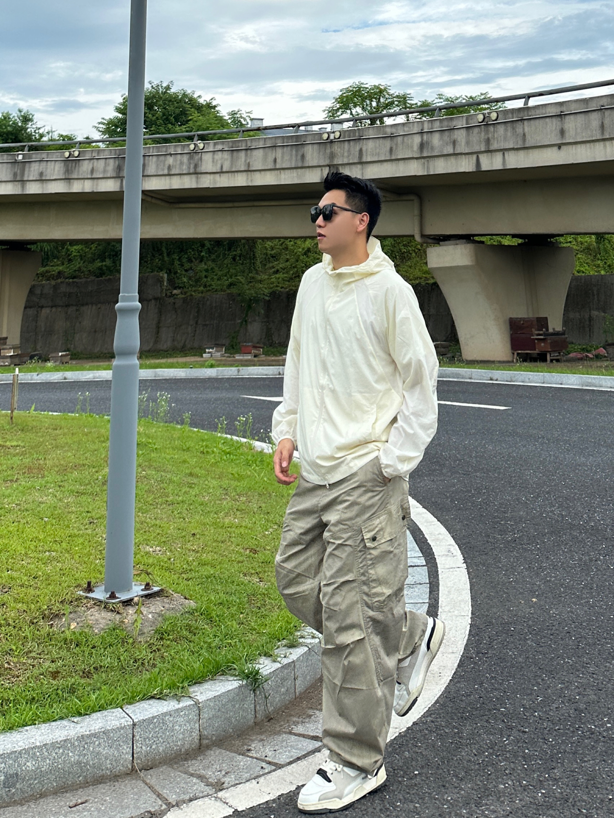 顶着大太阳出门 没有防晒衣是真的吃不消 这件蕉内Bananain凉感防晒衣就很不错 我选的米白色 清爽干净又时尚 专业的UPF100+防晒 夏天出门更安心 面料轻薄透气还带有凉感 舒适度百分百 出门一件防晒衣 夏天基本晒不黑 不穿的时候往包里塞 轻便不占空间 男生也要好好爱自己的皮肤 搭配卡其色工装裤 户外休闲帅的很轻松