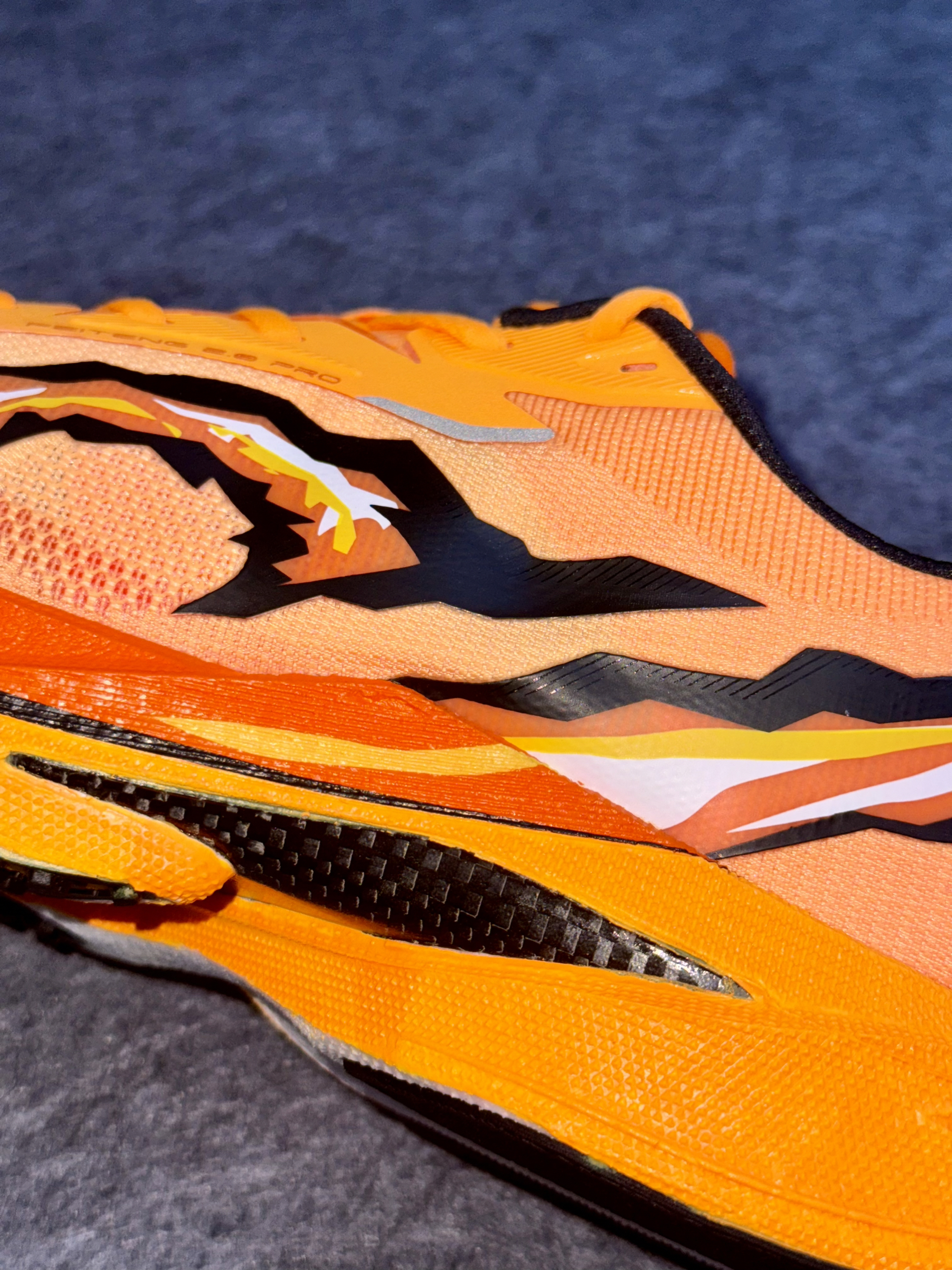目前已经实战一个星期了 另一个配色也太帅了忍不住还是得发出来 现在做素质还是弯道起跑都喜欢穿这玩意 前掌太稳了 抓地力也是嘎嘎咬住跑道 上翻的大碳板感觉对稳定性确实有加成 滚动感确实一般 但是蹬伸感受非常非常不错 穿就完了哥们