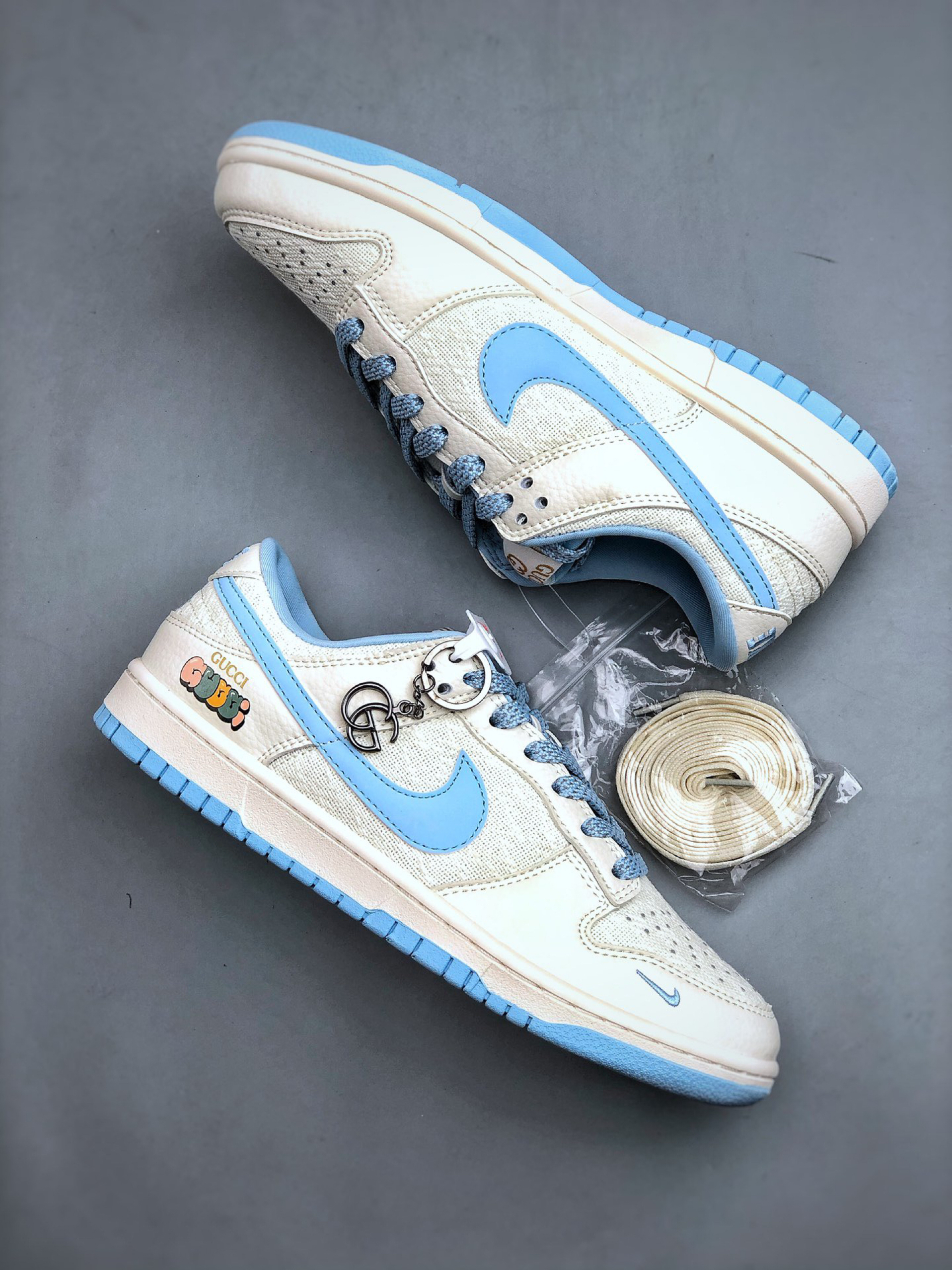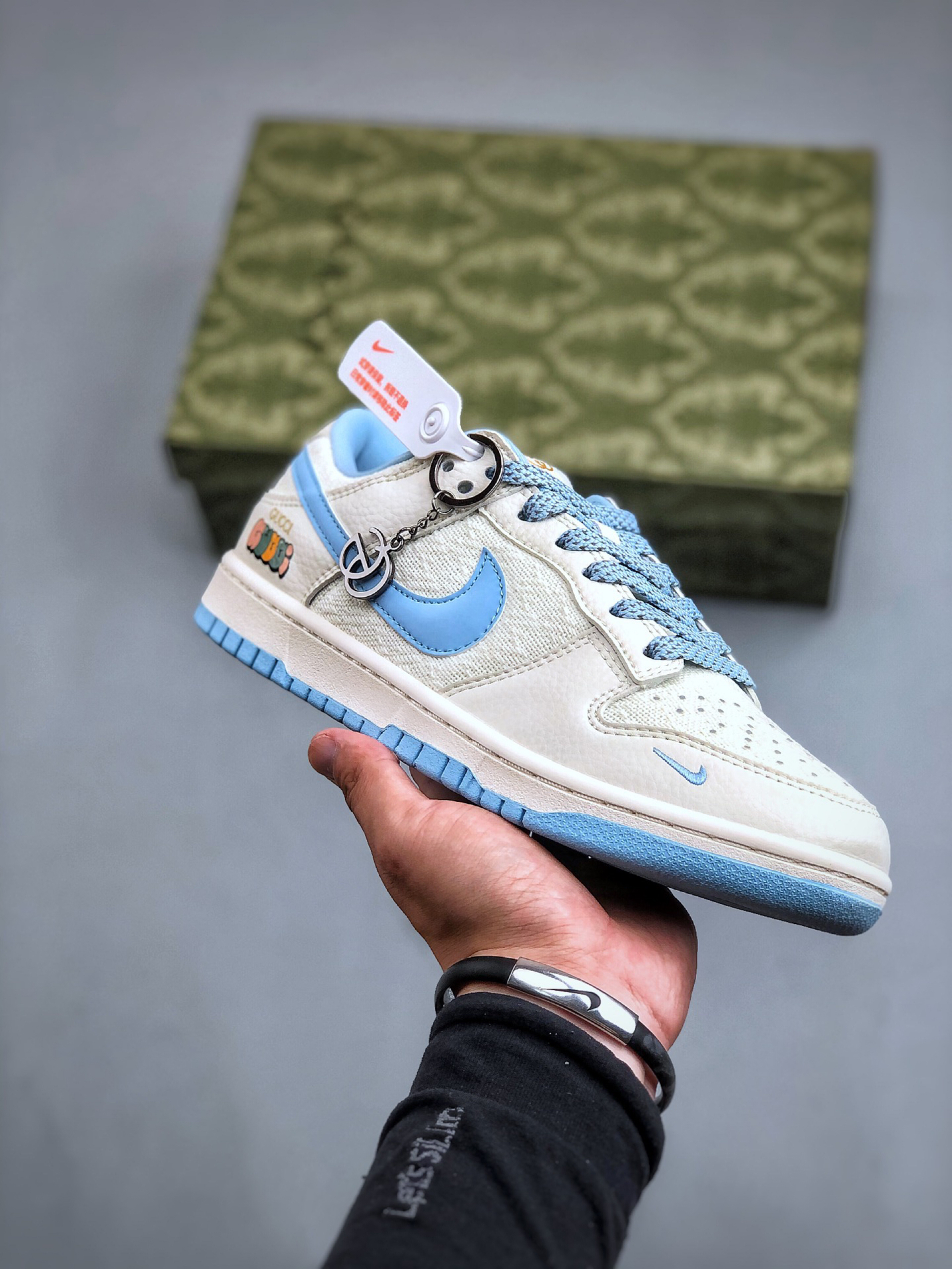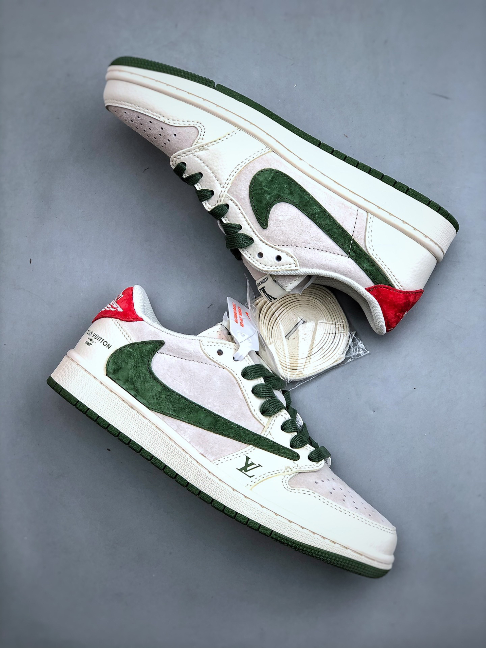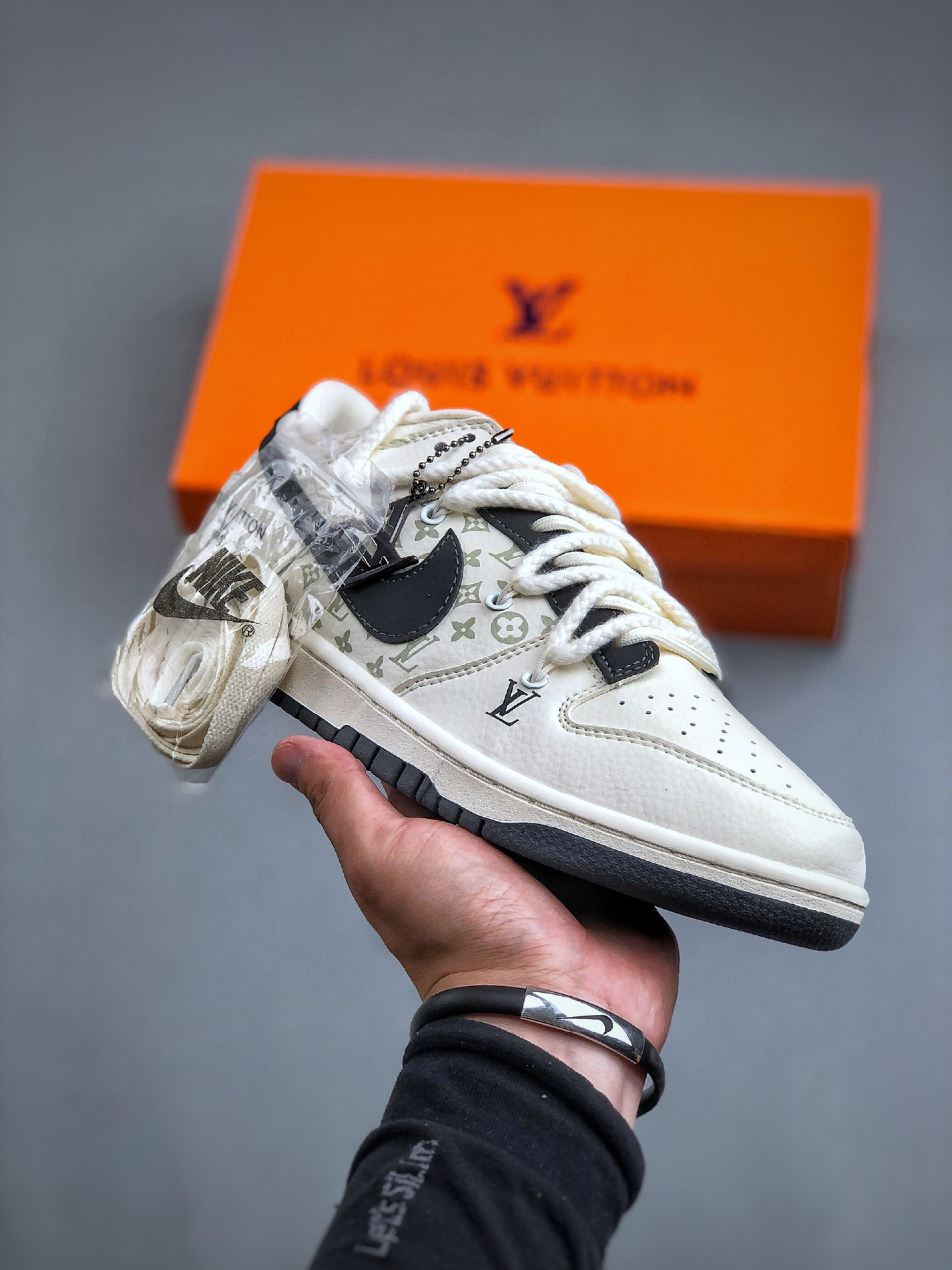 这是路易威登(Louis Vuitton)与耐克 Dunk Low 联名的定制款球鞋👇 外观✨ 四双都融合 LV 经典元素与 Dunk 鞋型,风格超独特~左上黑白老花拼接,LV 标志性 Monogram 图案+金属饰件,高级又街头;右上灰绿撞色,翻毛皮+植绒 Swoosh,复古质感拉满;左下满印老花+做旧细节,潮流玩家一眼爱;右下白蓝清新配色,搭配 LV 挂饰,清爽又有辨识度,夏日不管配短裤、...