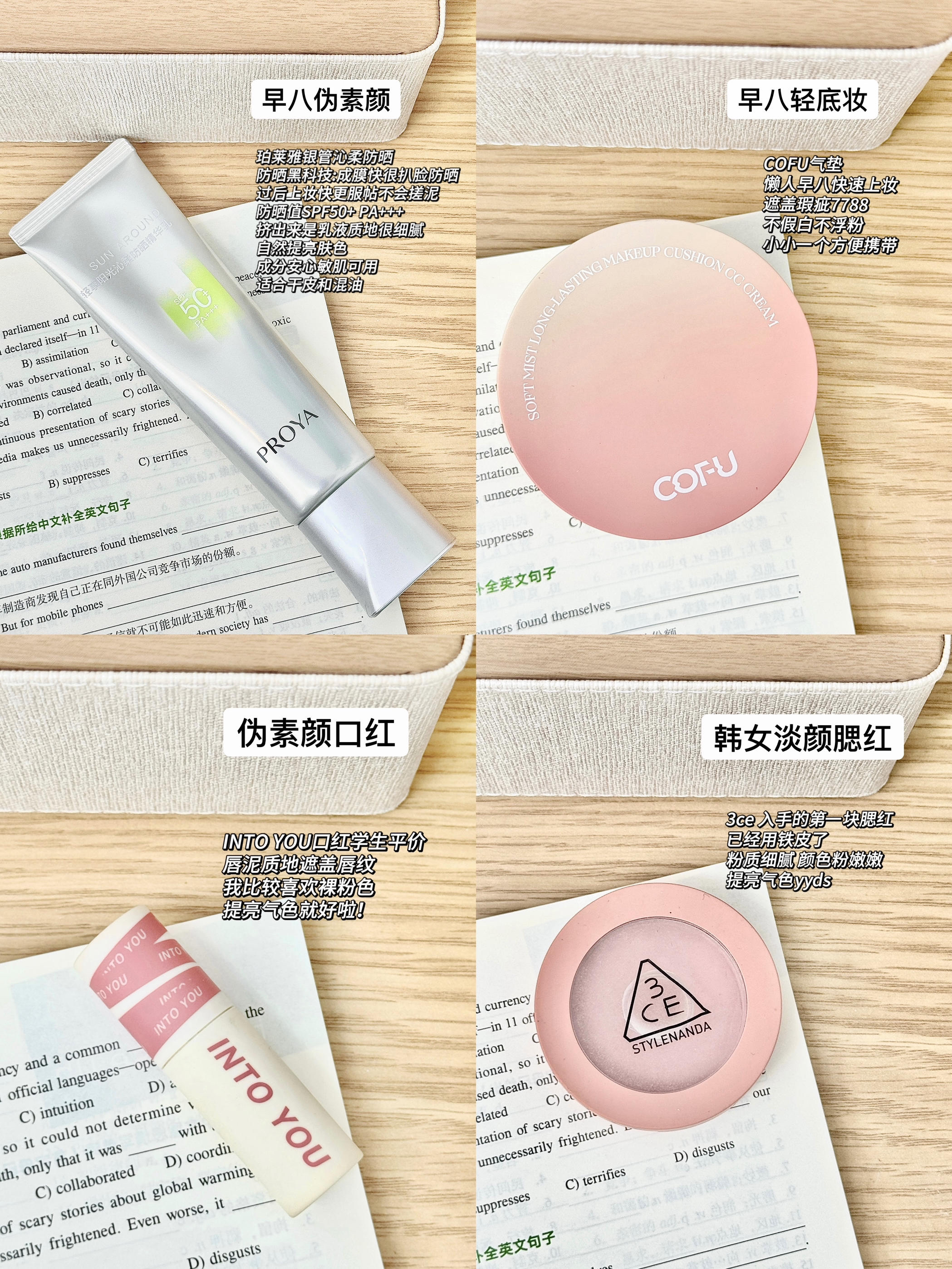 1️⃣植村秀粉底液 2️⃣方里粉饼 3️⃣canmake眼影 4️⃣唯姿修容提亮一体盘 5️⃣3ce mono pink