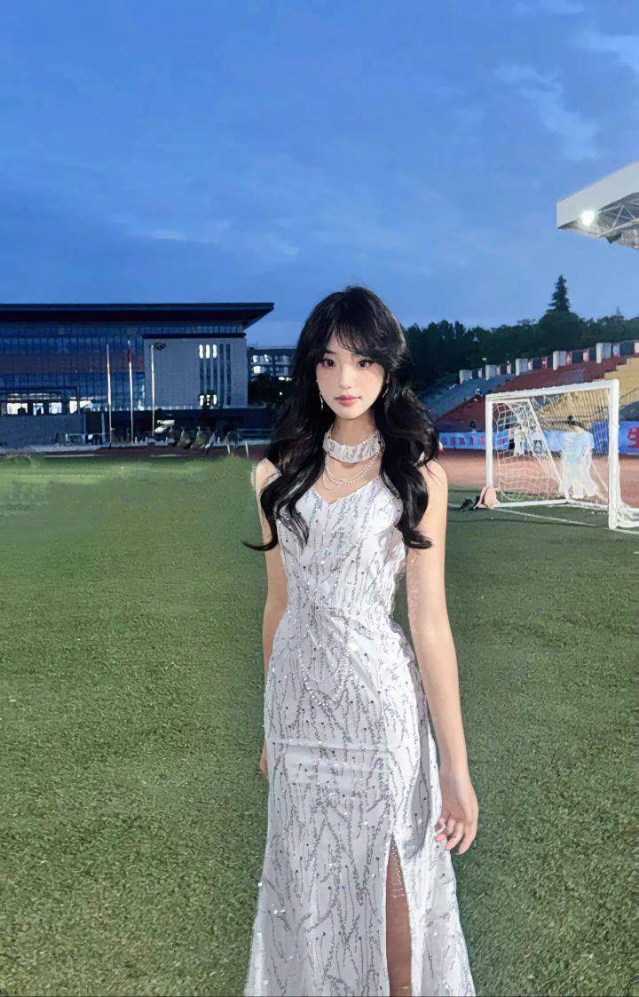 校园晚礼服穿搭|把星光穿在身上 被问爆的校园晚会战裙✨ 银色亮片长裙,吊带+开衩设计 在操场夜色里,像流动的银河 珍珠颈链点缀,氛围感拉满 毕业晚会、活动穿,全场C位预定 这套把星光焊死,美到开挂啦💕 #晚礼服 #校园穿搭 #星光裙 #毕业季