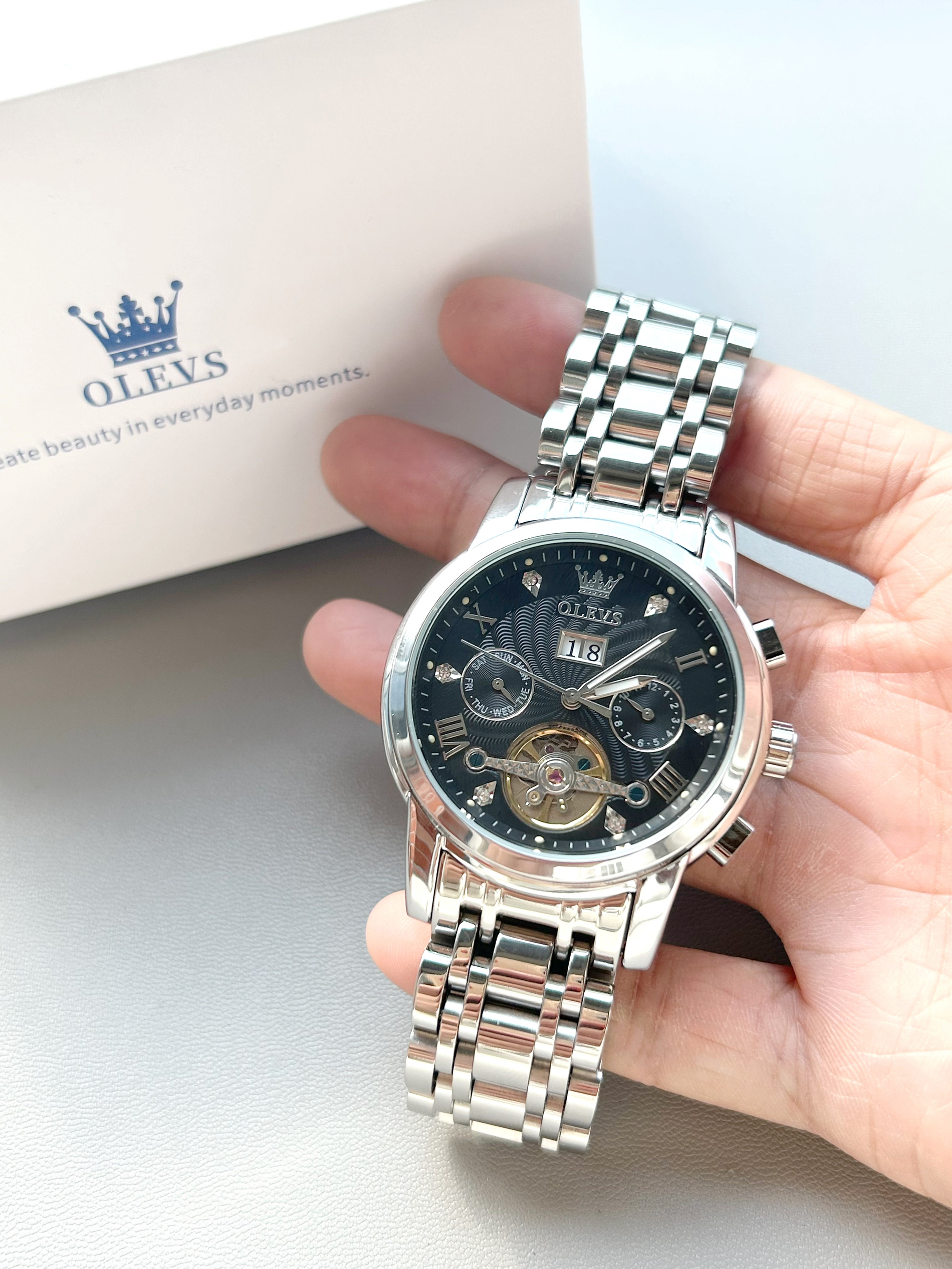 第一次戴出门就被追问链接!这只雷诺骑士表的镂空表盘太绝了,机械齿轮像精密艺术品在腕间转动,夜光指针夜里发光时帅到窒息~自动上链机芯戴了两周误差不超过 10 秒,不锈钢表带磨砂质感超抗造,上周爬山刮到石头居然没留痕。50 米防水戴着洗手完全 OK,表冠旋紧时的阻尼感超解压。唯一槽点是表盘稍厚,穿薄衬衫会有点硌,但这炫酷镂空设计,搭配工装风直接封神,潮男出街戴它回头率 200%! 图源网络侵删