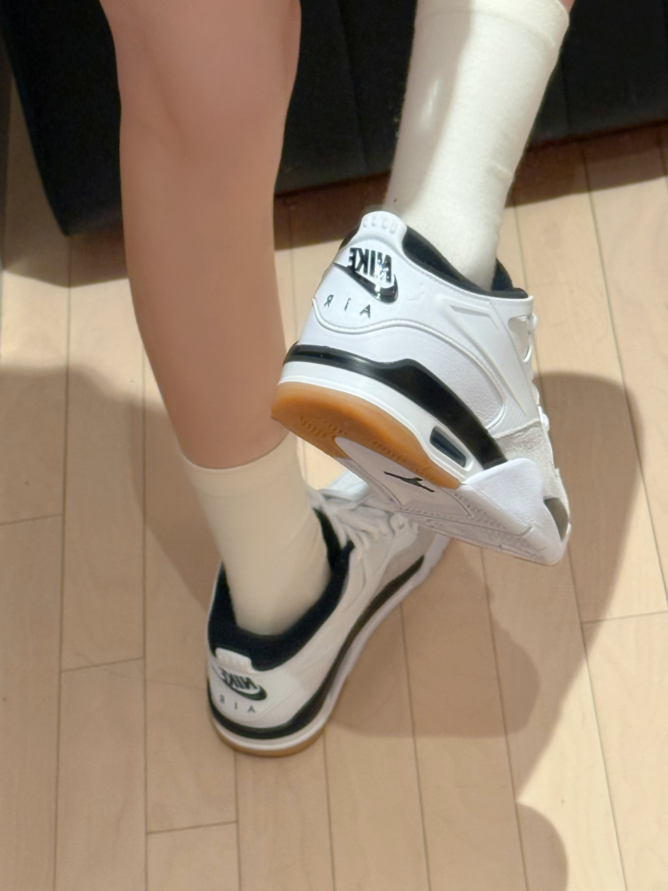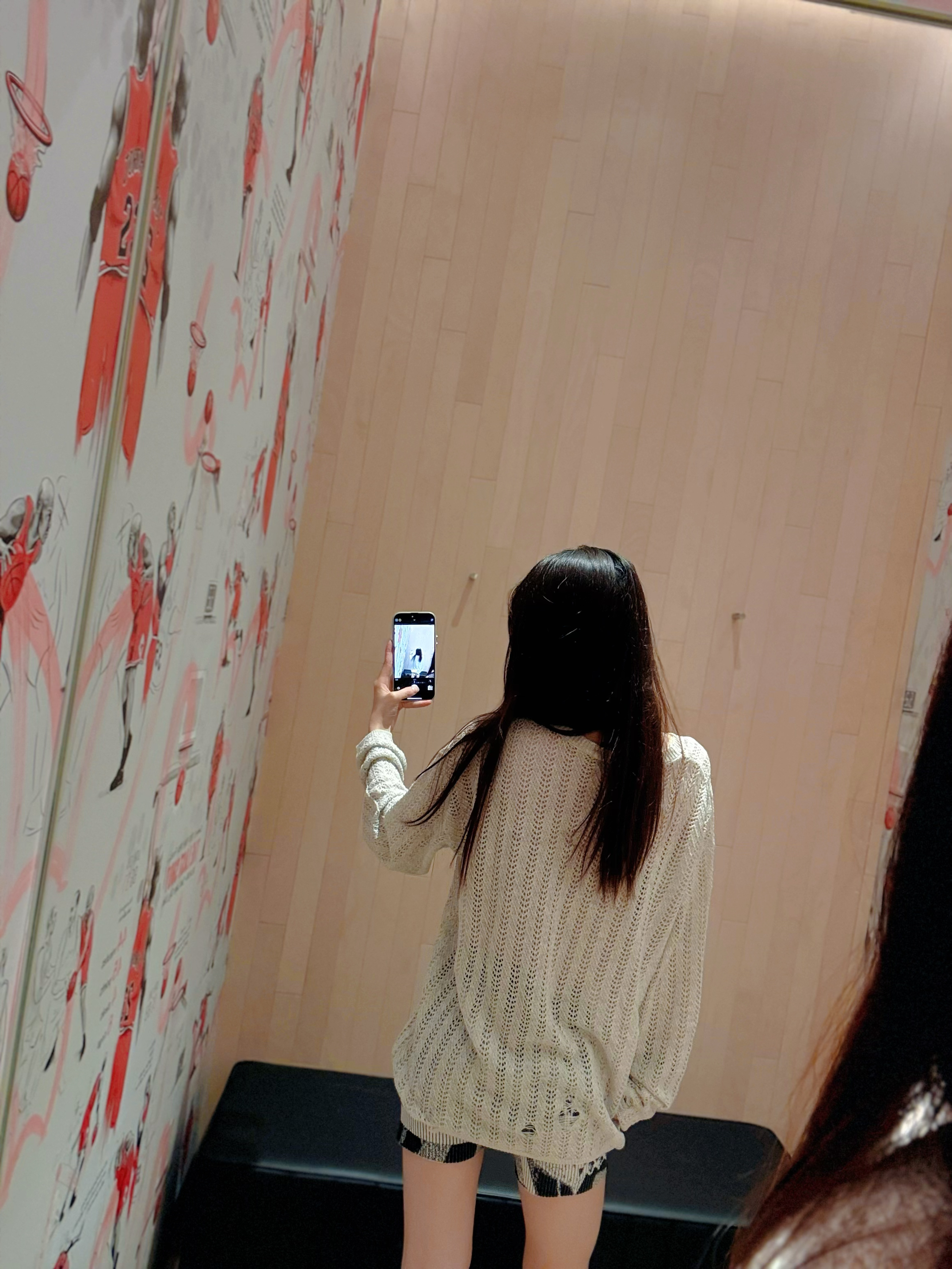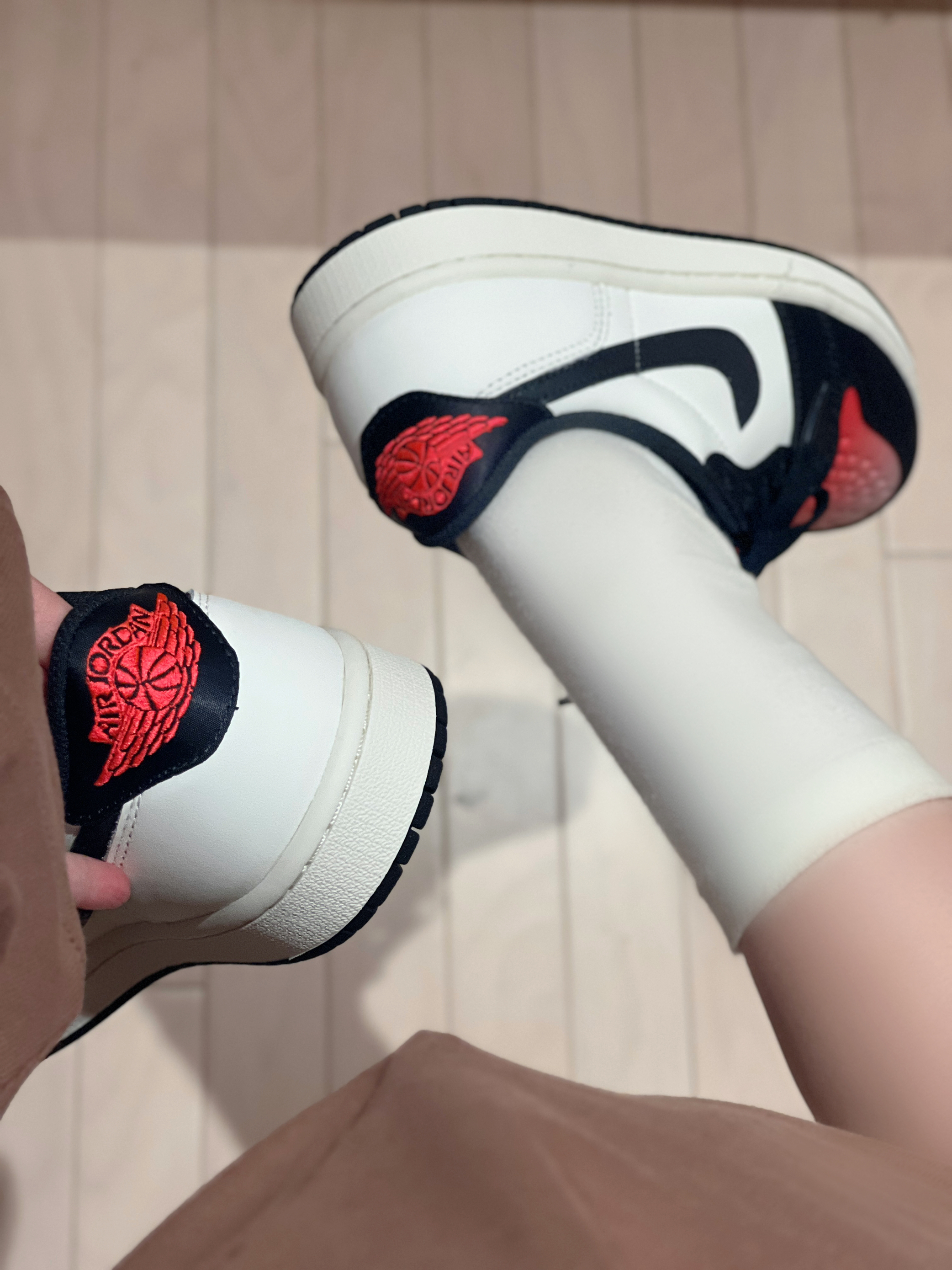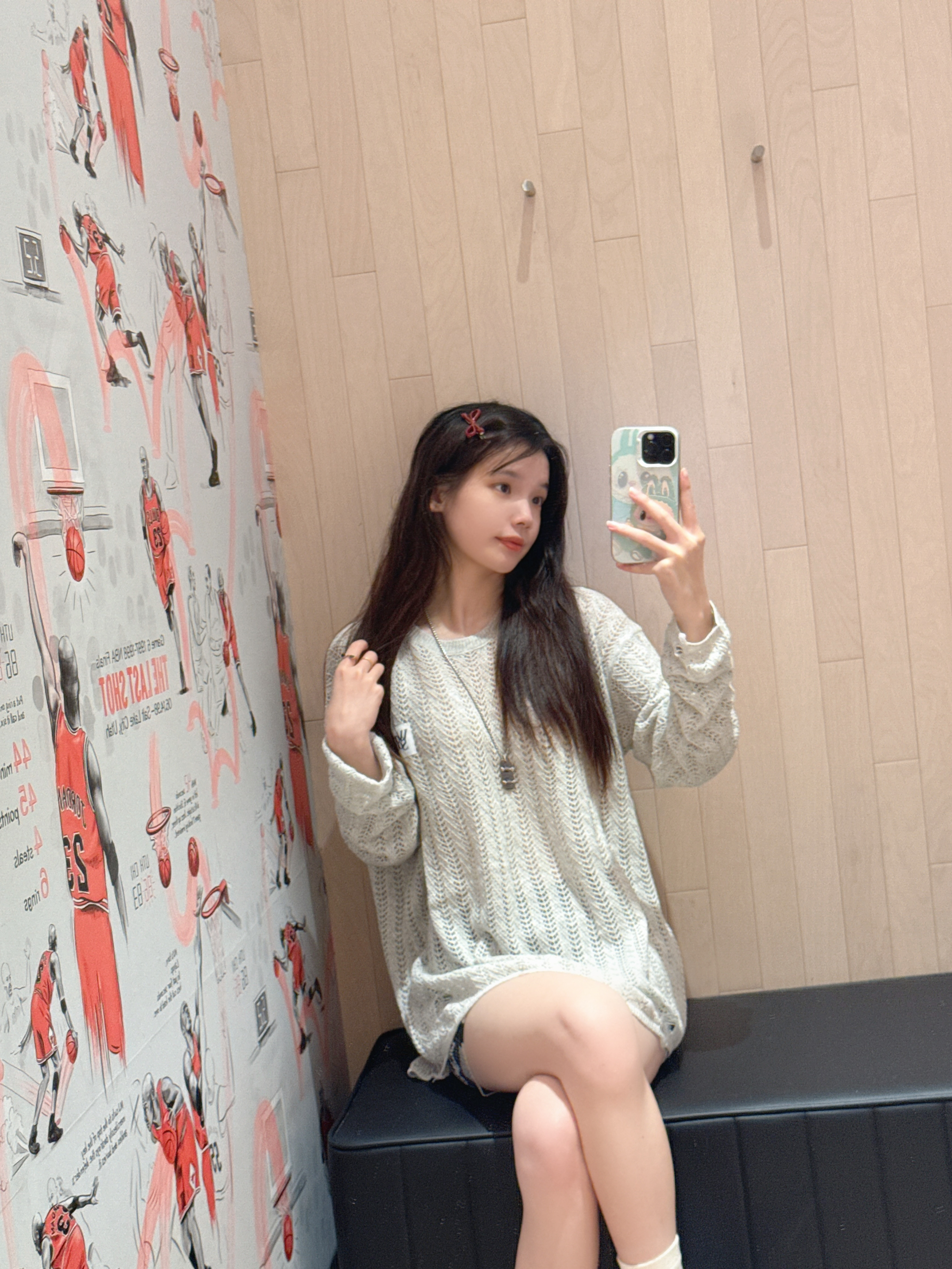 今日穿搭米灰色上衣➕短裤 👚是 WORKSOUT 🏠滴! 做了镂空🧶针织衫上身很舒适 日常当防晒衣也很不错😌 搭配裙子或者休闲裤都👌呢! 👧166/43kg M码 👟是AJ4RM的新配色黑白配 日常百搭神器!