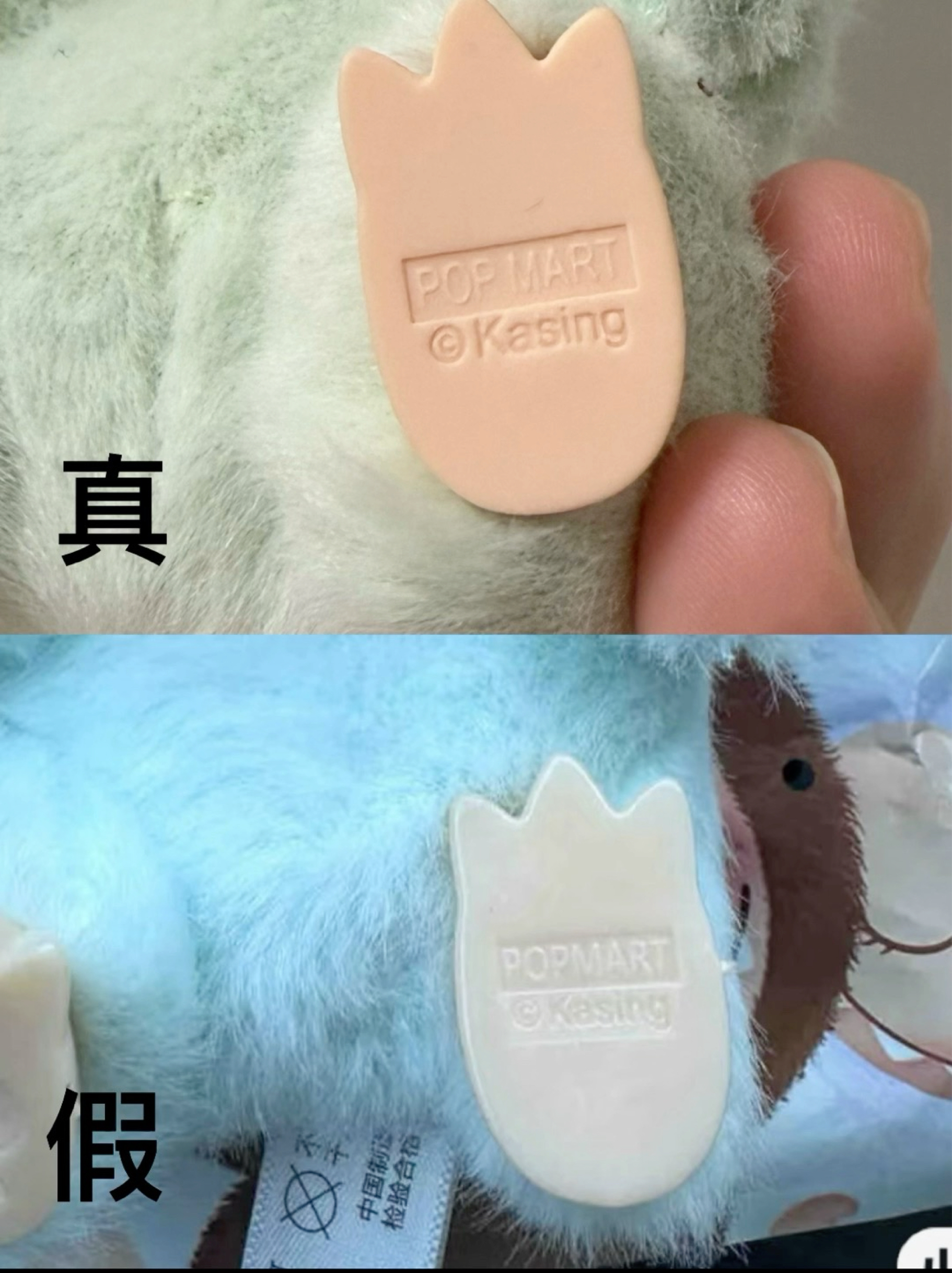 三个小技巧教你识破真假 Labubu! 最近在某潮玩直播间一冲动下单了一个 Labubu,结果拿到手一对比,发现跟朋友在官方门店买的完全不是一个水平……妥妥的祖国版踩坑现场。给大家整理了几点辨别小妙招,图文对比也拍好啦,赶紧收藏! 1. 外观特征比一比 正品 Labubu 的小脸蛋是又圆又饱满,腮红颜色也更鲜亮,看起来特别讨喜; 而祖国版的额头显得特别长,比例明显不对劲,一眼就能看出“哪里不太对”...