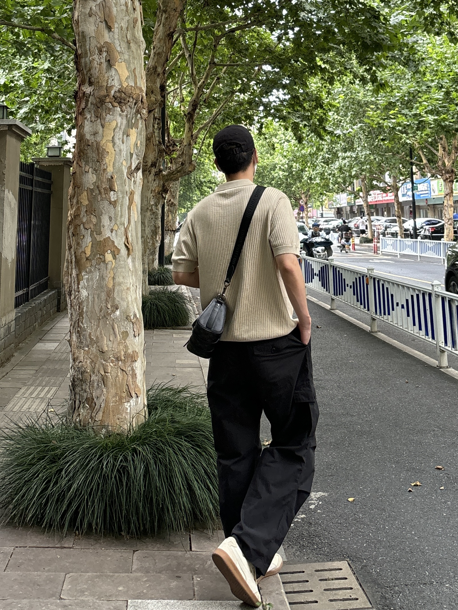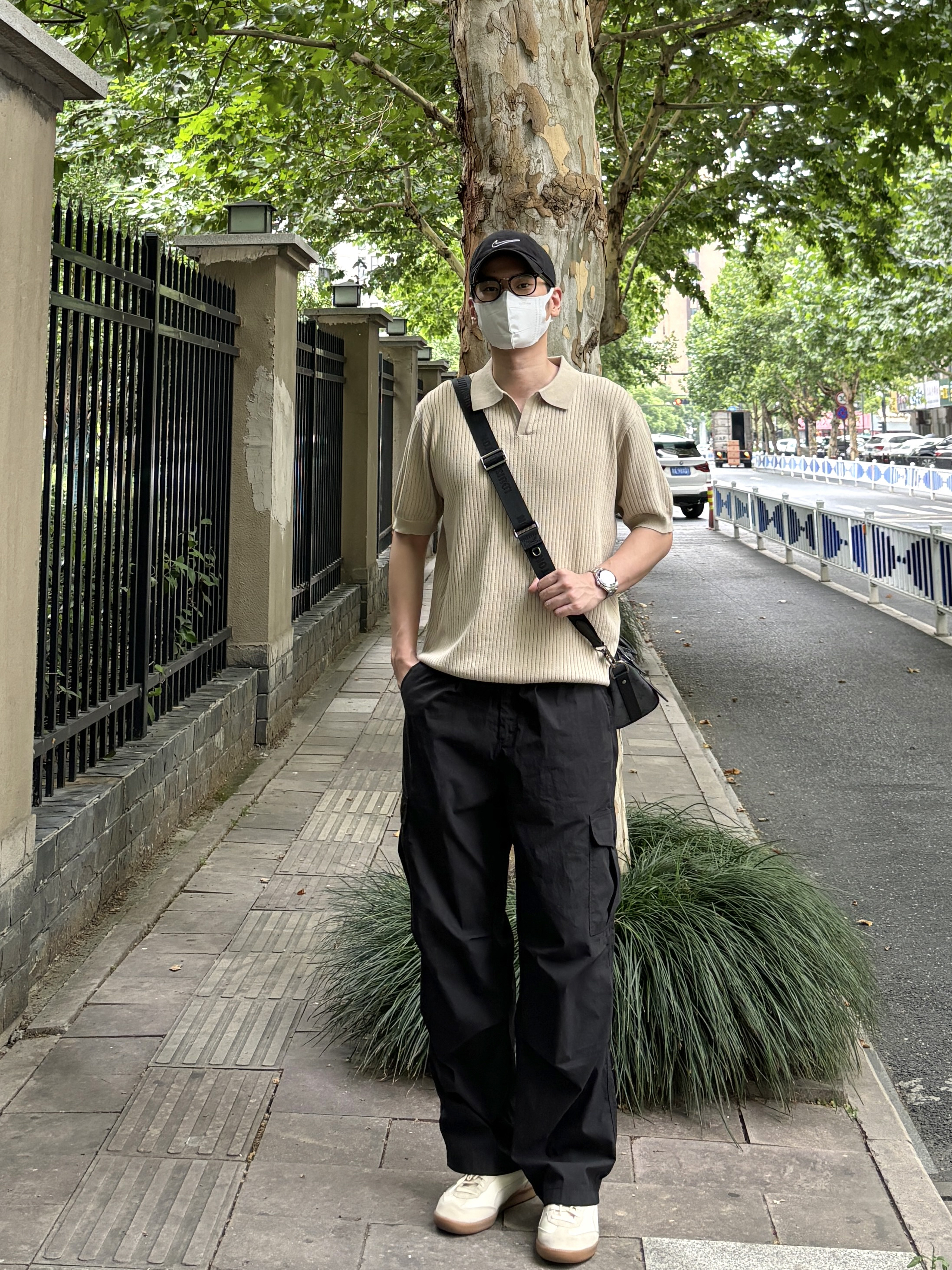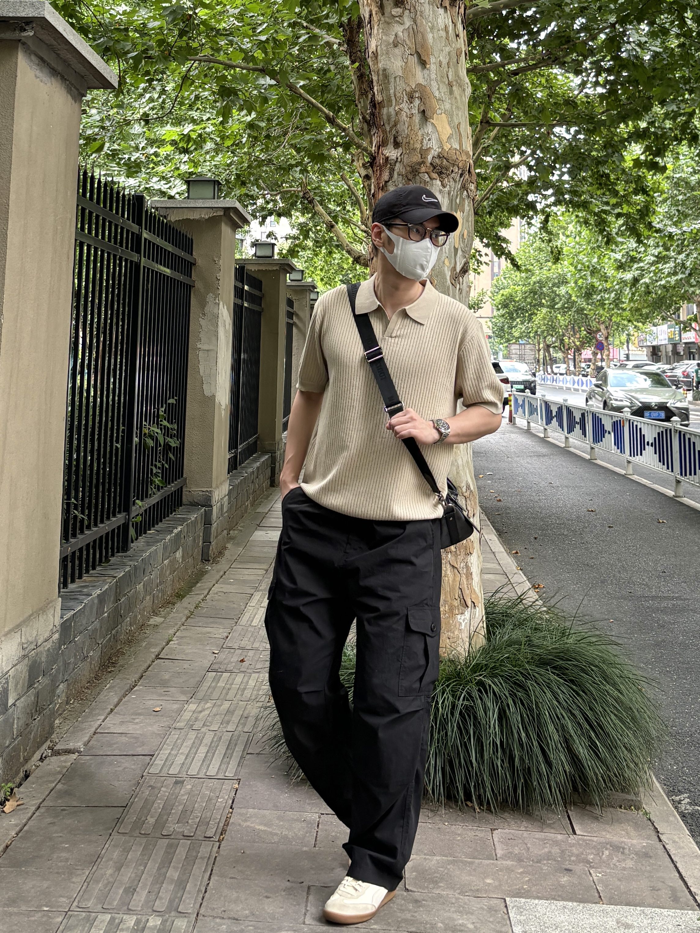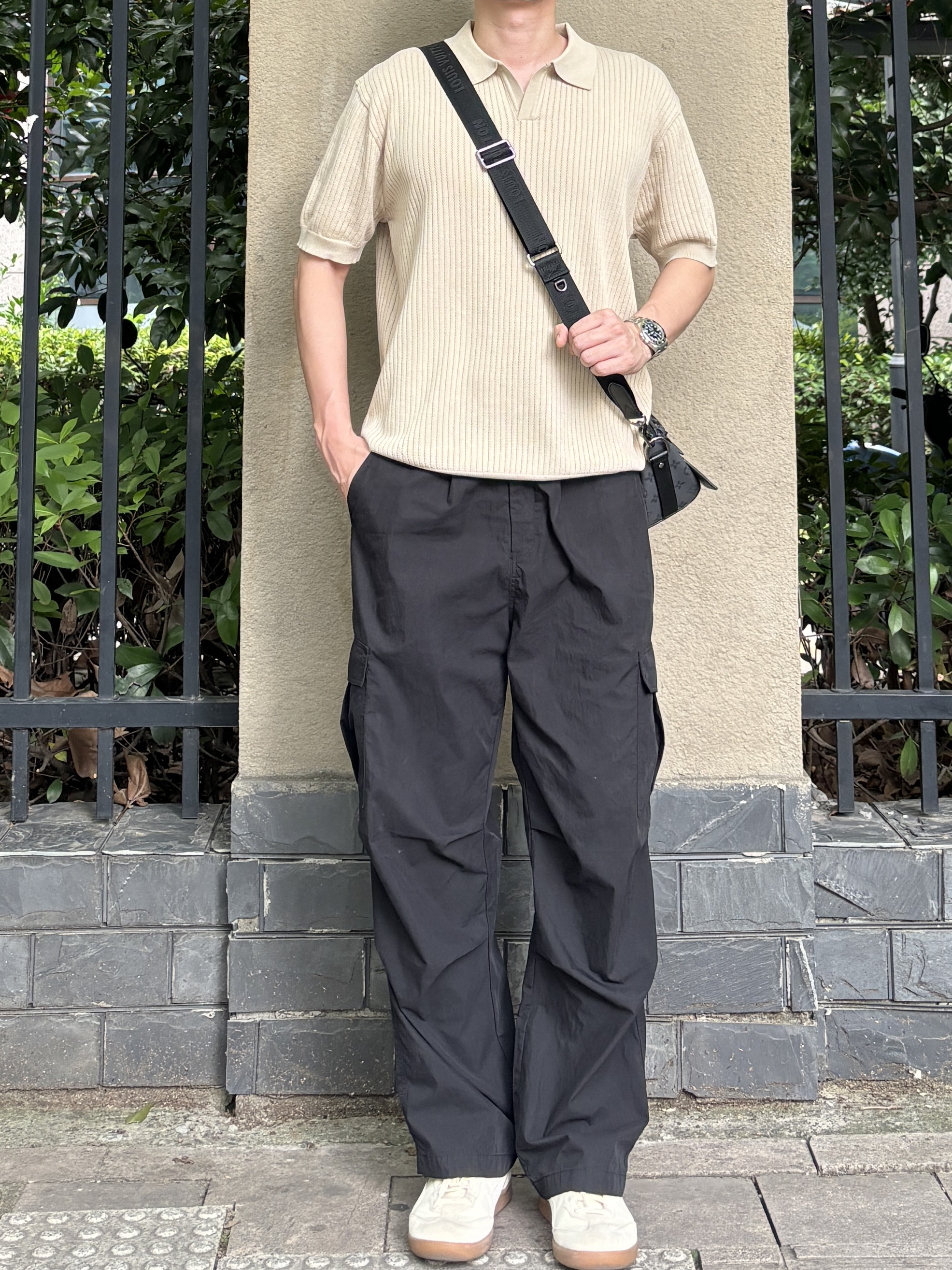 今天这套上衣穿了一件高级感十足的杏色宽松阔版海鸥领针织短袖 ⬇️ 裤子选择简约大方的黑色直筒冰丝速干多口袋薄款工装裤 ⬇️ 鞋子上脚经典百搭的米白色puma德训鞋 ⬇️ 最后背一个精致的皮质斜挎包点缀下整体穿搭 - 今日搭配 衣服裤子:NICE LILI 鞋子:puma liga