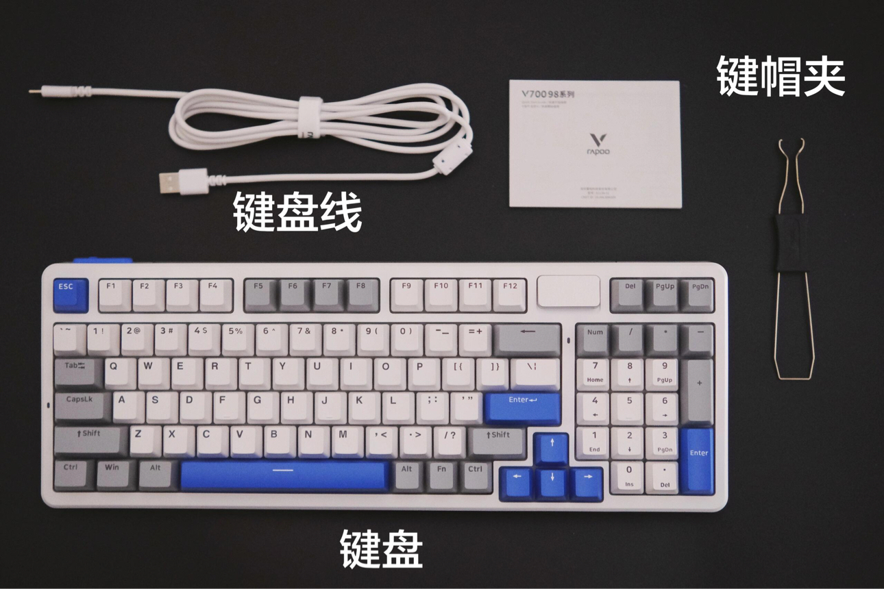 本篇笔记关联了Rapoo/雷柏 V700DIY-98 三模 机械键盘 97键 七层消音填充 PBT键帽 白蓝等商品,为用户提供真实的使用体验和购买参考。
