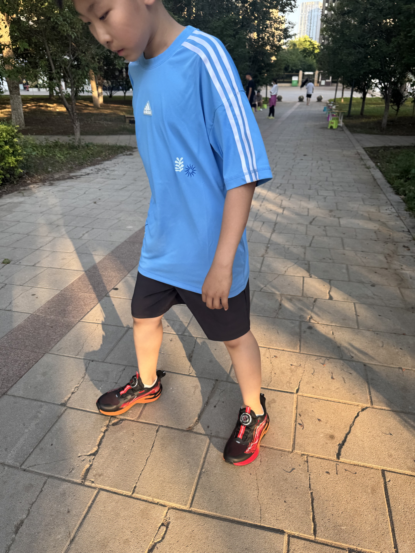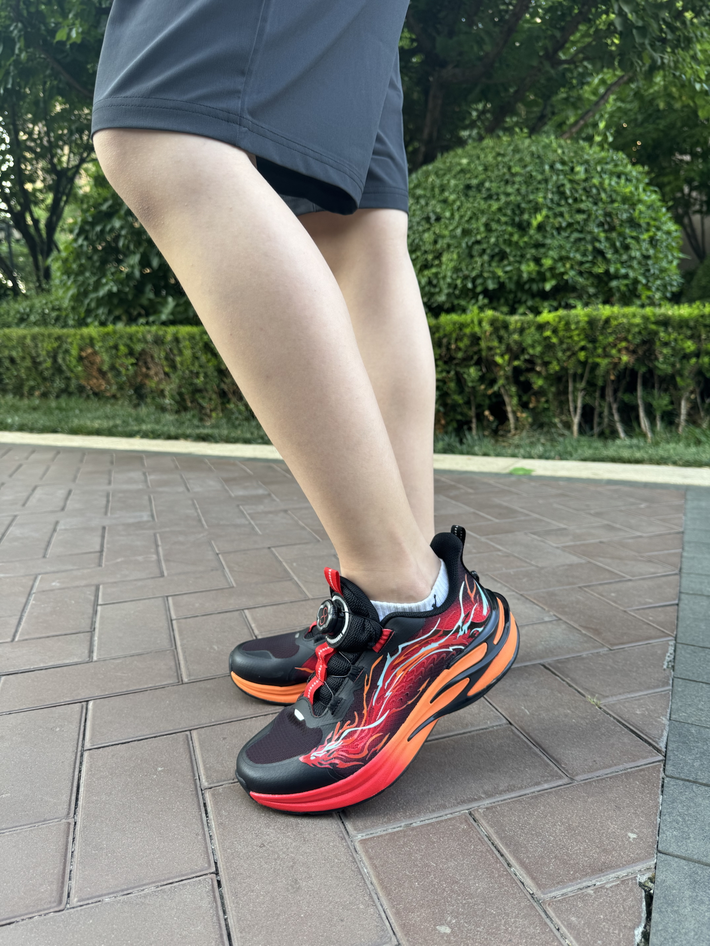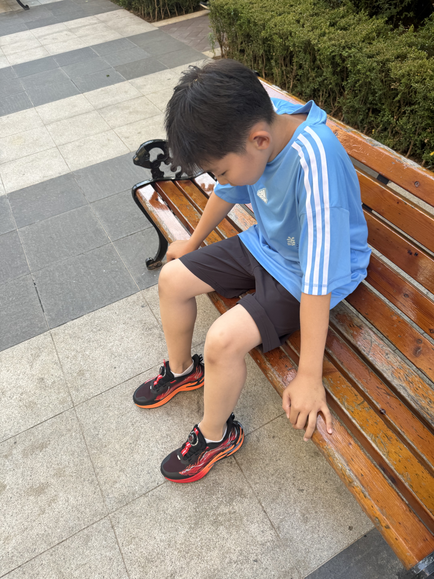 买了新鞋的快乐😃,可能只有小孩子才有,10岁正是疯跑淘气的年龄,踢球⚽️、跳墙、骑车、轮滑🛼、打篮球⛹️,没有他不干的。 今天新买的鞋,马上下楼要试试,自己欢快的不得了,看起来真的很轻盈,肥脚丫子也能穿,还不用系鞋带,一拧即穿,很适合现在的淘气包,颜色真的烈焰燃烧,面料不厚,薄薄一层,一年四季能穿到初秋没问题👌,看他开心样子,不只是好看喜欢,是穿着舒服了,孩子不装假,开心🥳快乐就是好。 #宝藏跑...