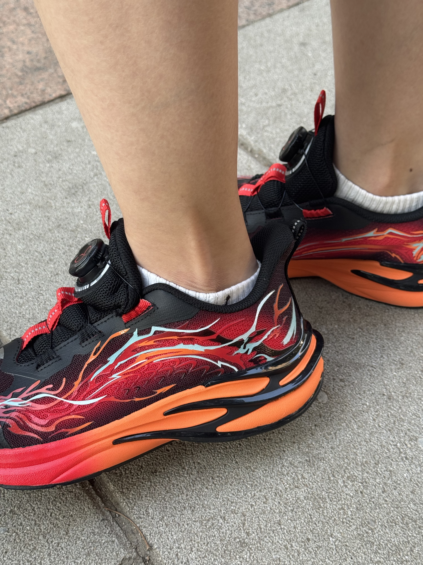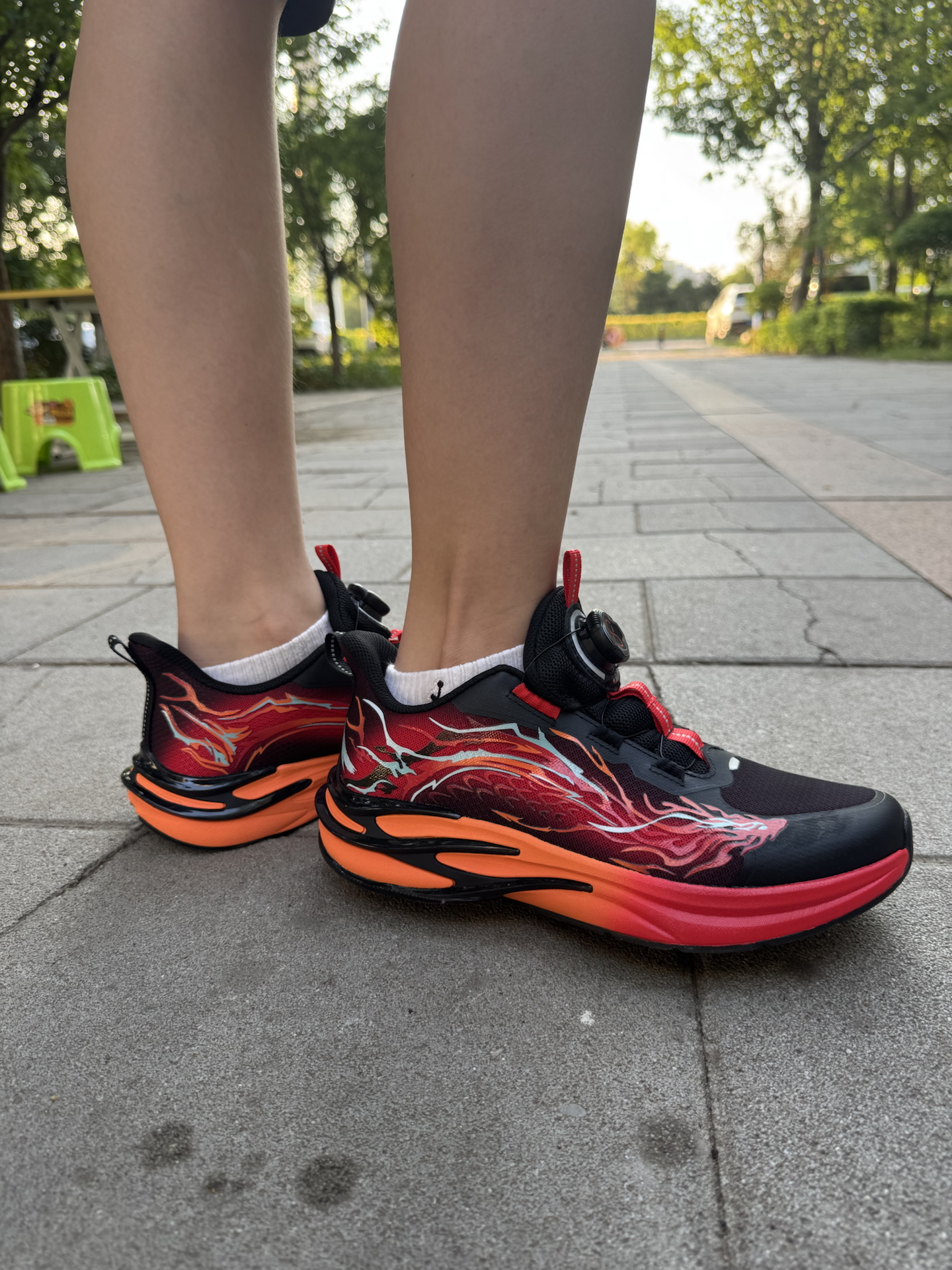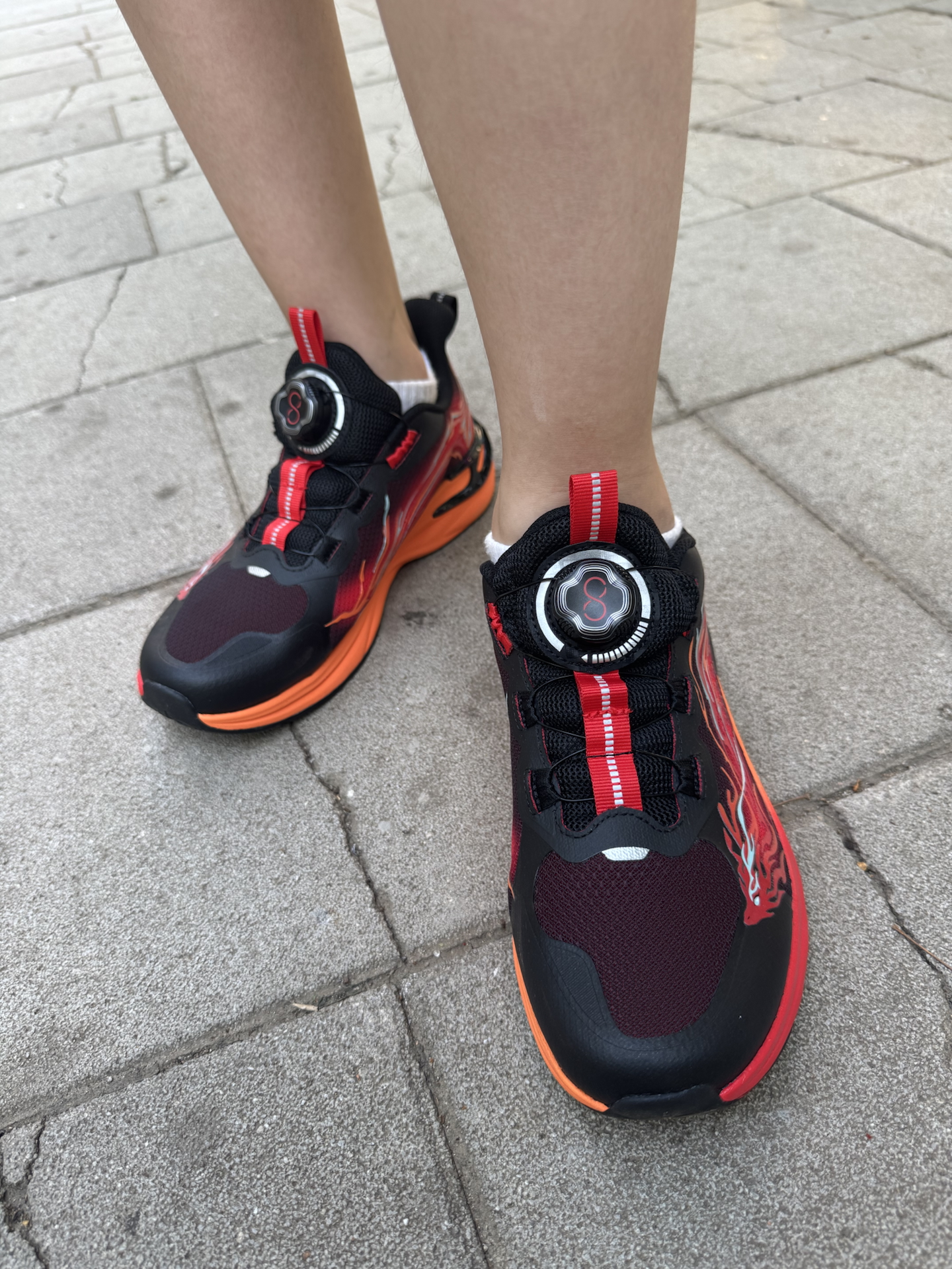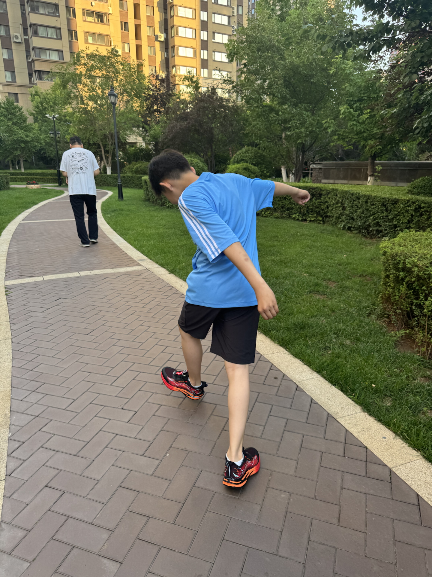 买了新鞋的快乐😃,可能只有小孩子才有,10岁正是疯跑淘气的年龄,踢球⚽️、跳墙、骑车、轮滑🛼、打篮球⛹️,没有他不干的。 今天新买的鞋,马上下楼要试试,自己欢快的不得了,看起来真的很轻盈,肥脚丫子也能穿,还不用系鞋带,一拧即穿,很适合现在的淘气包,颜色真的烈焰燃烧,面料不厚,薄薄一层,一年四季能穿到初秋没问题👌,看他开心样子,不只是好看喜欢,是穿着舒服了,孩子不装假,开心🥳快乐就是好。 #宝藏跑...