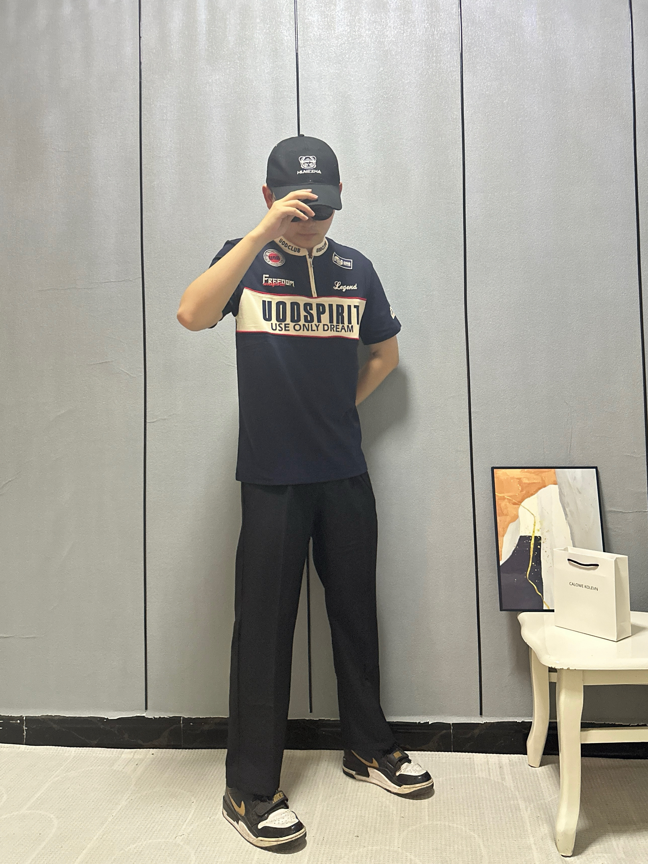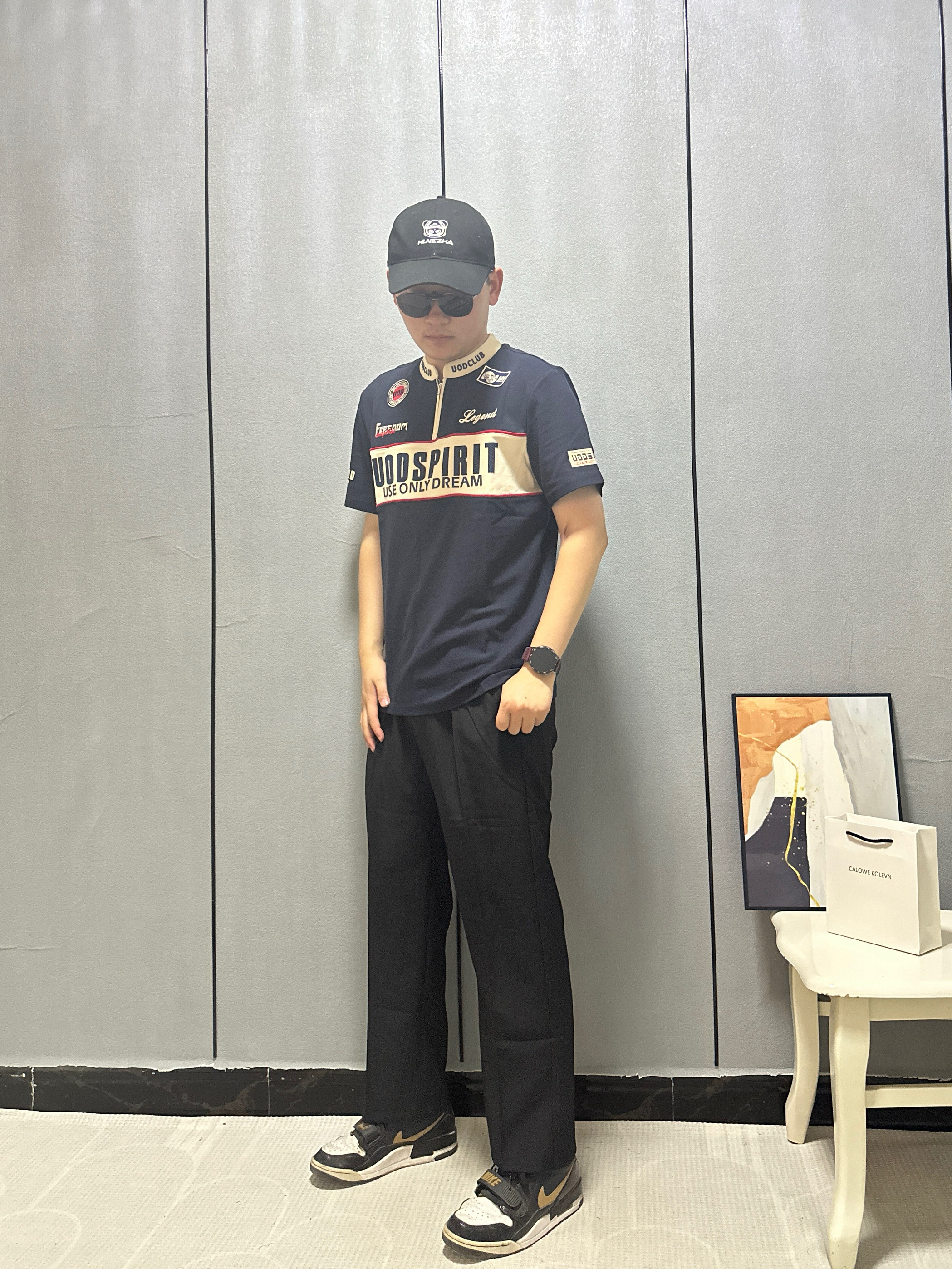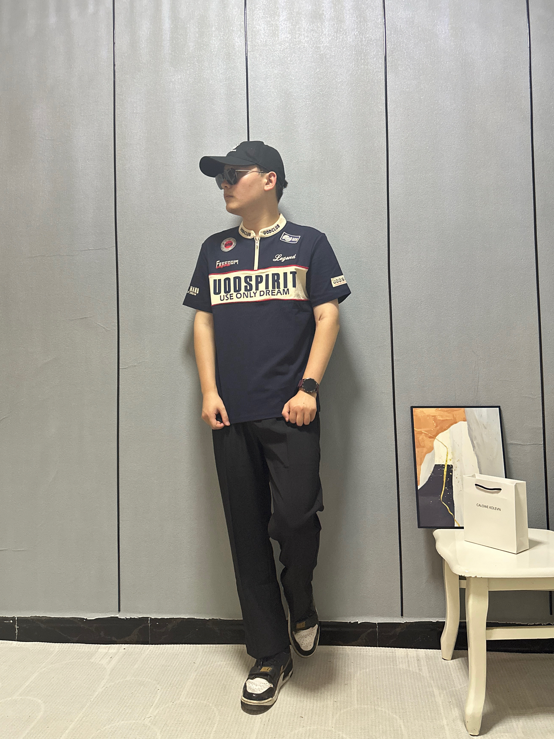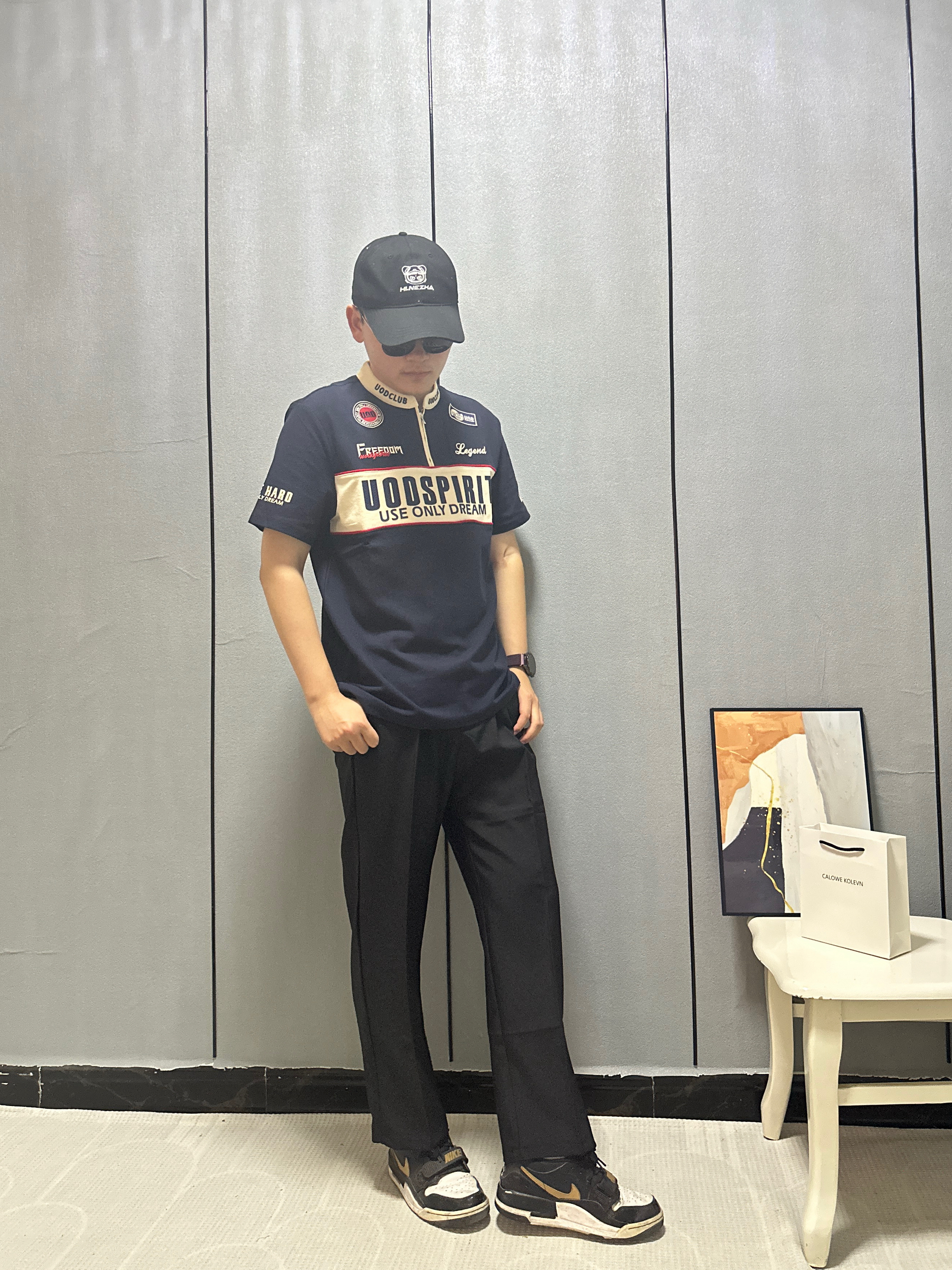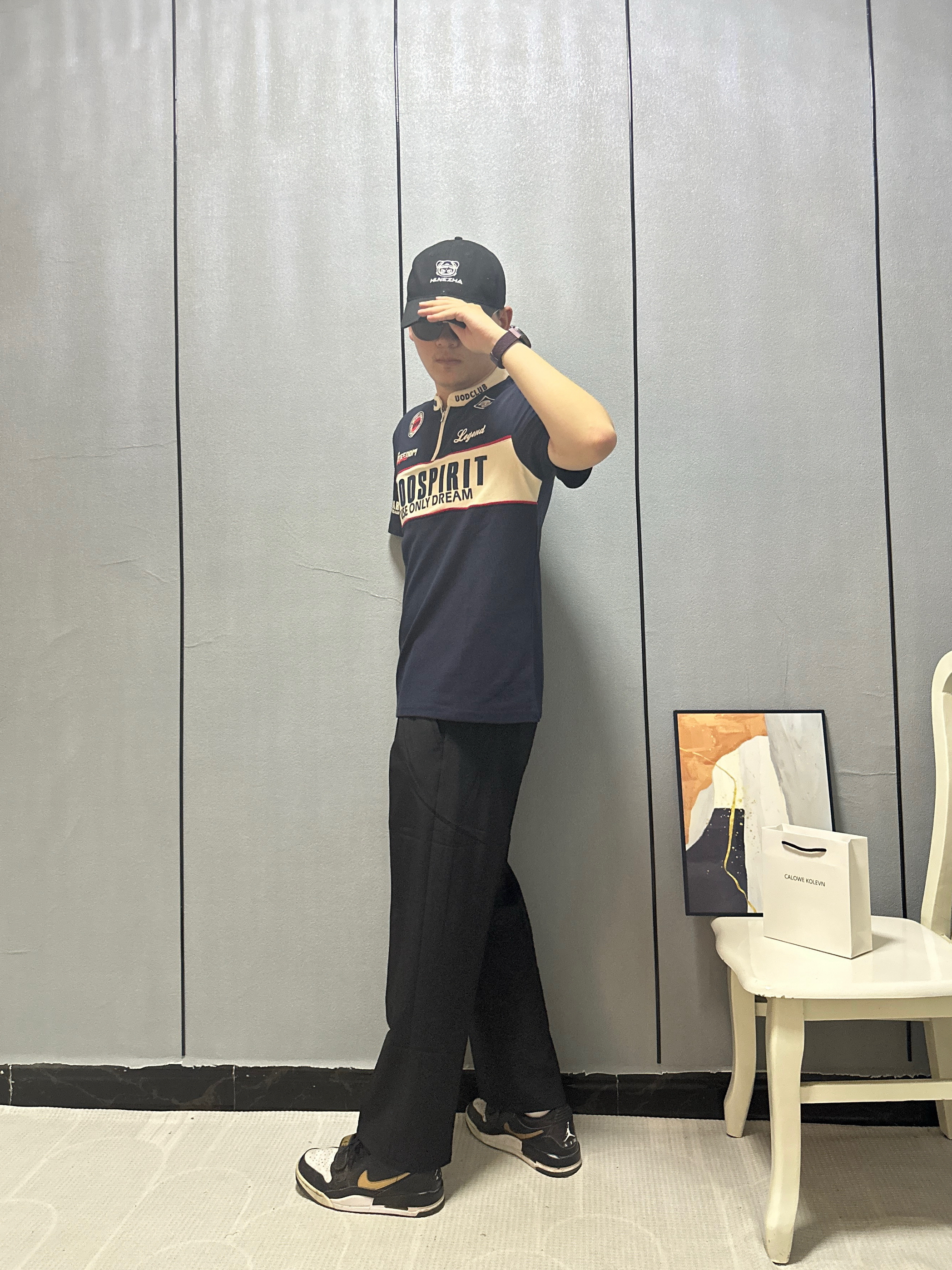 今天抓了件深蓝印花Polo套上身 字母P的印花带点小复古 不张扬但挺耐看 深蓝真是懒人福音 衬得气色挺好还不显脏 下装搭了条带垂坠感的西裤 直筒剪裁+九分长度 堆在脚踝那点褶皱好随意🩳 港风那点随性精髓算是拿捏了🤏 整体就是一身不费力的舒服 深蓝稳住基调 垂感西裤添点潇洒 偶尔穿穿这种松弛感 好像呼吸都顺畅了点