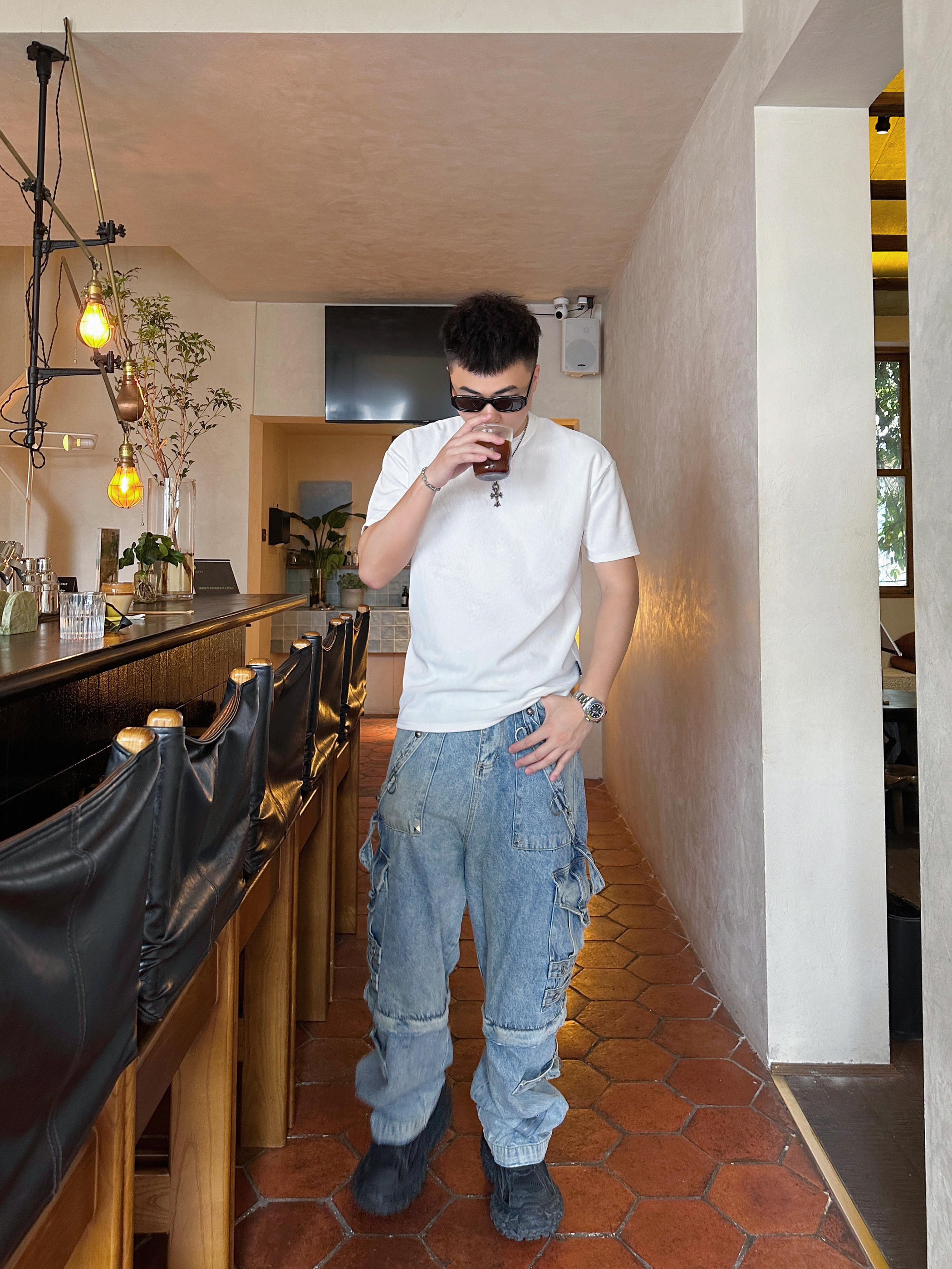 今日ootd穿搭分享 夏天就应该穿纯白T恤 搭配蓝色牛仔裤 👕:MPA pumpclub 👖:balenciaga 流浪裤 👟:balenciaga 纯黑轮胎鞋🛞 ⛓️:克罗心 ⌚️:bape彩色迪 🕶️:bbc飞狗 整体基础 简约 百搭 干净 但又不失高级感和设计感~😎
