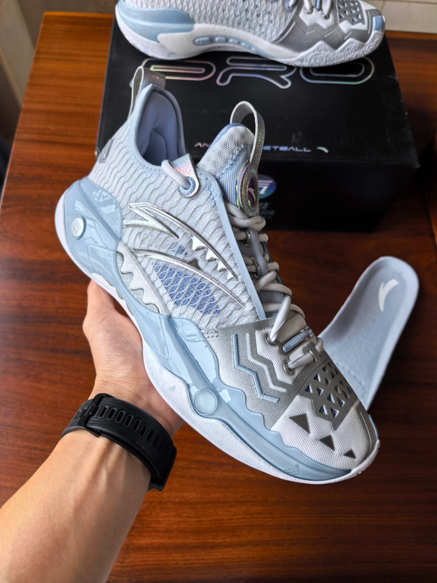 狂潮5PRO,我愿称之为目前最强薄底快靴!『踏冰』配色实物很帅,颜色看着就很清凉,有点神似哪吒2东海龙王敖光的感觉。 #安踏 #新鞋零时差 #球场实战口粮鞋 #我的球场本命鞋 #实战利器就穿ta #说预算帮选鞋
