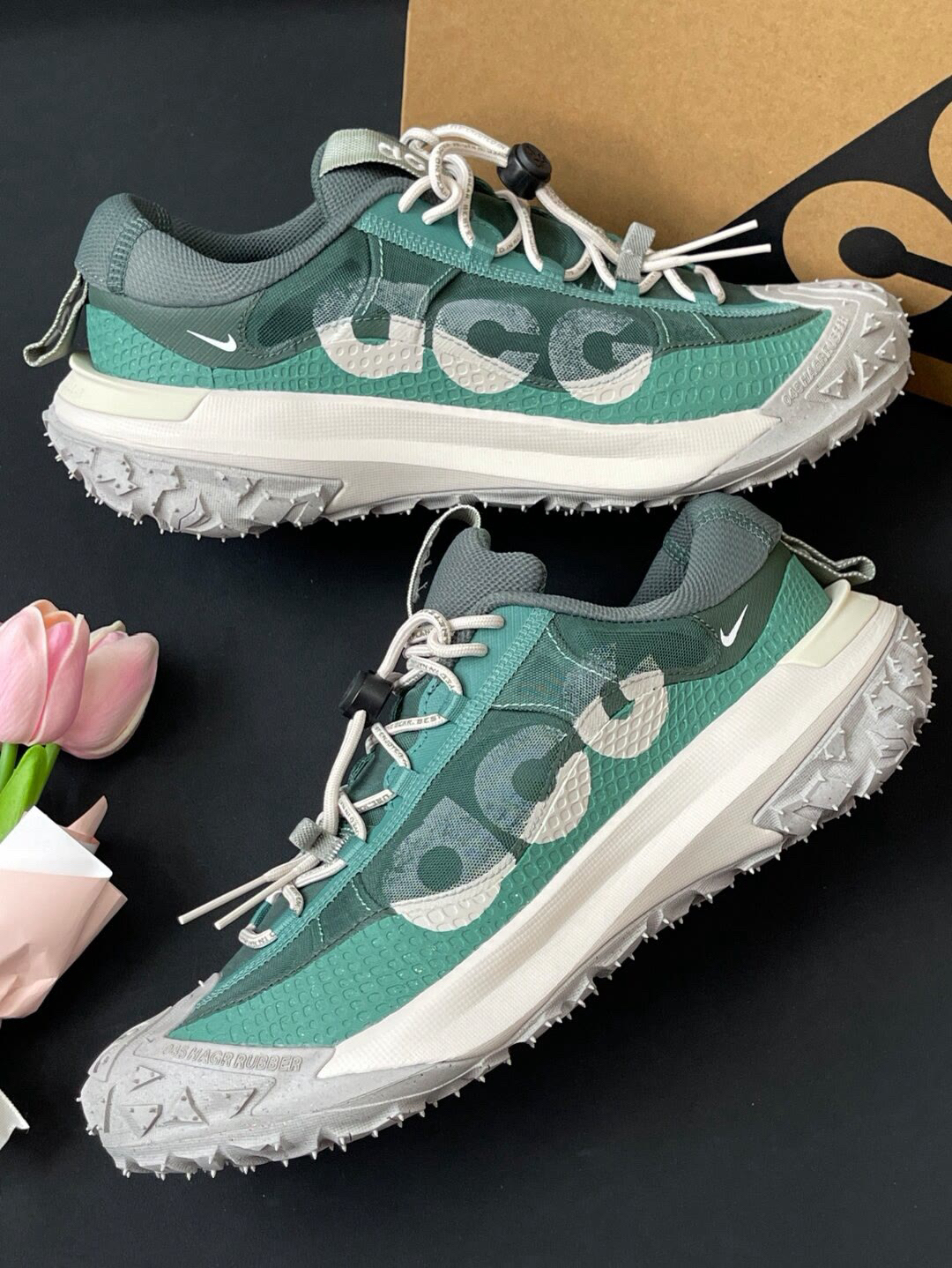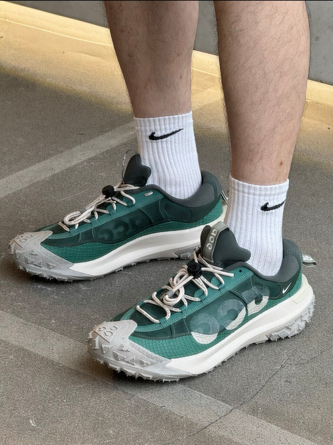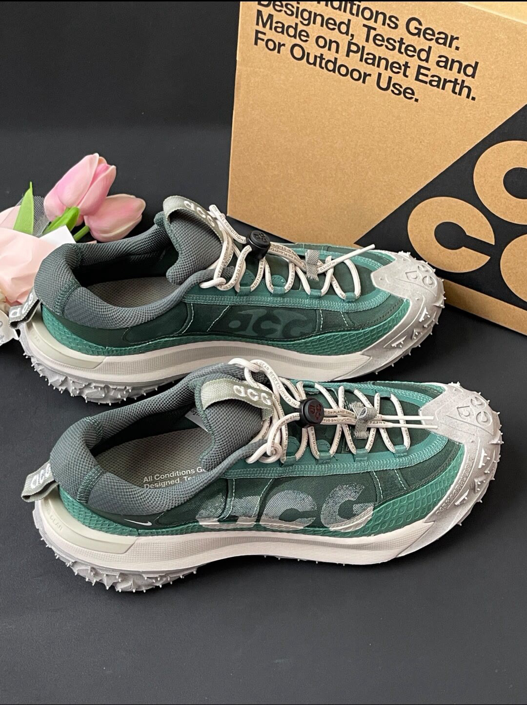 谁懂啊!Nike ACG Mountain Fly 2 Low 这双鞋,户外基因直接拉满✨ 💚配色绝绝子,绿灰拼接自带山野气息,鞋身 “ACG” 标识超醒目,机能感拉满,出街就是行走的潮流信号,户外玩家&潮流咖都没法拒绝~ 👟 鞋底设计太狠了,锯齿大底抓地力爆棚,不管是爬山、徒步,还是日常压马路,稳如老狗!鞋面材质透气又耐造,户外折腾完全没在怕的🌿 上脚配双白袜,瞬间拿捏松弛感,citywa...