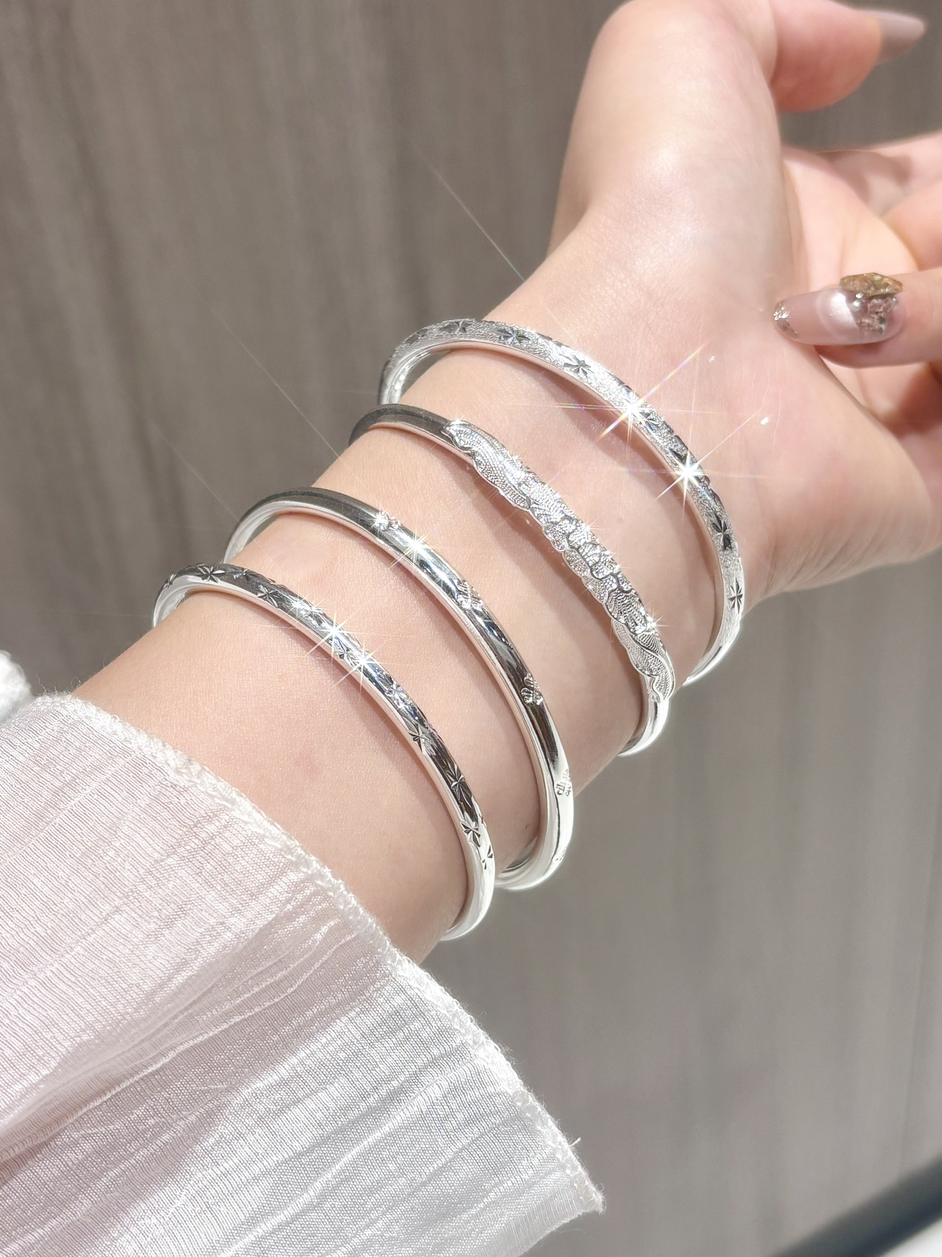 本篇笔记关联了吴越老银铺 满天星推拉足银手镯 1294431纯银 银色、珍尚银 古风繁花纪念日素圈推拉可调节实心花丝缠绕十二花神浮雕足银手镯 MSZ004 牡丹等商品,为用户提供真实的使用体验和购买参考。