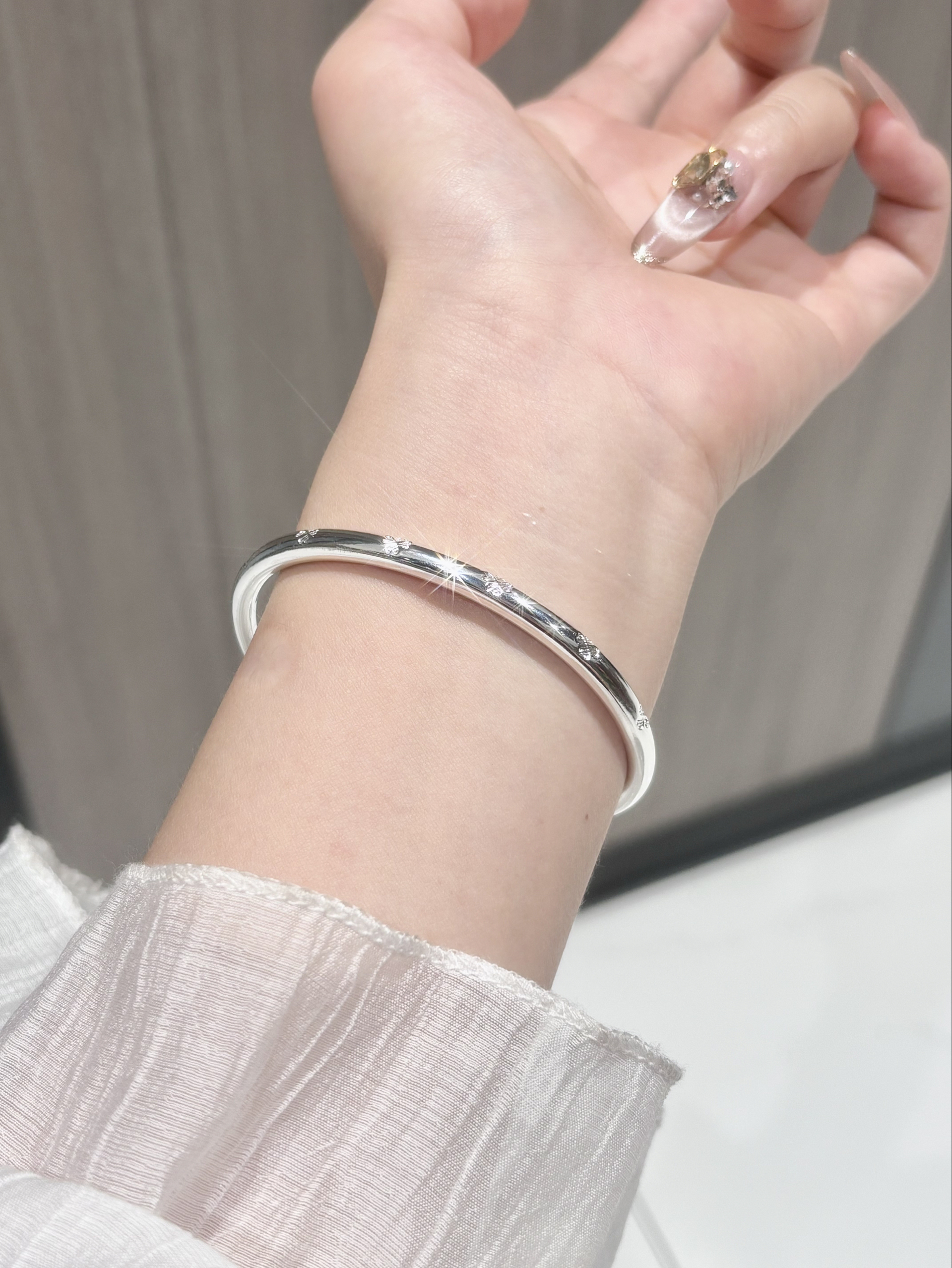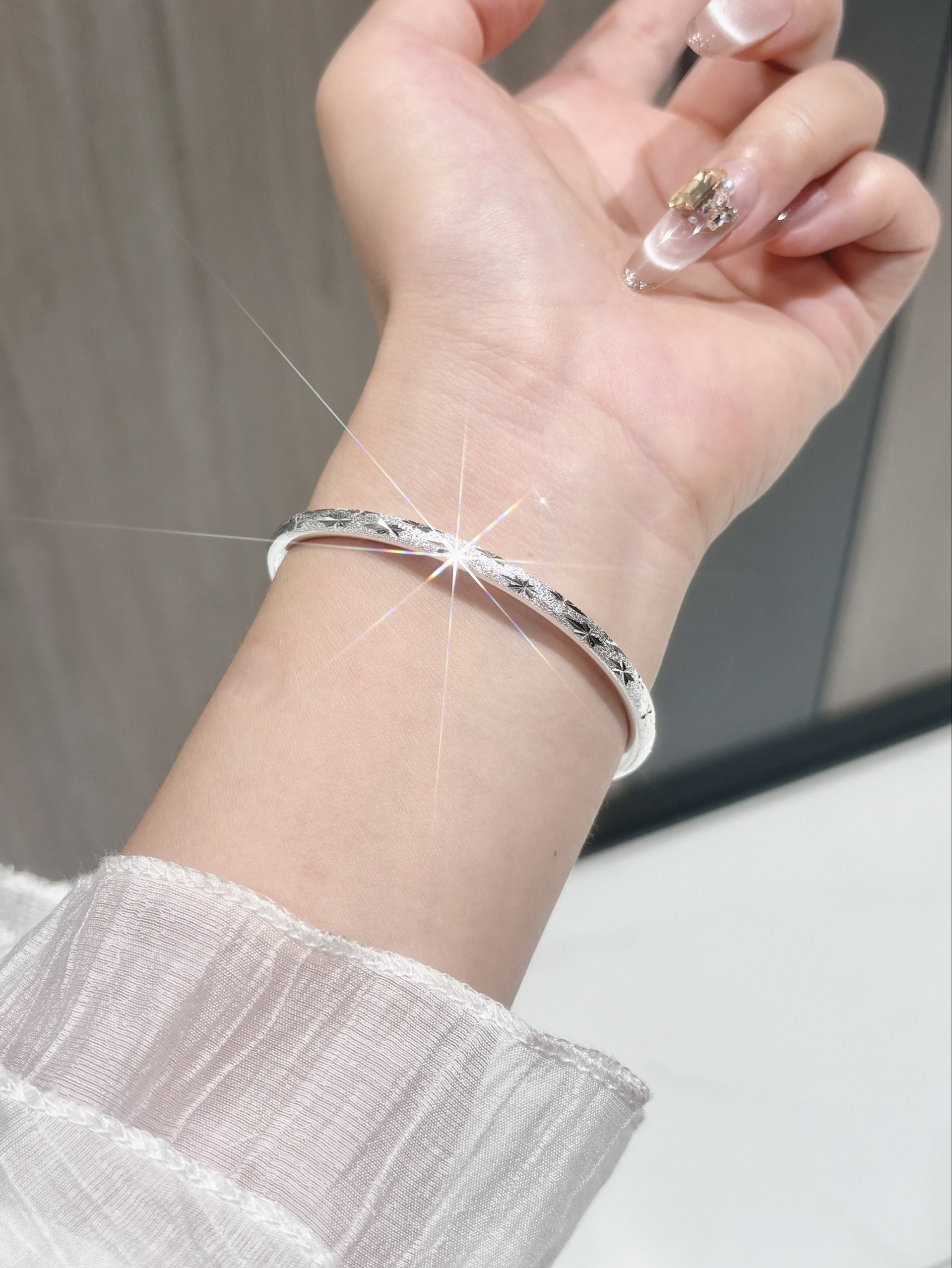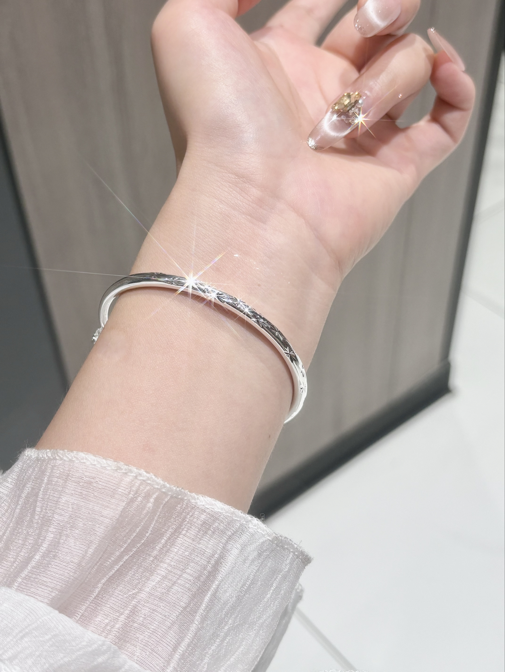 我着实没想到银手镯也介么闪啊 戴在手腕上亮晶晶的还挺有质感 平时我穿小裙子也显得温柔气质哦 还有四叶草 满天星 新中式的元素 这个夏天的穿搭就看它们啦~