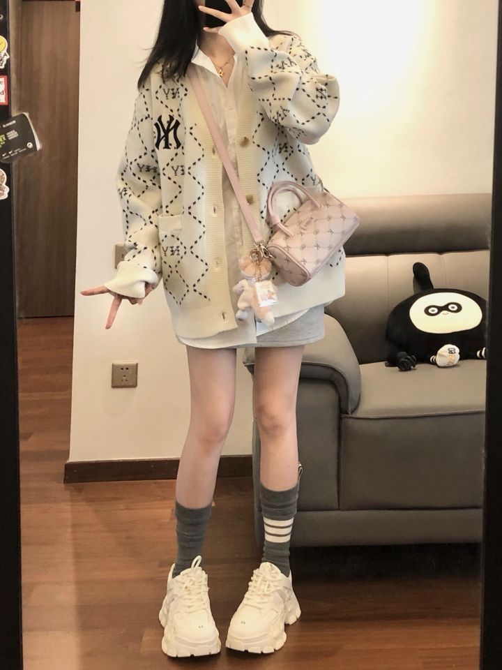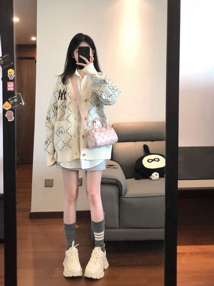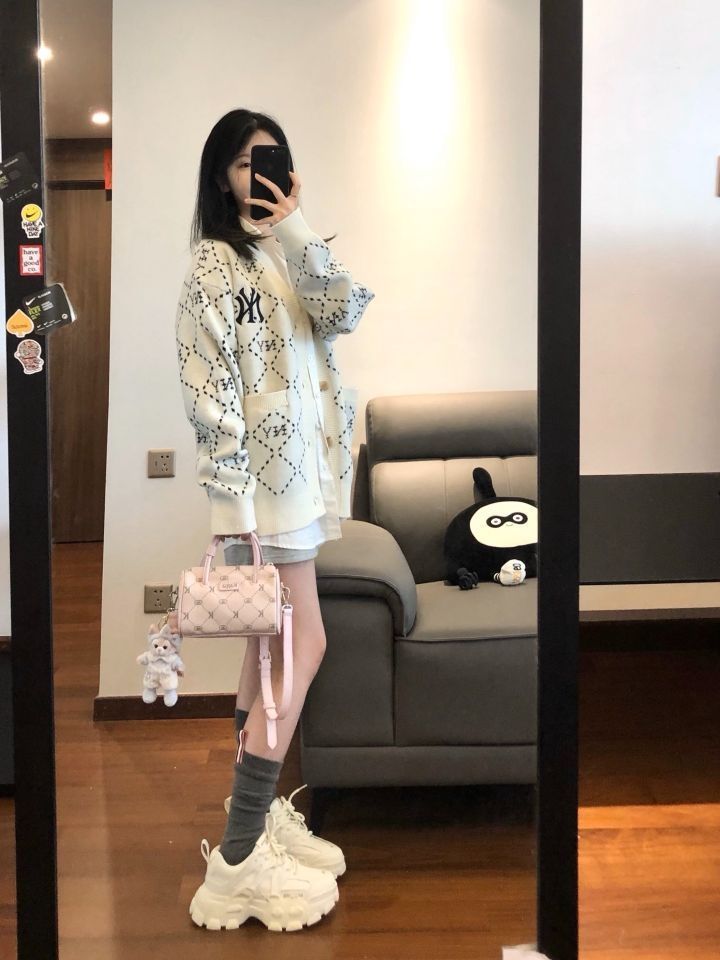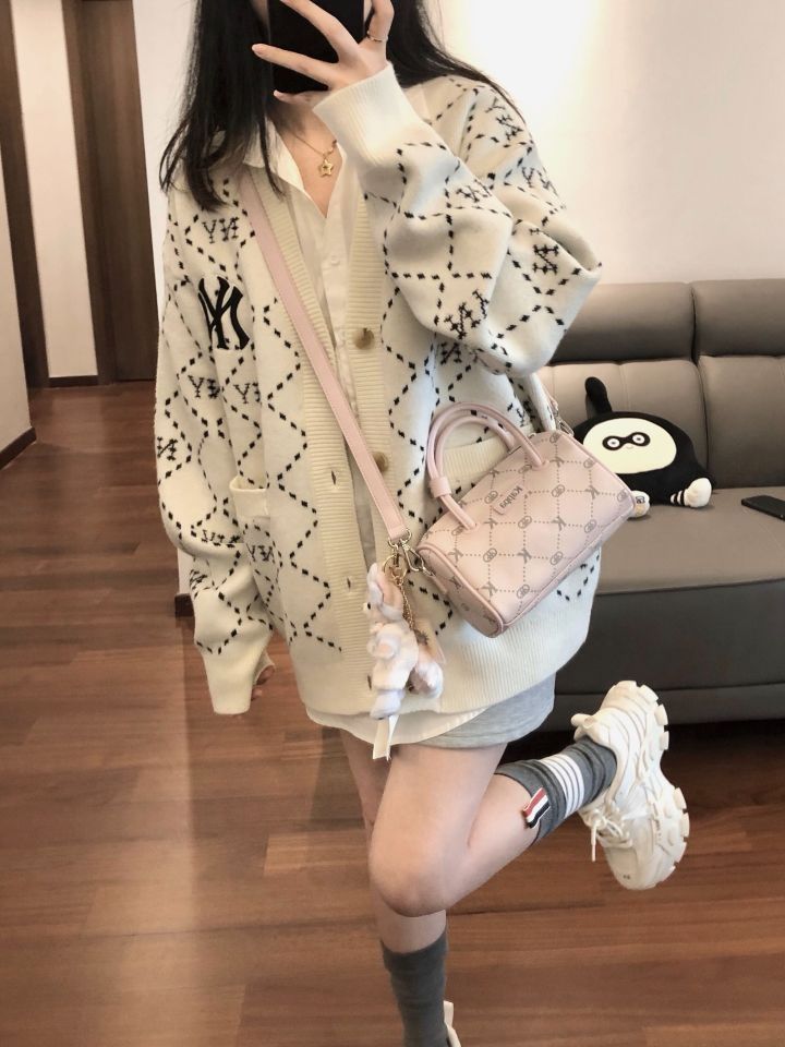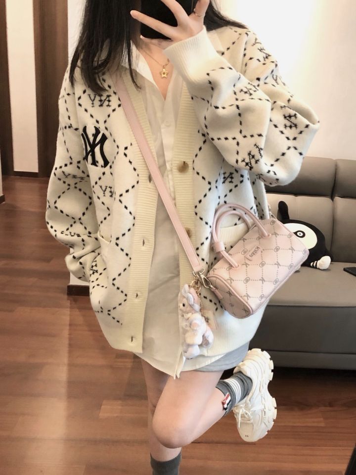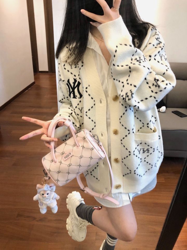mlb老花满印针织开衫+kappa波士顿包包 又嗲又高级的学院风ootd🩶