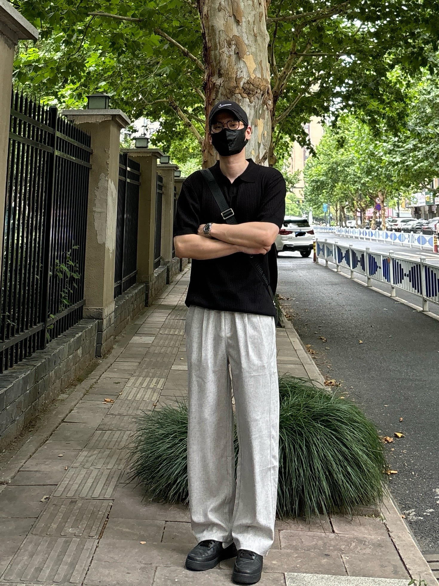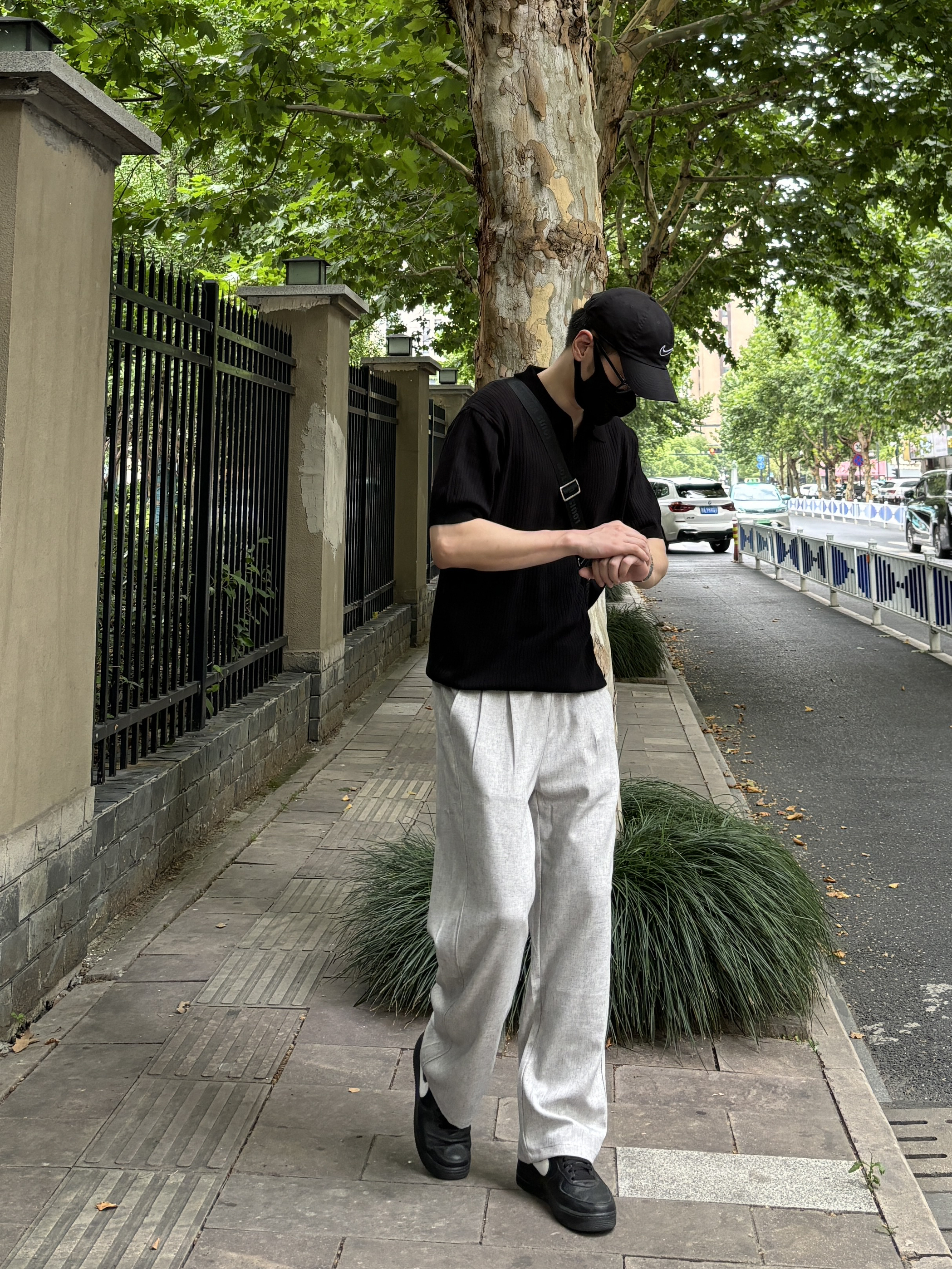 今天这套上衣穿了一件高级感十足的黑色宽松阔版海鸥领针织短袖 ⬇️ 裤子选择松弛简约的灰色直筒垂感亚麻休闲裤 ⬇️ 鞋子上脚经典百搭的黑色系af1 ⬇️ 最后背一个精致的皮质斜挎包 - 今日搭配 衣服裤子:NICE LILI 鞋子:AF1
