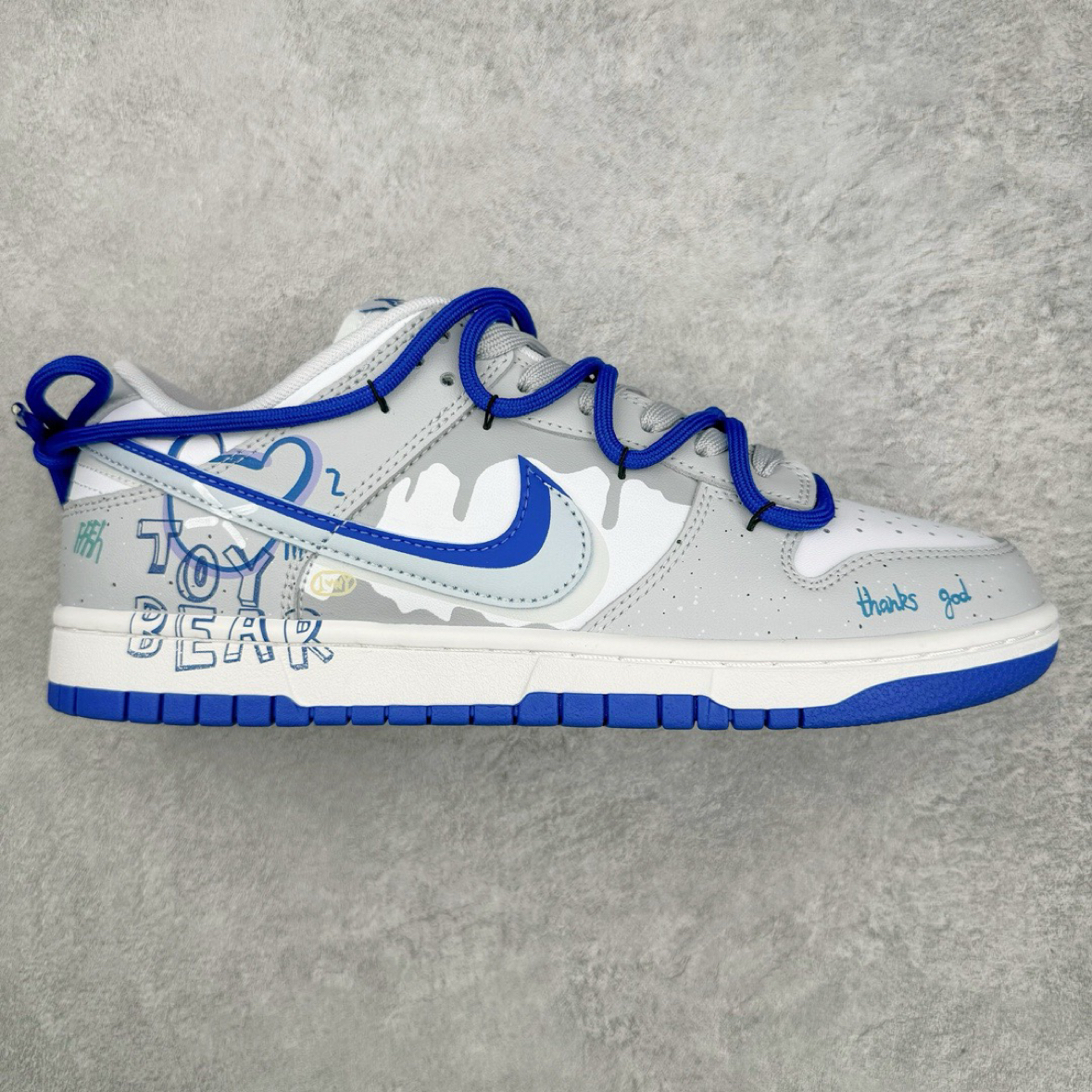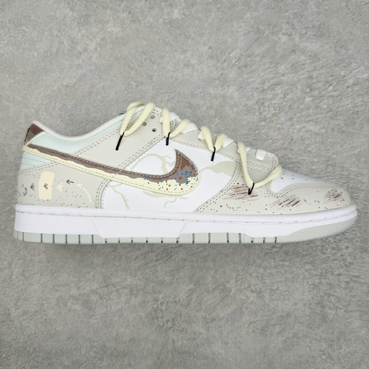 这是耐克Dunk系列的创意定制款🎨 鞋身被手绘涂鸦、做旧泼墨、撞色拼接“承包”,每一双都像“行走的街头艺术”,浅蓝、灰白等清爽配色,和夏日氛围无缝衔接,穿去逛潮店、打卡艺术展,瞬间化身潮流“显眼包”,回头率直接拉满😎 低帮设计搭配帆布或皮革鞋面,透气又轻便,夏日光脚穿(记得提前清洁鞋内呀)、搭薄袜都自在,双脚不会被闷得烦躁。脚感延续Dunk经典优势,柔软鞋垫给足支撑,走路、滑板时稳稳当当,就算暴走...