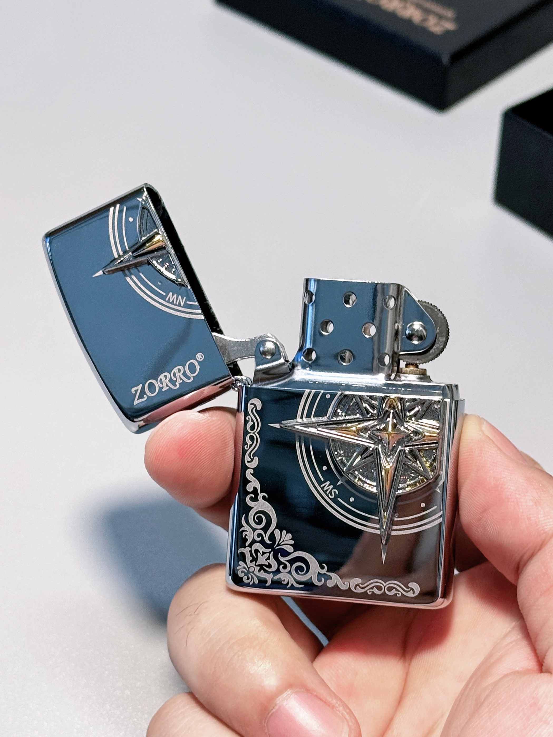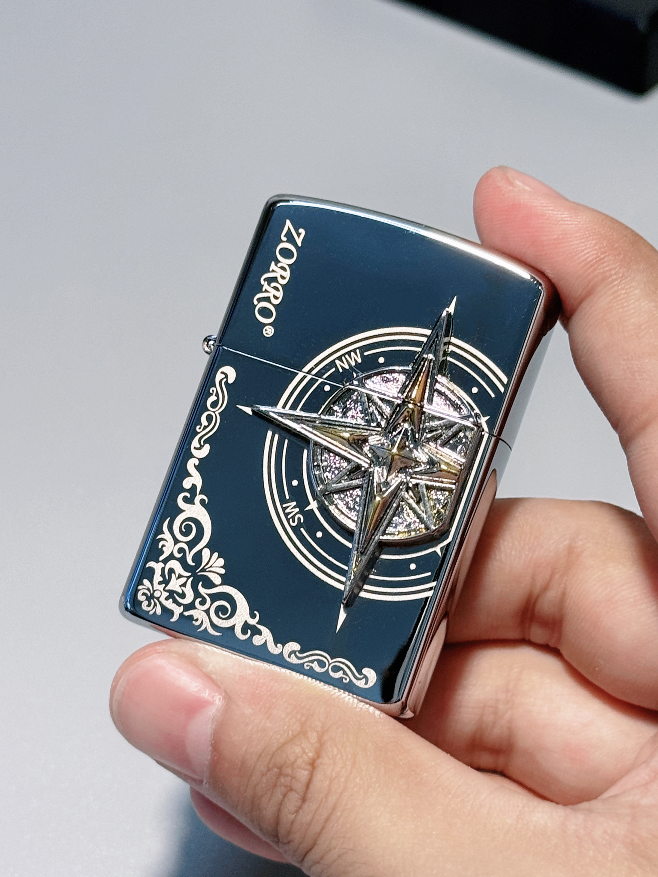 ☁️我只能先可怜一下我的钱包了,因为这么精致的打火机我实在是没法受得住诱惑。就是这款ZORRO家的贴章指南针打火机,它的上面里有立体浮雕指南针设计,通体银色,在阳光下闪闪发光的,特别好看。而且拿在手里沉甸甸的,但又不至于过重,拿在手就蛮有质感的,很简约酷炫。开关很顺滑,声音清脆,用起来很方便。总体来说是不错的。感兴趣的友友可以入手试一试!