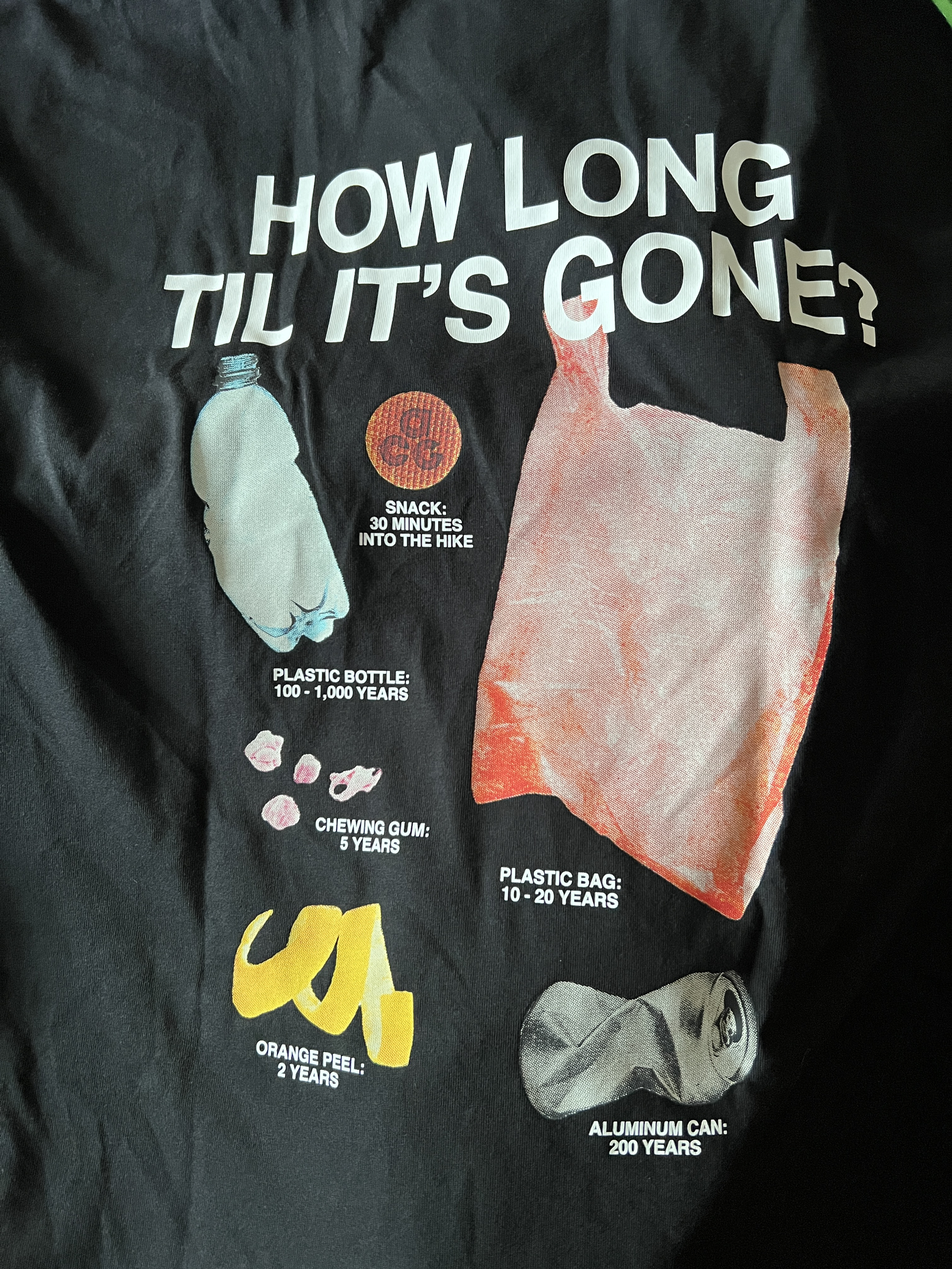 最近入了耐克ACG的T恤,到手就忍不住分享! 看这设计,正面印的图案有意思,讲不同垃圾降解时间,穿身上还能给朋友唠唠环保知识。面料是DRI - FIT的,透气排汗,夏天穿太舒服,出汗也不黏身子。我买的XXL码,宽松自在,壮实兄弟或者爱穿宽松的都合适。